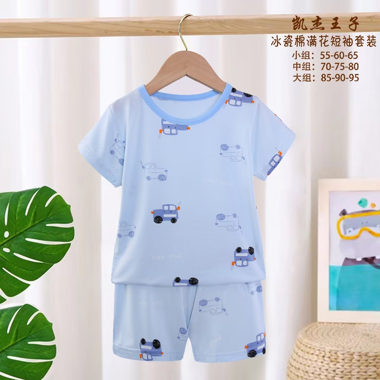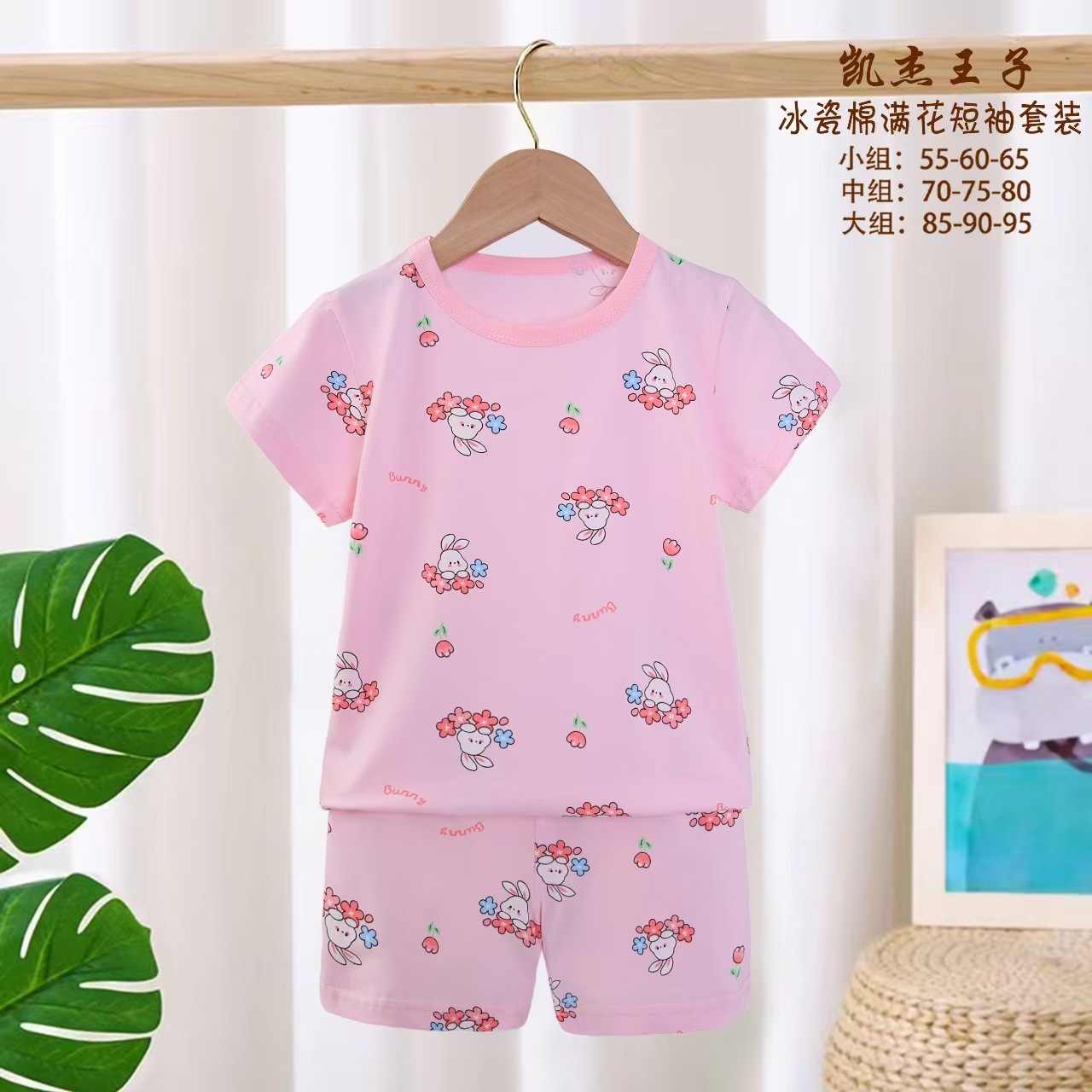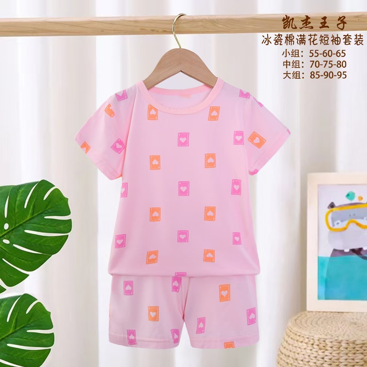 여름 어린이 속옷 세트 얼음 도자기 면화 전체 꽃 어린이 짧은 소매 반바지 만화 아동복 세트 제조 업체