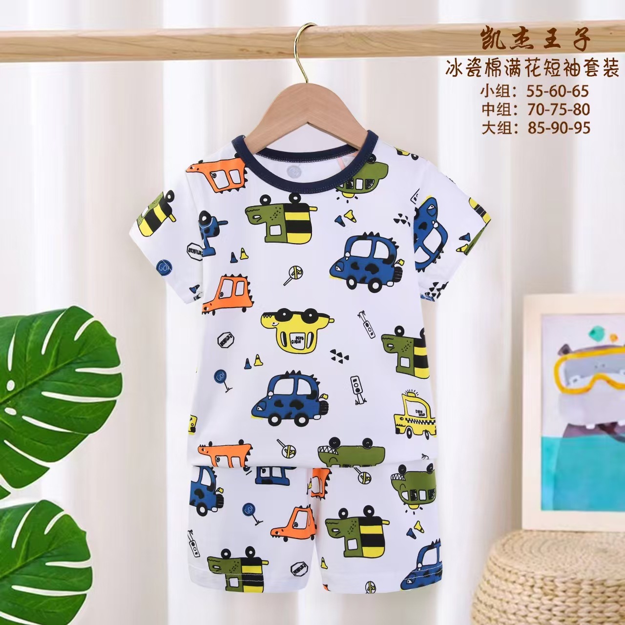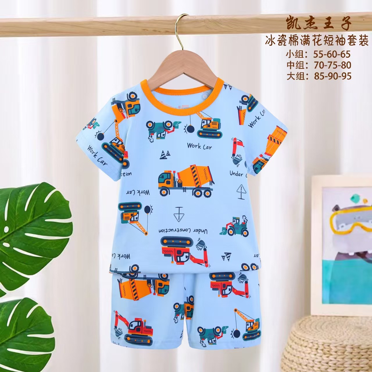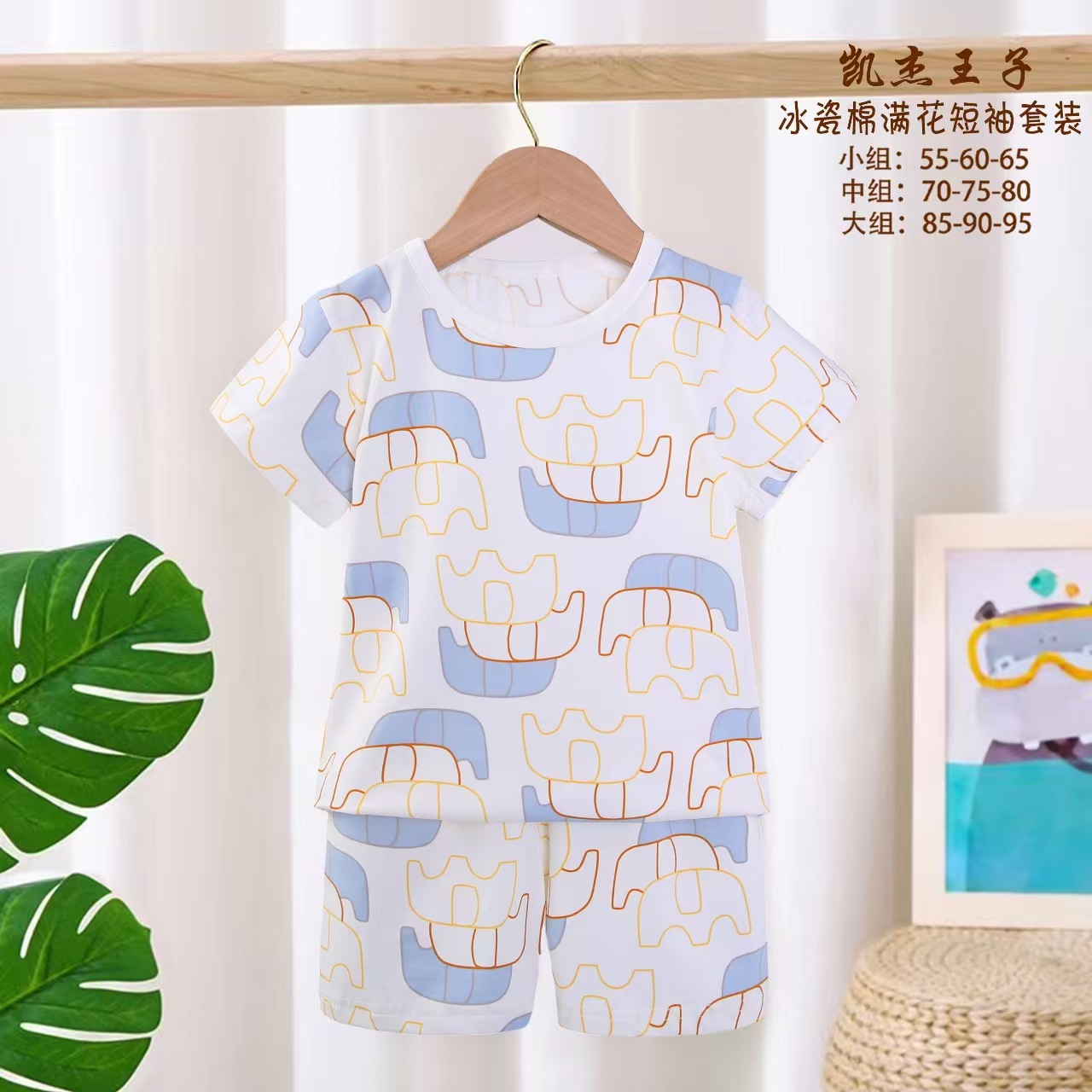 여름 어린이 속옷 세트 얼음 도자기 면화 전체 꽃 어린이 짧은 소매 반바지 만화 아동복 세트 제조 업체스토어 가기