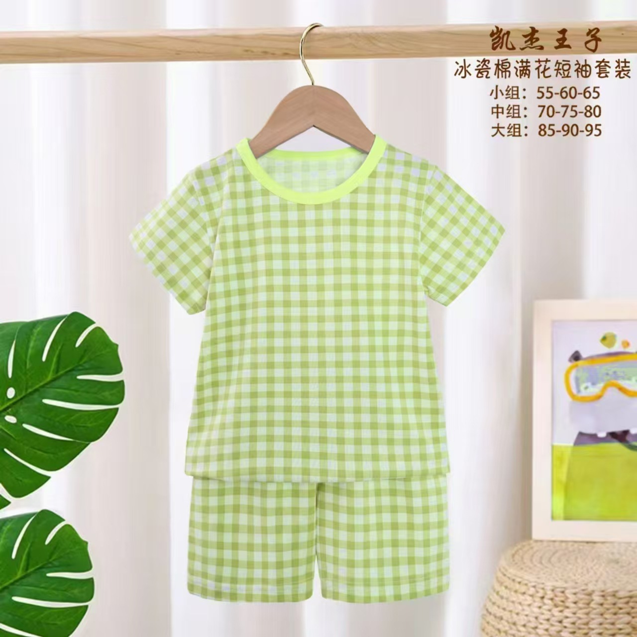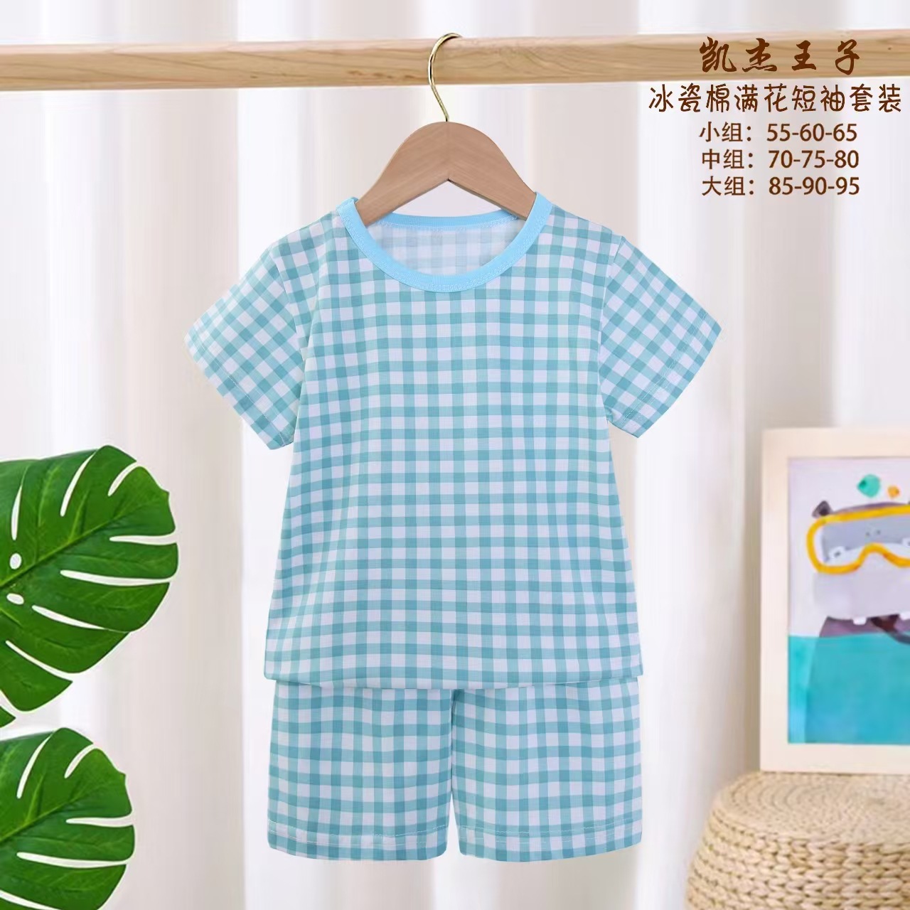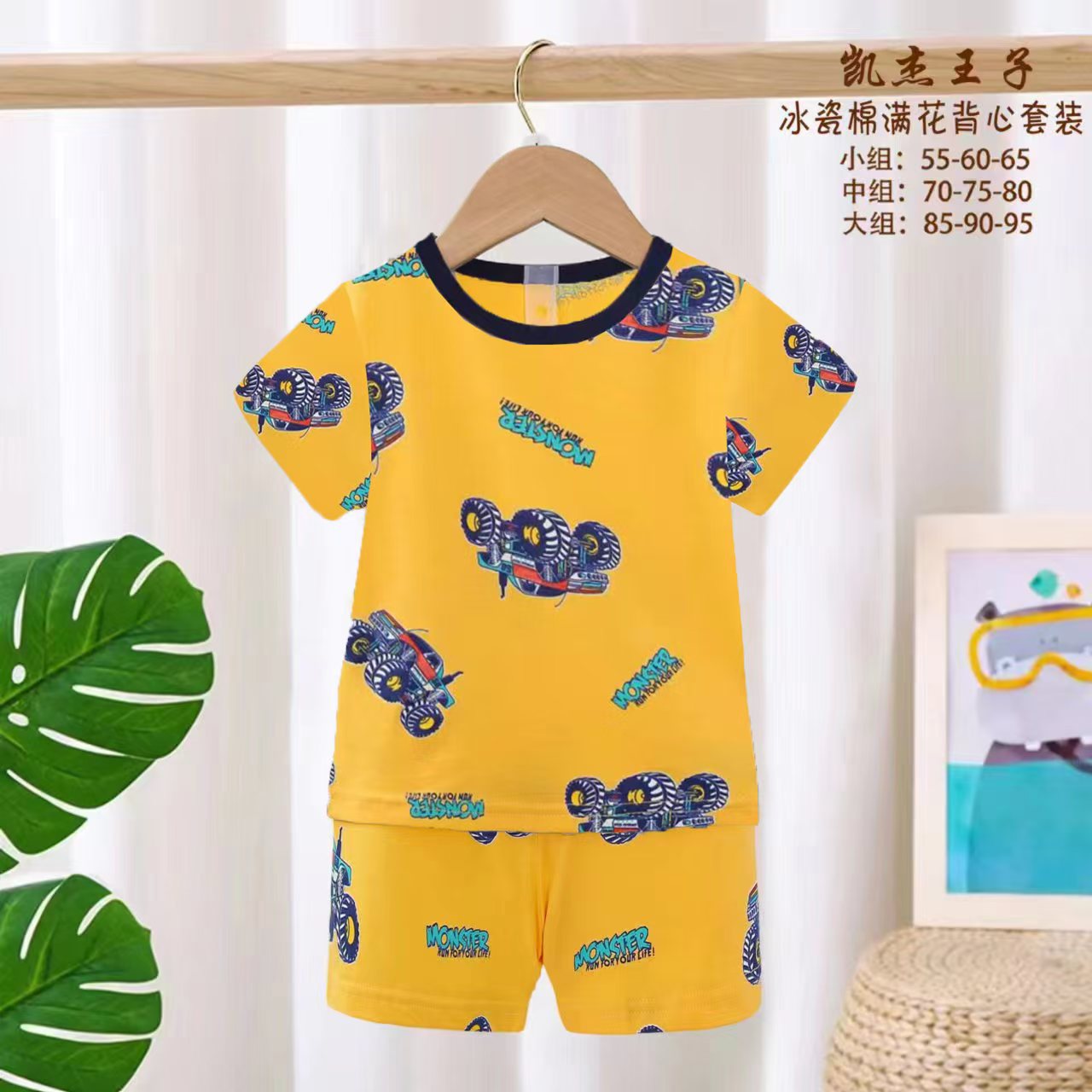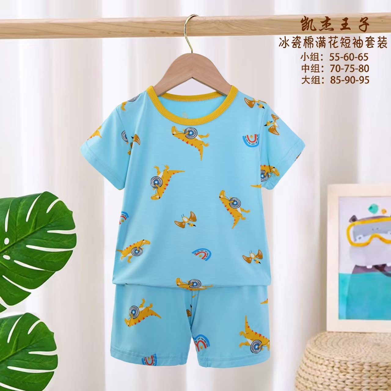 여름 어린이 속옷 세트 얼음 도자기 면화 전체 꽃 어린이 짧은 소매 반바지 만화 아동복 세트 제조 업체스토어 가기