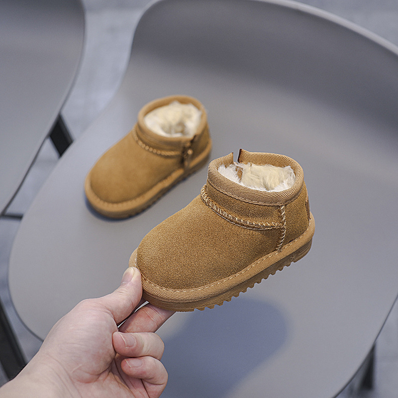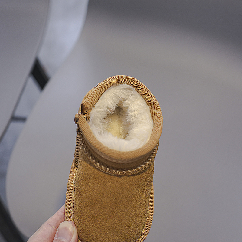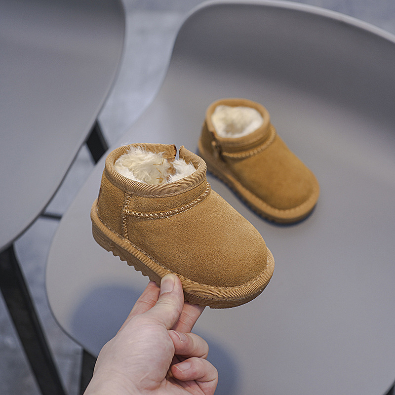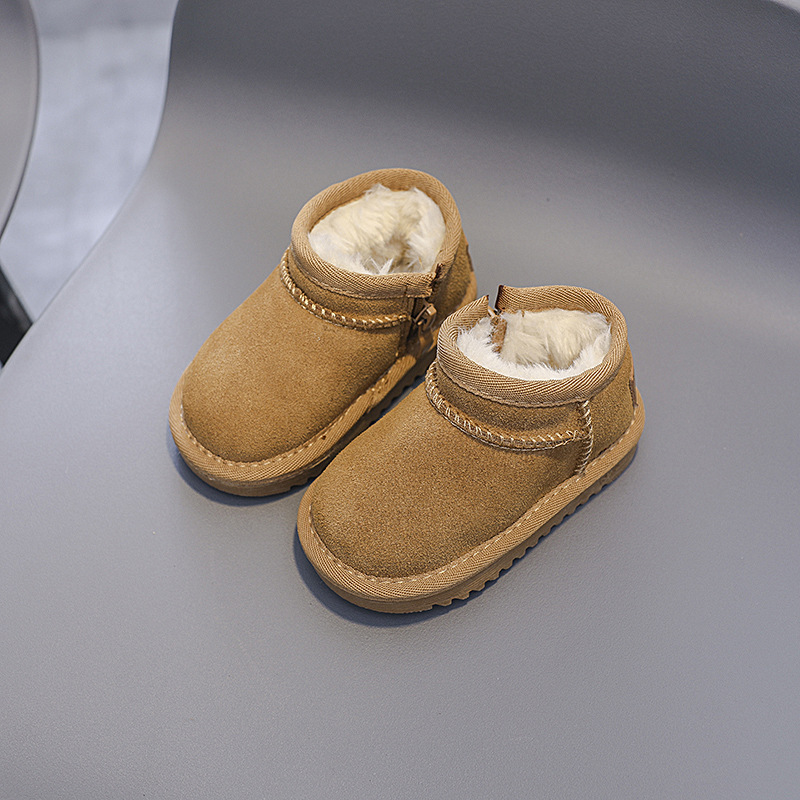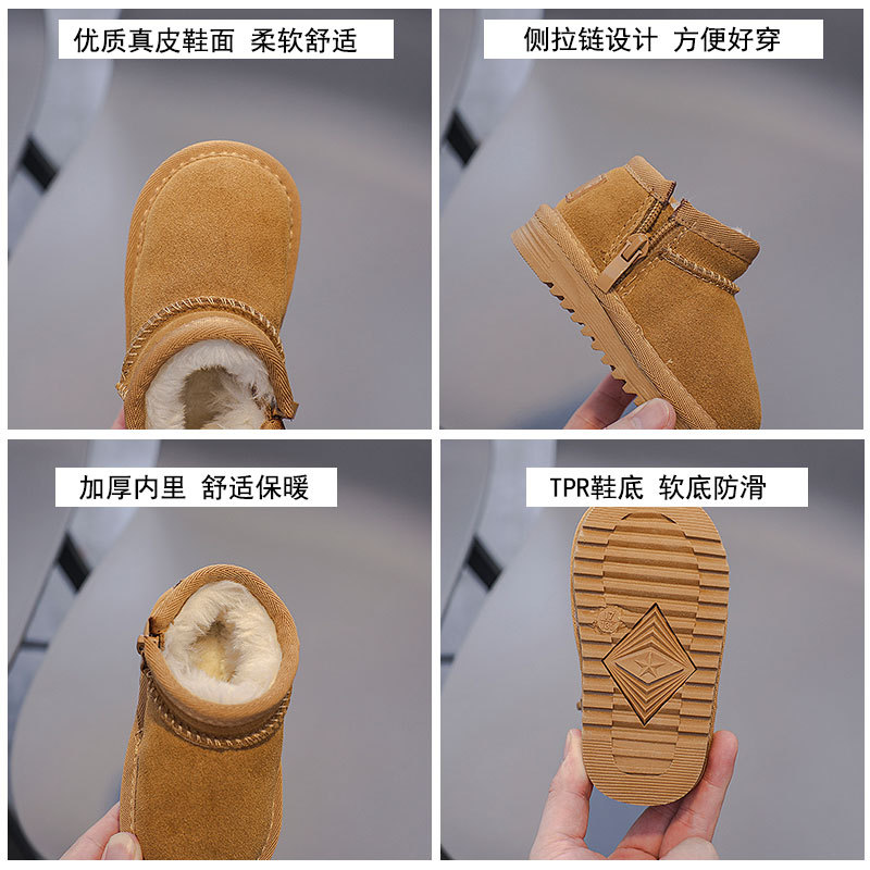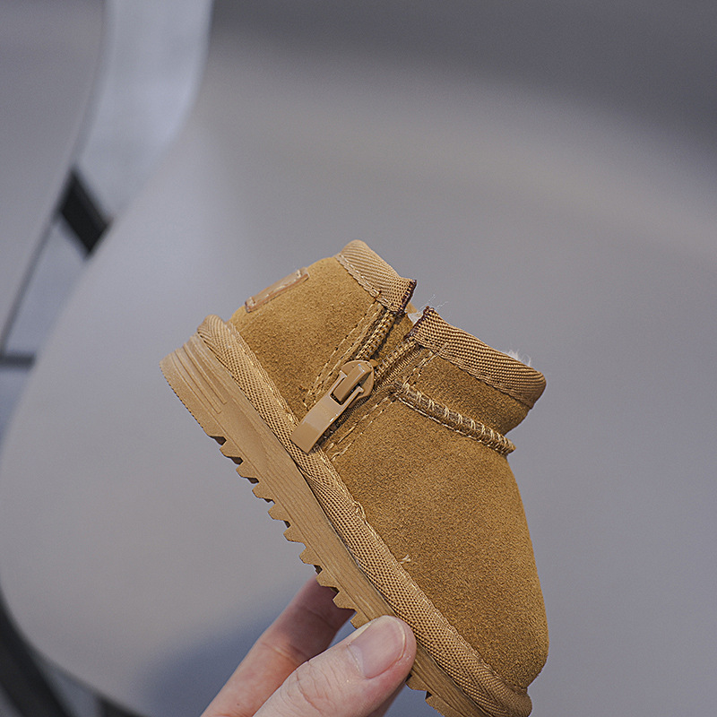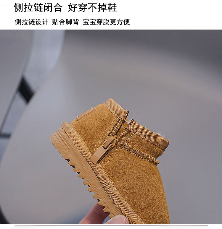 겨울 스노우 부츠 남성과 여성의 아기면 신발 기모 따뜻한 아기 신발 편안한 부드러운 바닥 가죽 사이드 지퍼 코튼 부츠