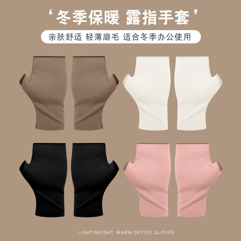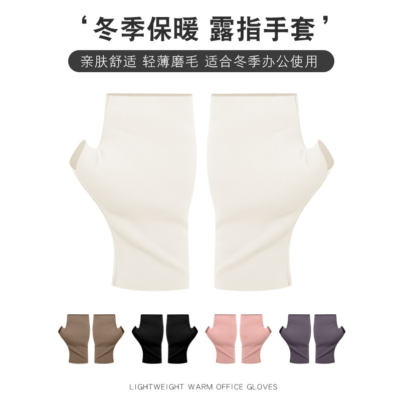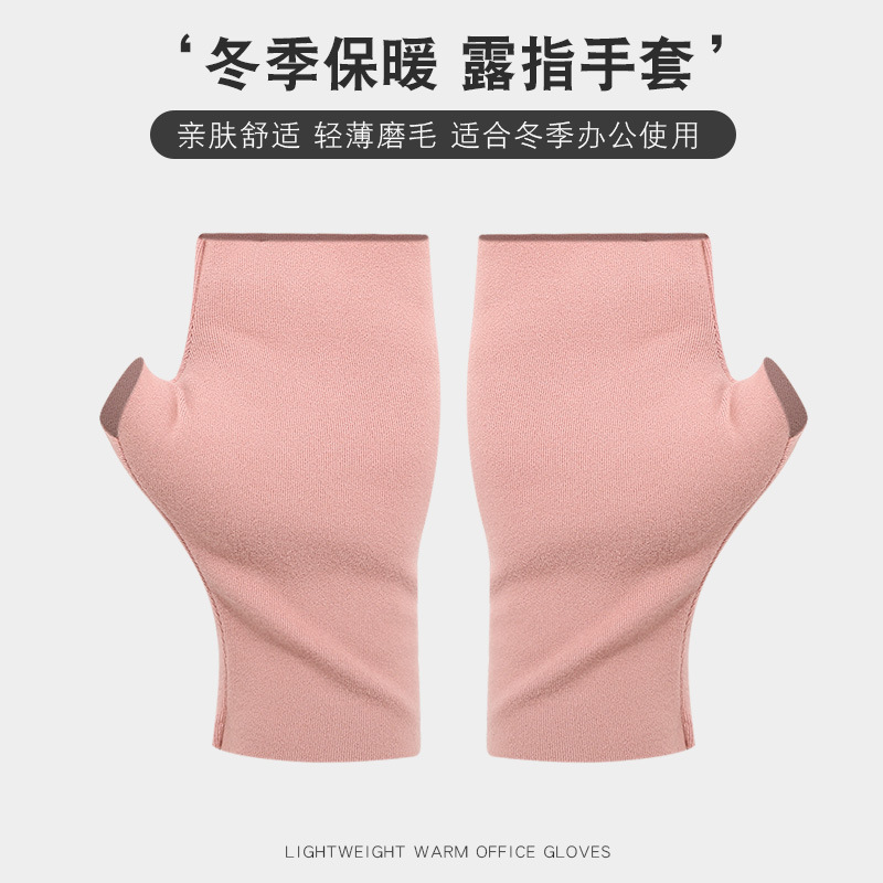 가을과 겨울 따뜻한 장갑 숙녀 드 벨벳 자체 가열 반 손가락 터치 스크린과 겨울 사무실 누설 손가락 커버에 적합한 벨벳 장갑