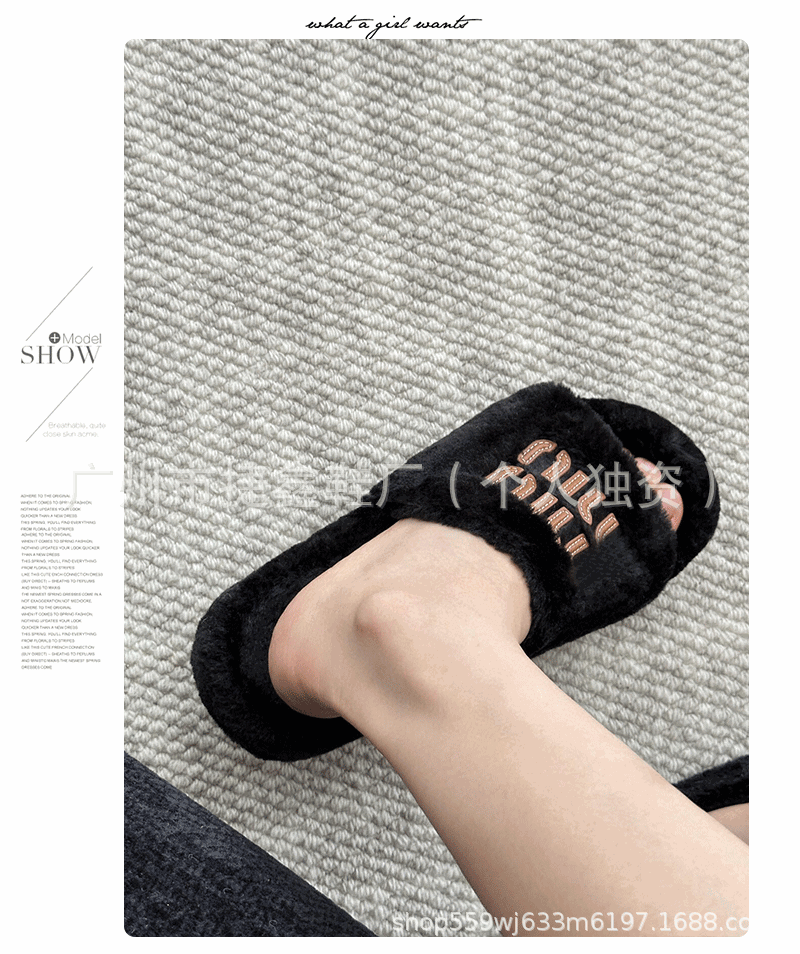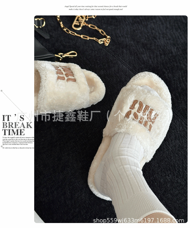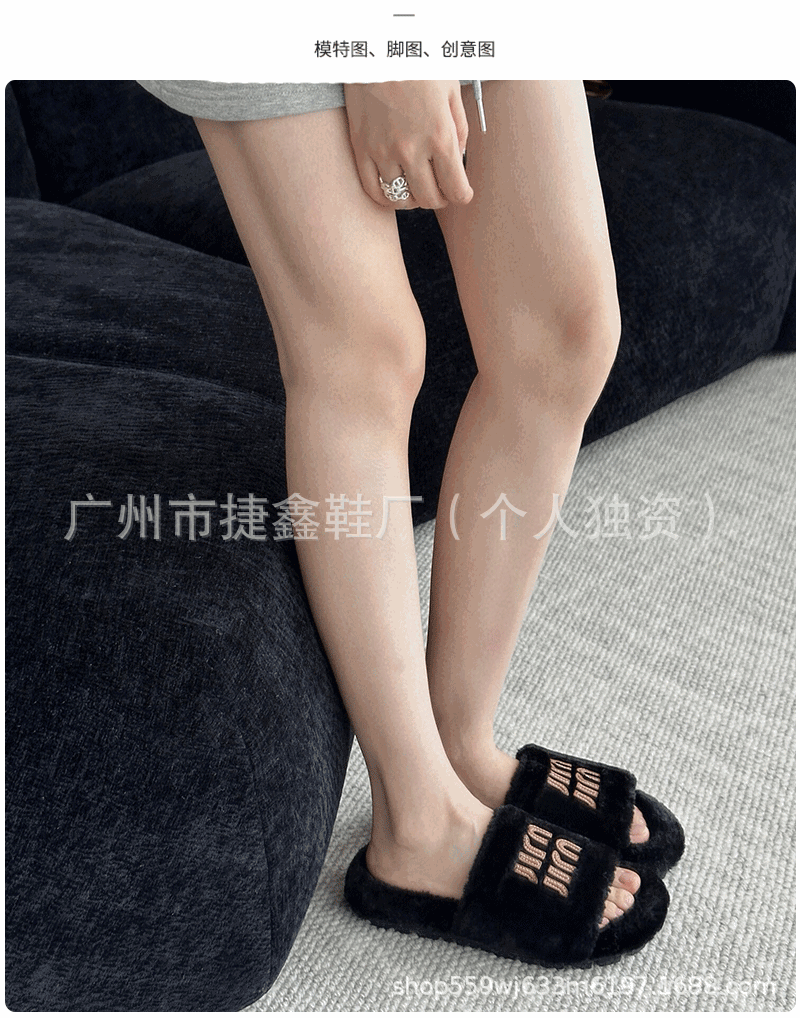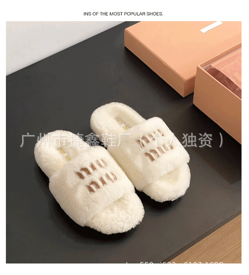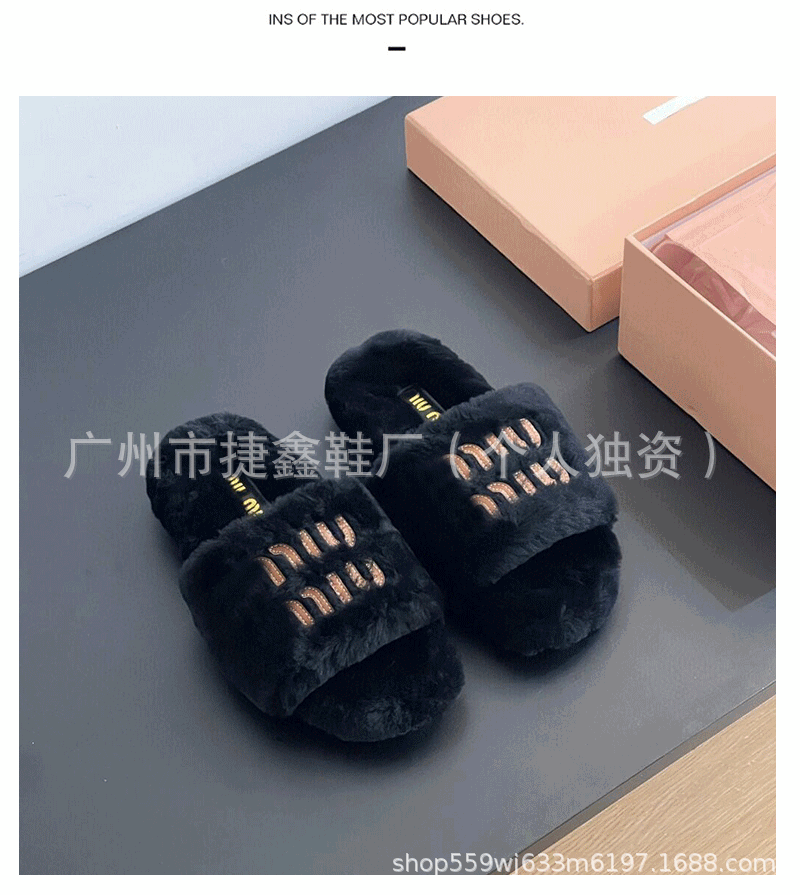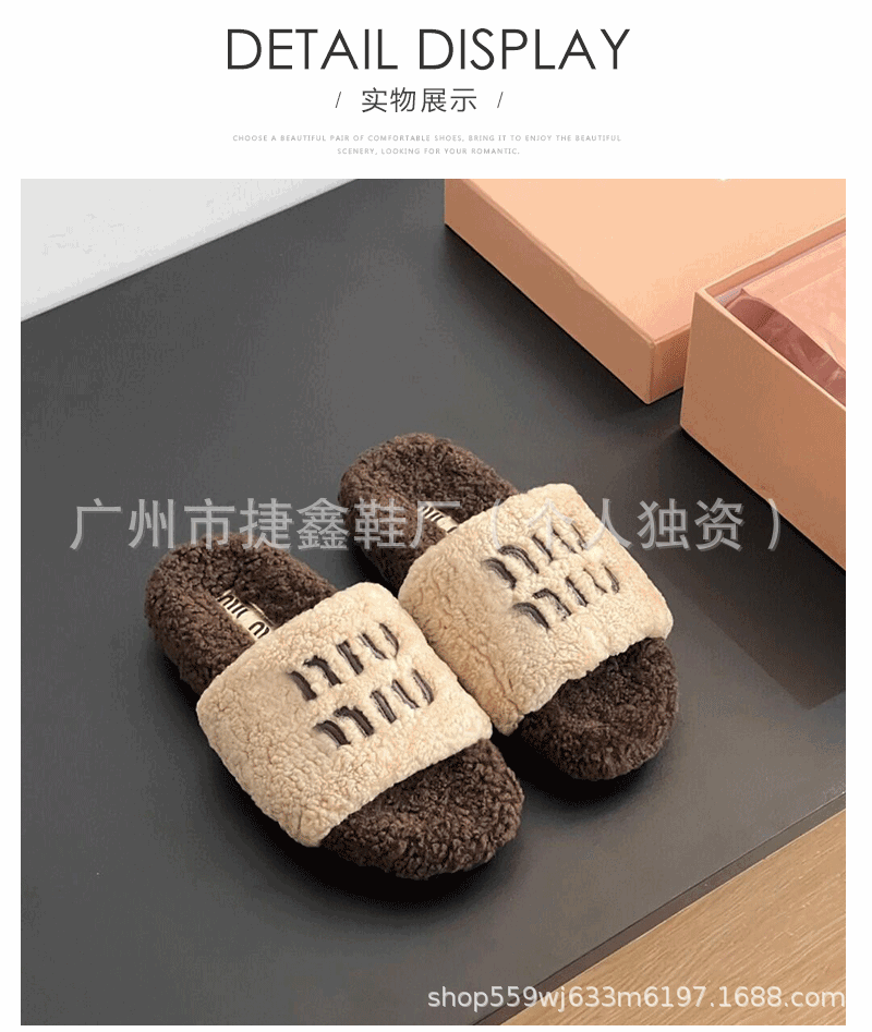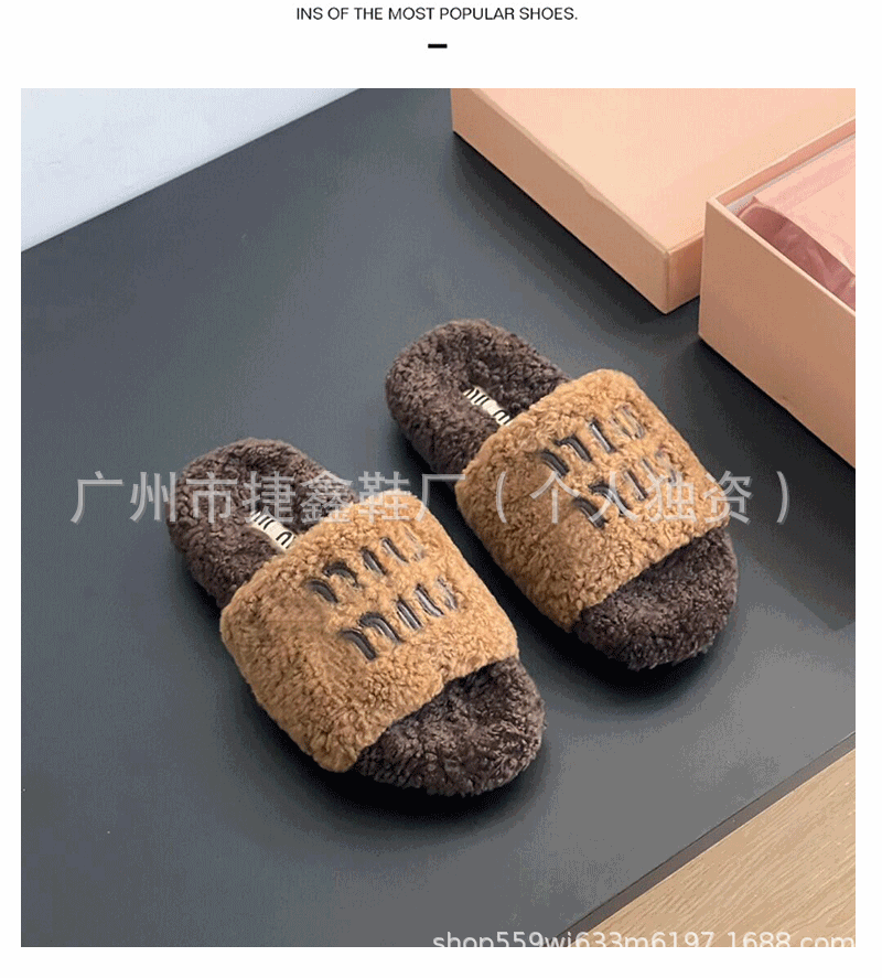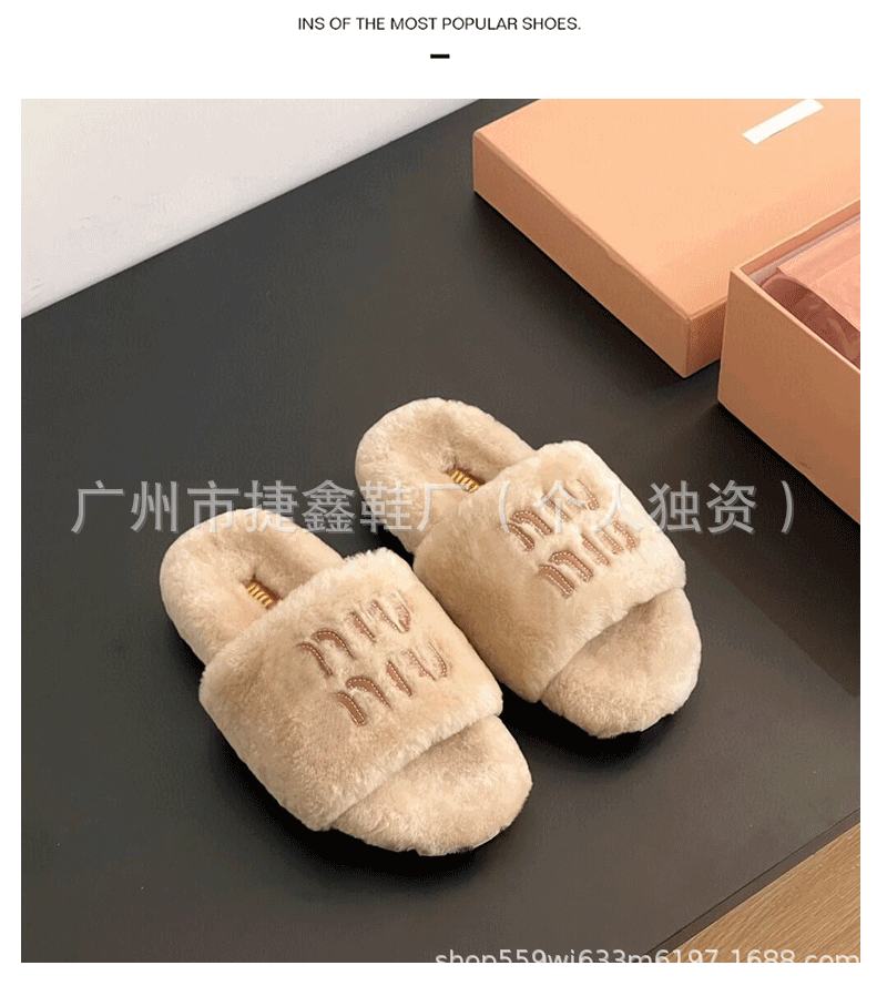 Miu 홈 푹신한 슬리퍼 2024 가을과 겨울 새 착용 미끄럼 방지 슬리퍼 여성용 울 따뜻한 면화 슬리퍼