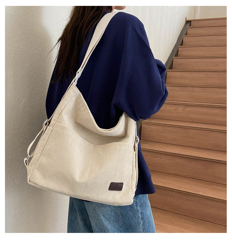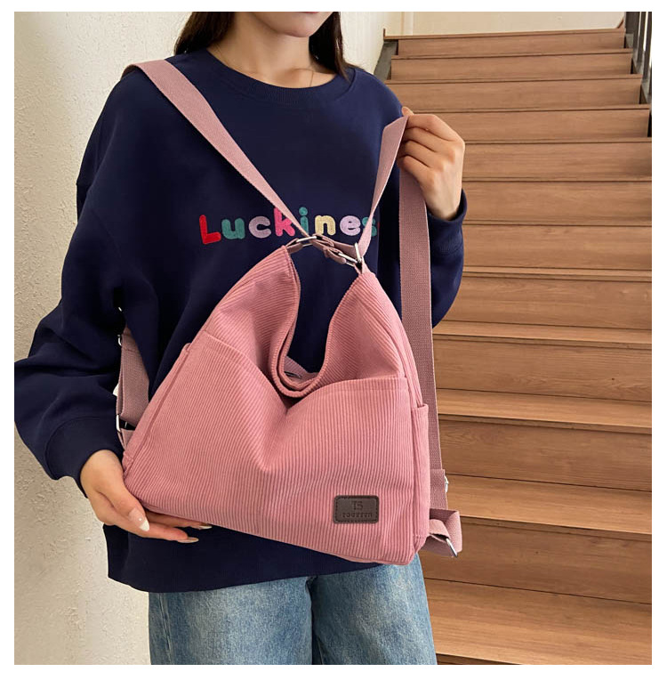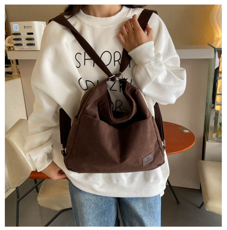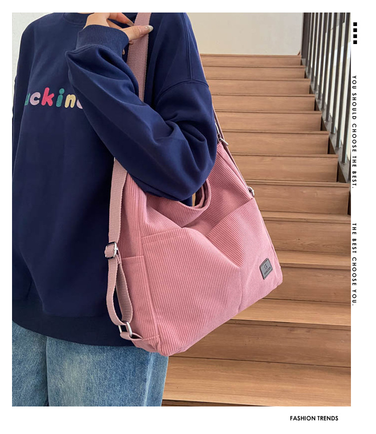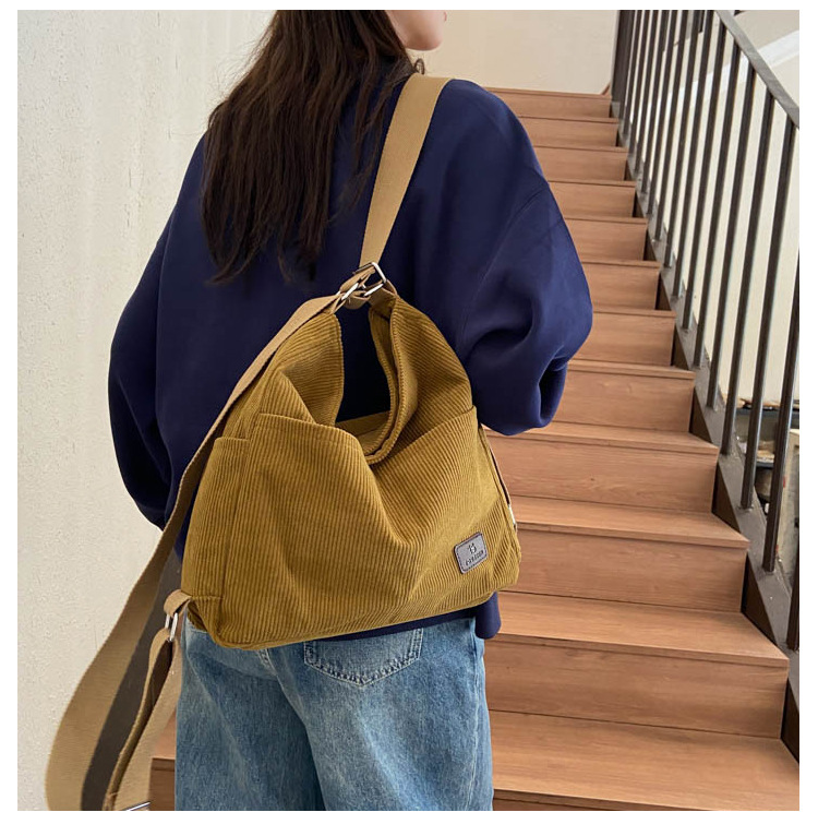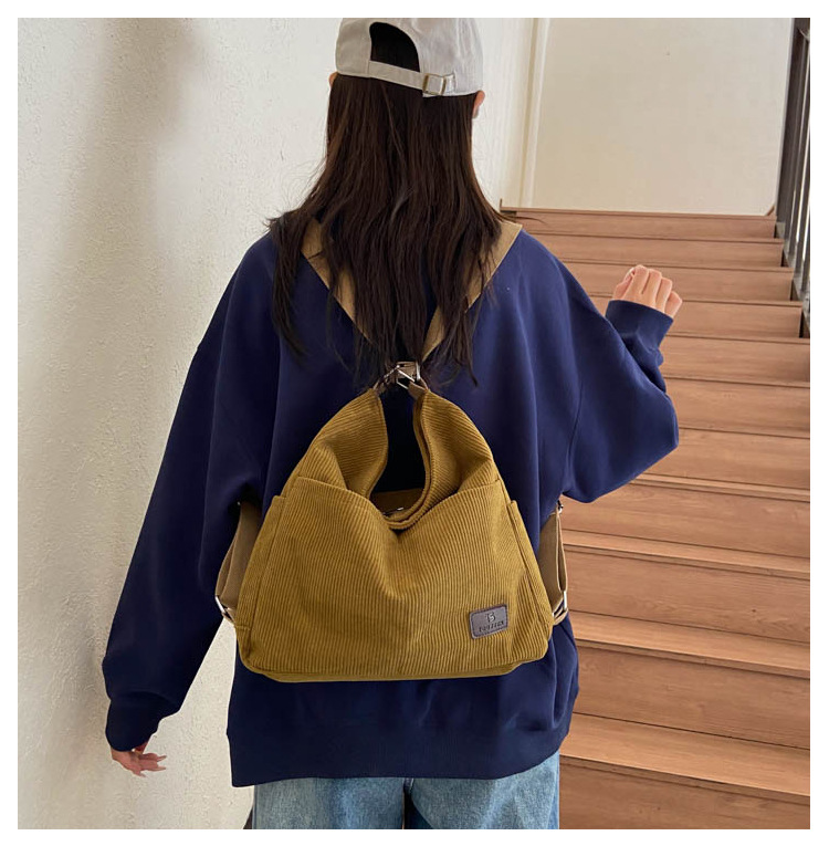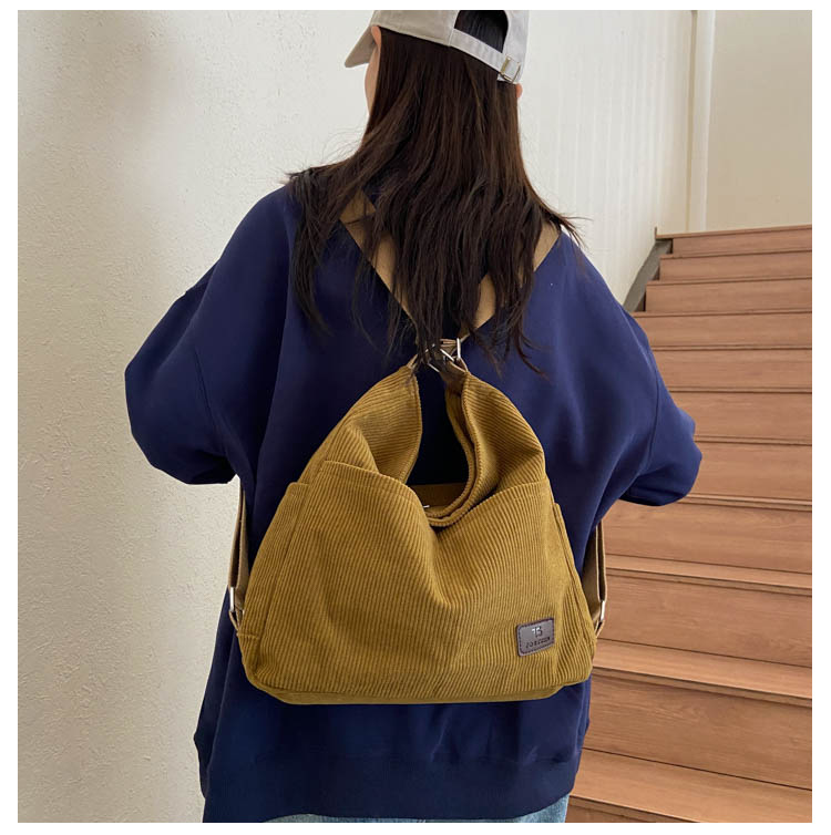 패션 새로운 코듀로이 어깨 가방 대용량 일일 통근 가방 여성 크로스 바디 가방 대학생 배낭