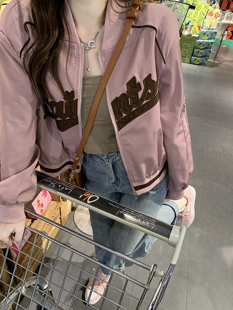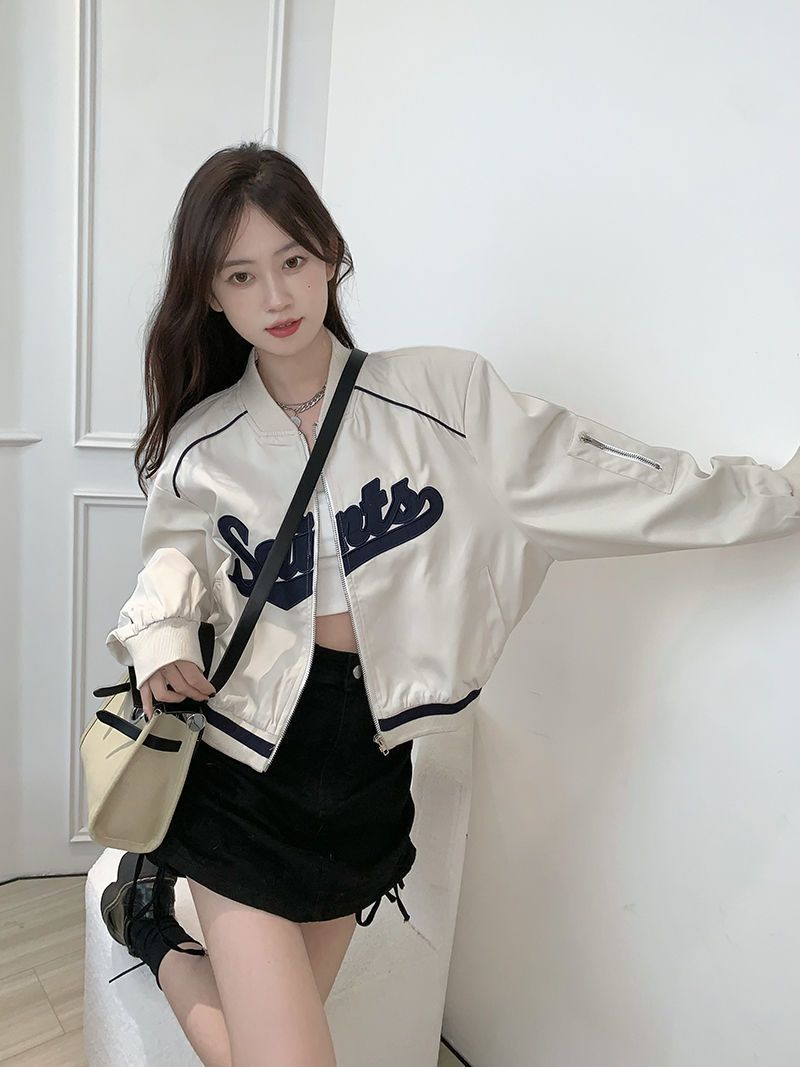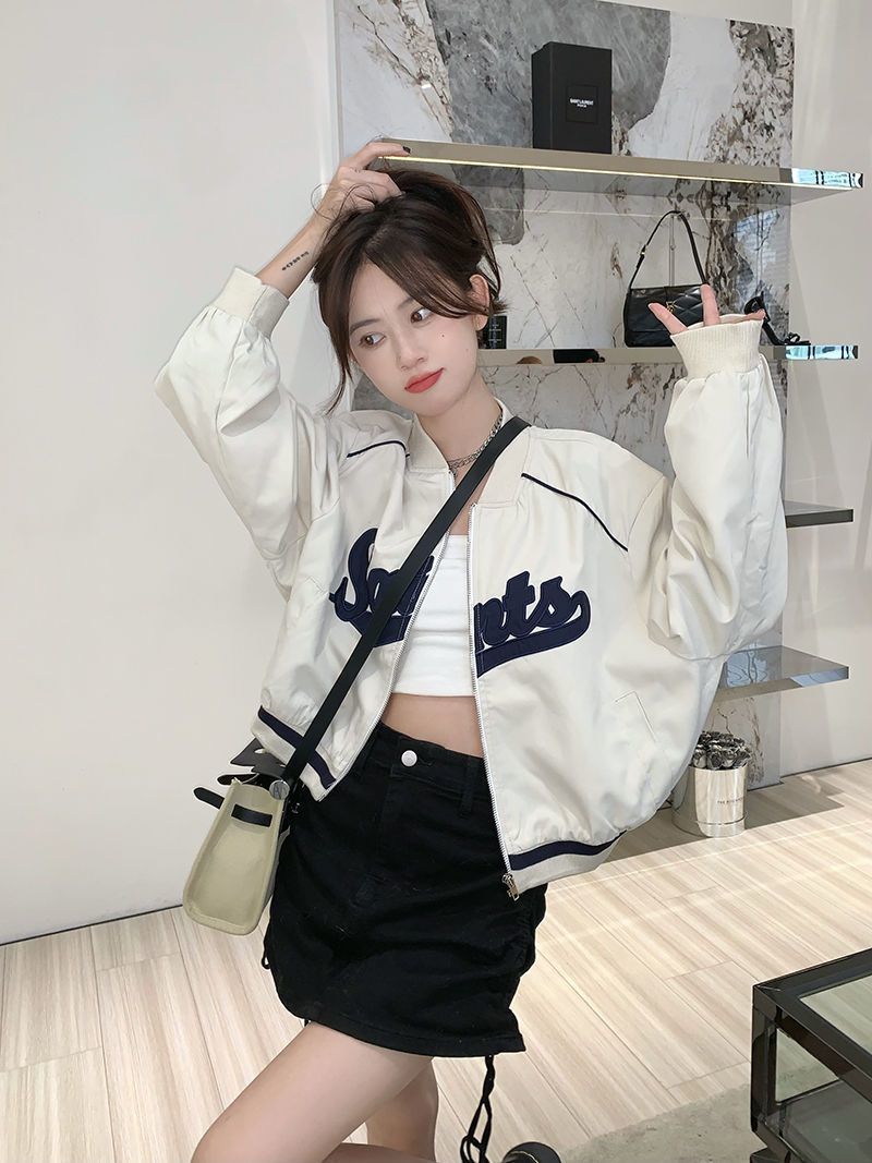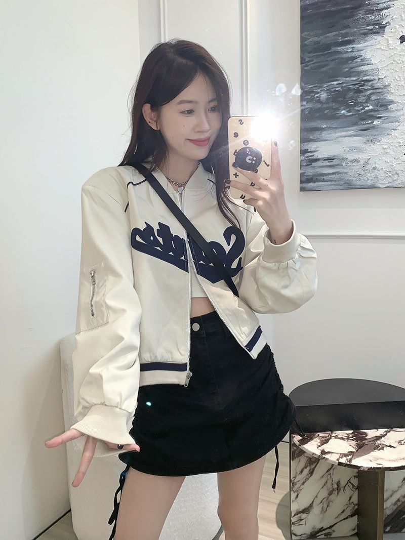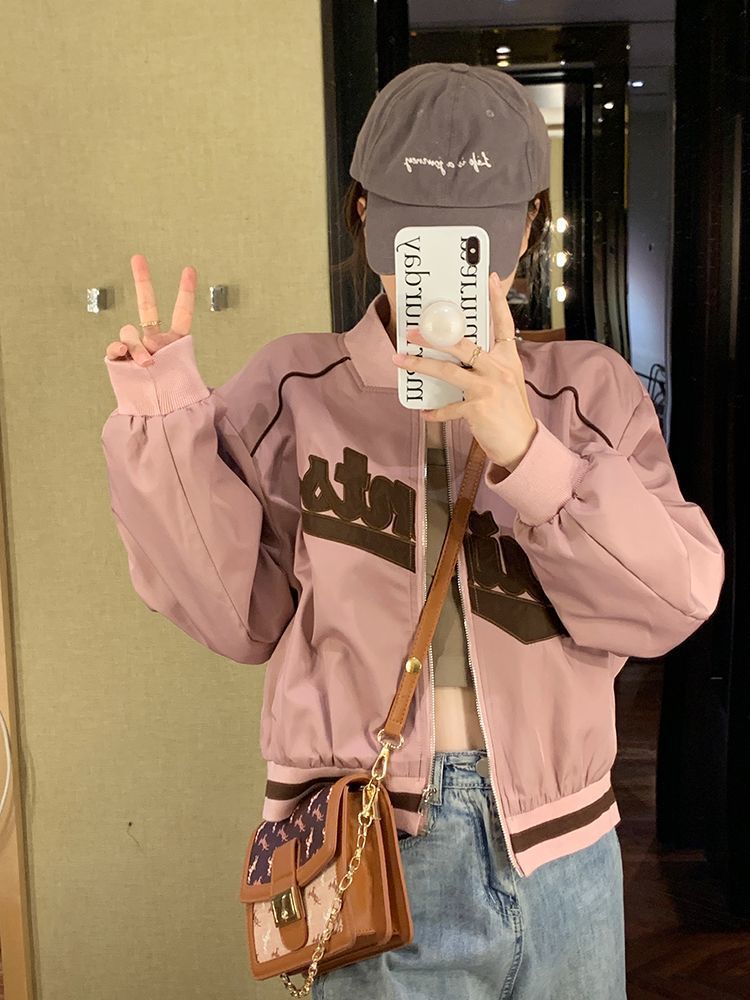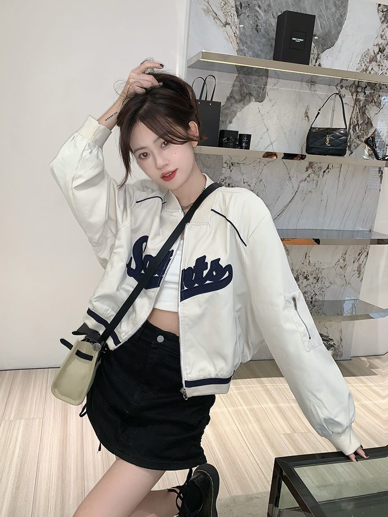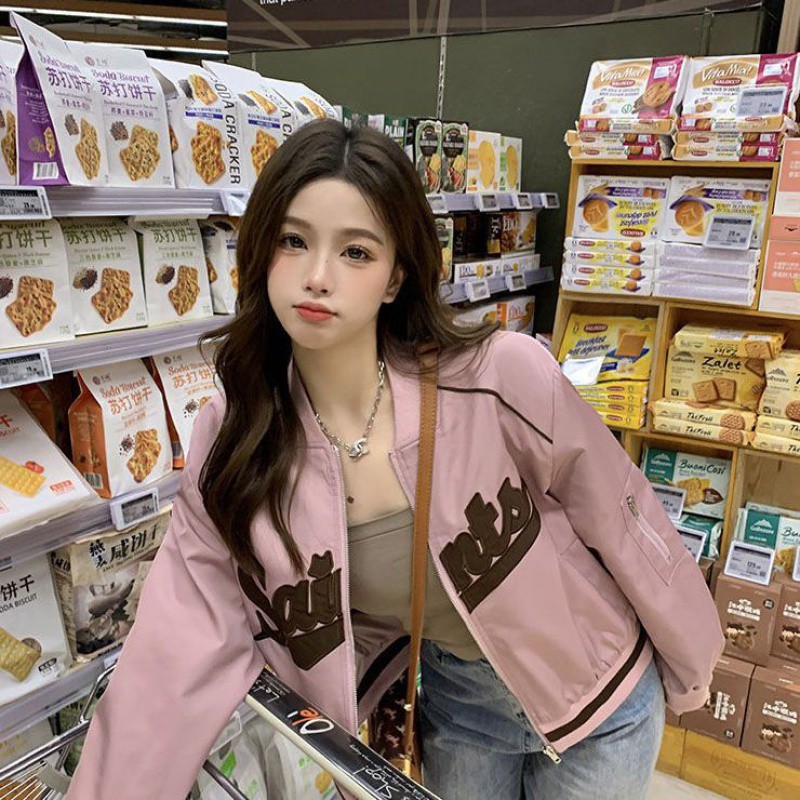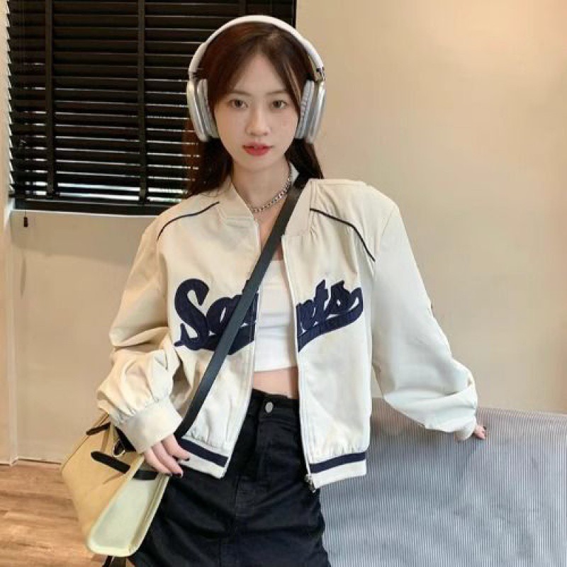 미국 캐주얼 야구 세트 코트 여자 봄과 가을 스타일 뜨거운 소녀 비행가 재킷 짧은 스타일 러시 의류 트렌디스토어 가기