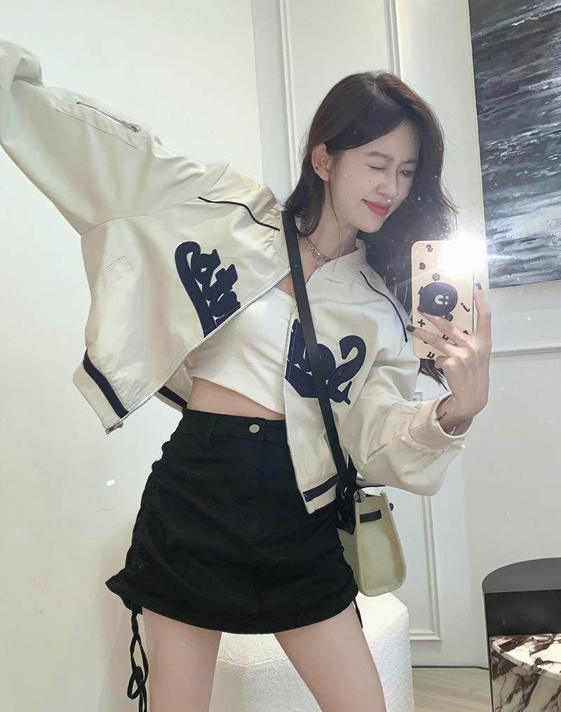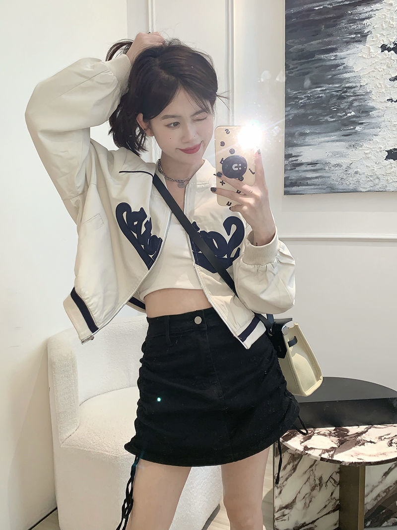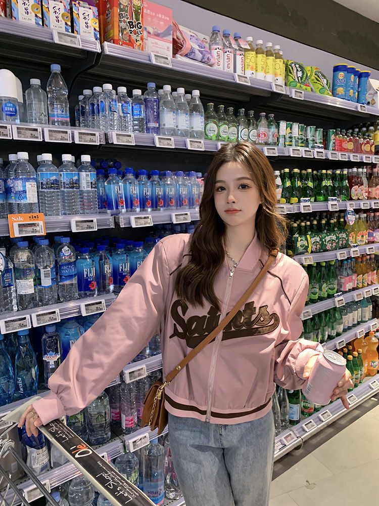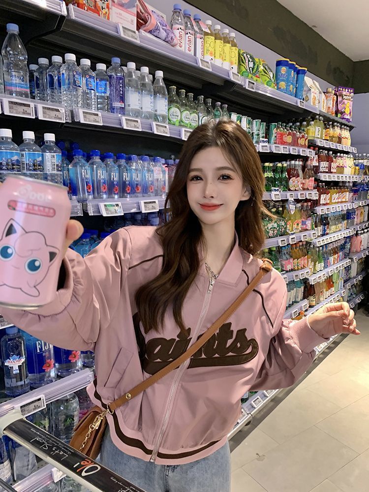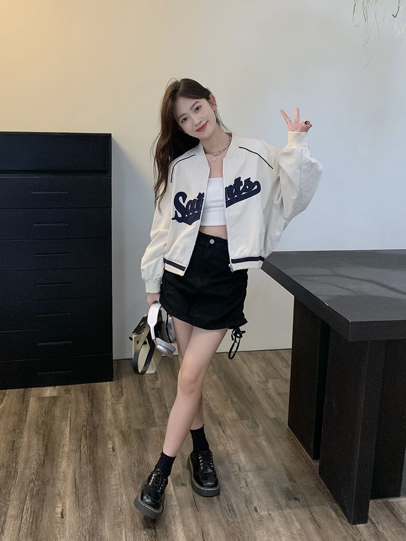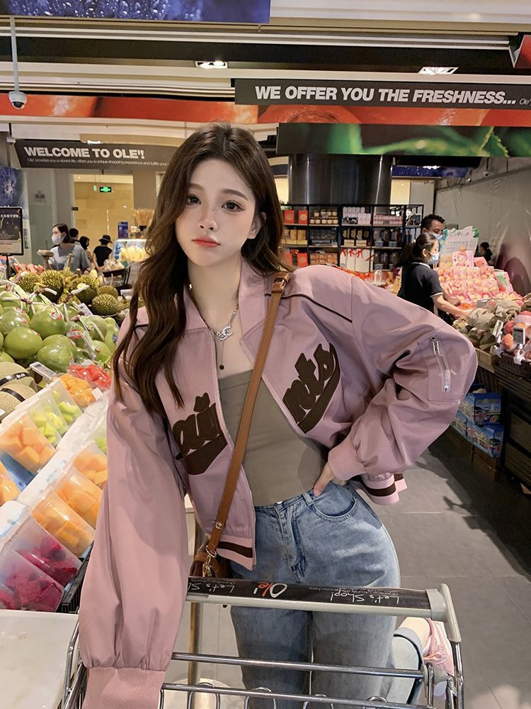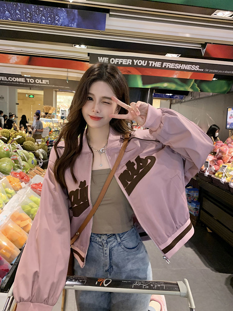 미국 캐주얼 야구 세트 코트 여자 봄과 가을 스타일 뜨거운 소녀 비행가 재킷 짧은 스타일 러시 의류 트렌디스토어 가기