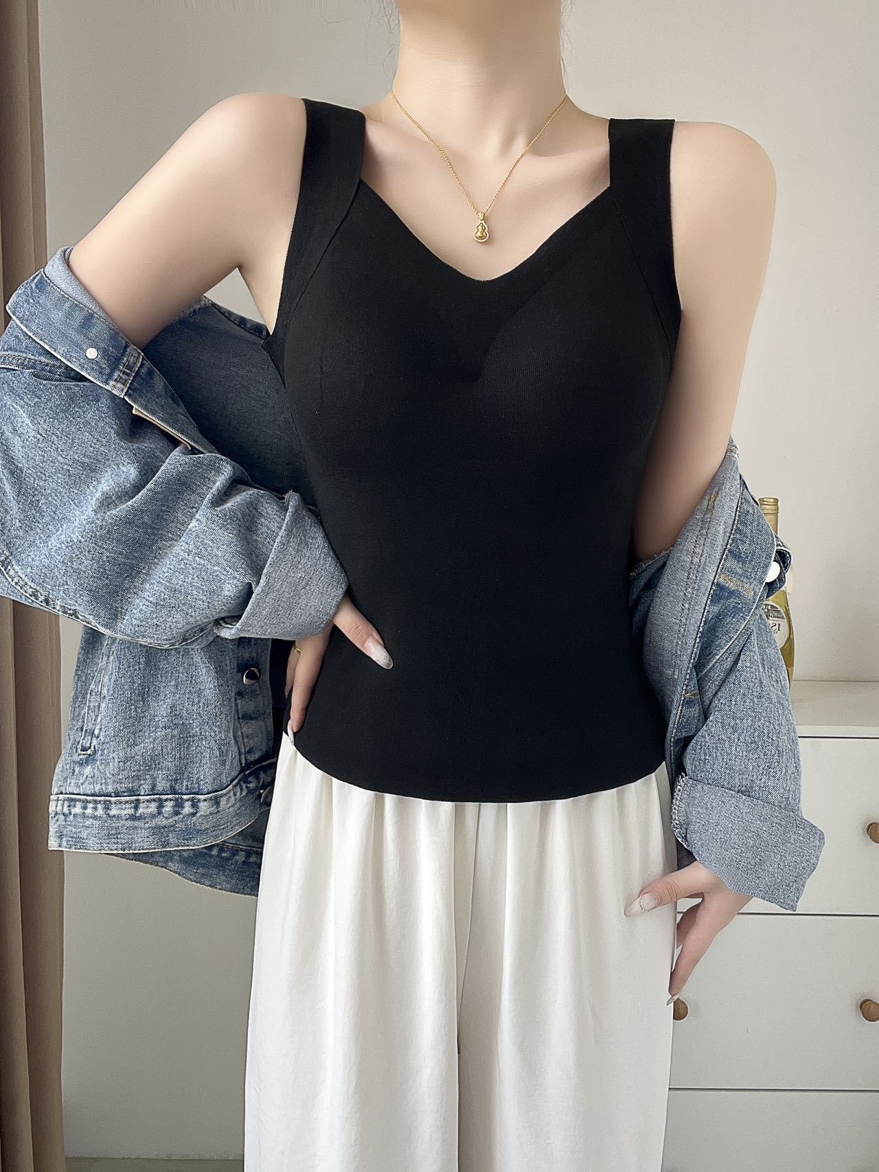가을과 겨울 새로운 독일 벨벳 열 속옷 여성용 브레이스 가슴 패드 냉방성 조끼 올 매치 원활한 착용 프리 베이스 셔츠