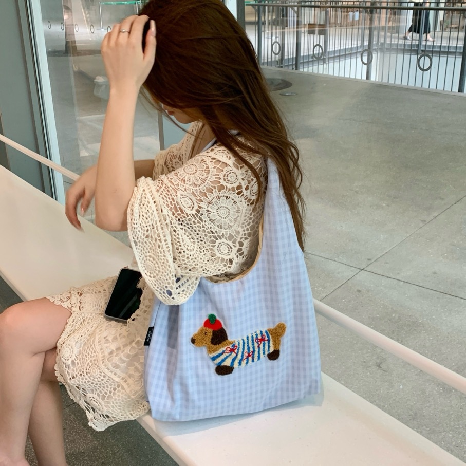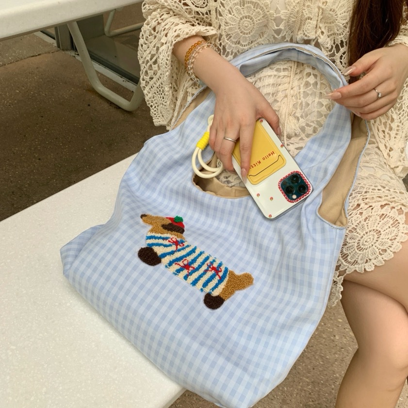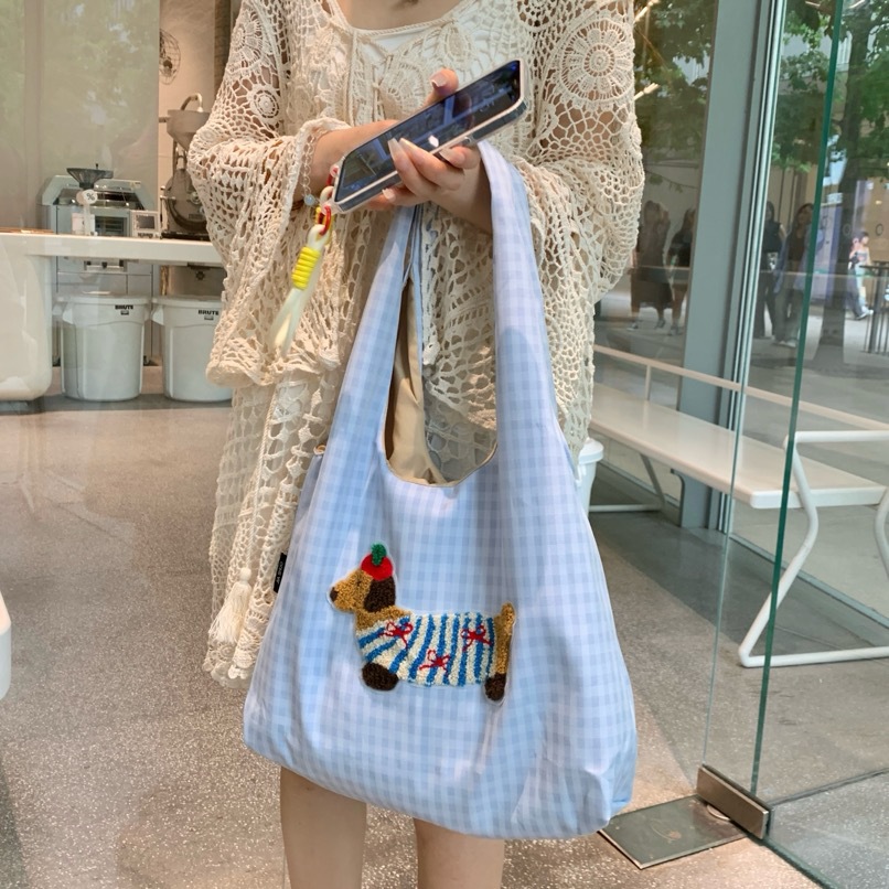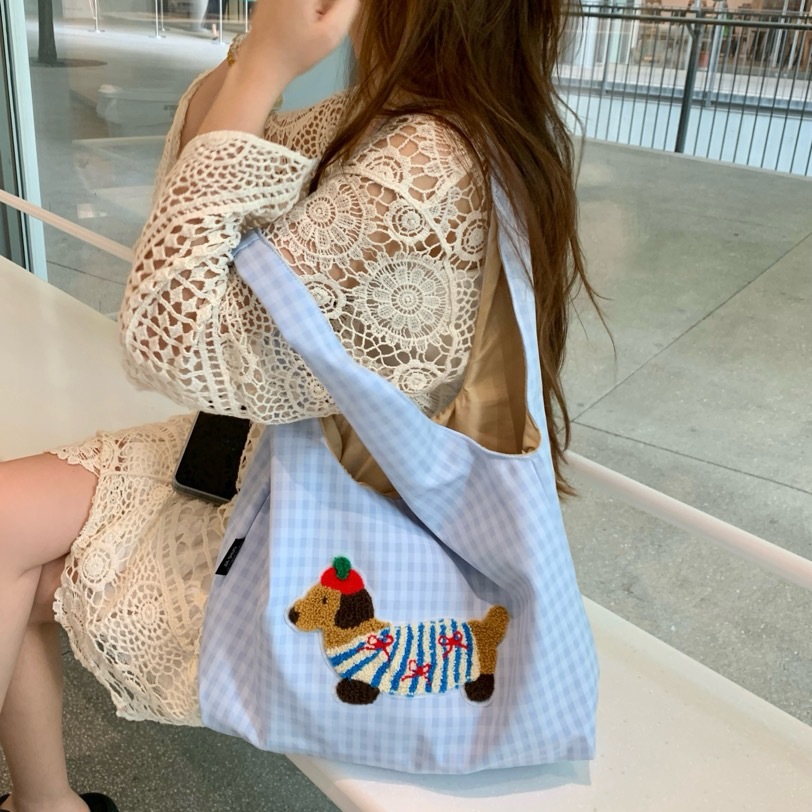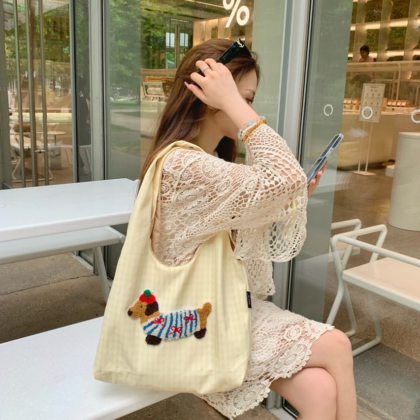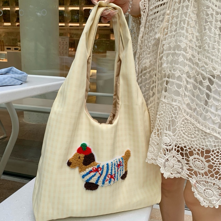 한국 스타일의 귀여운 소녀 토트 백 2024 새로운 자수 개 언더암 가방 하이 엔드 올 매치 숄더 백스토어 가기