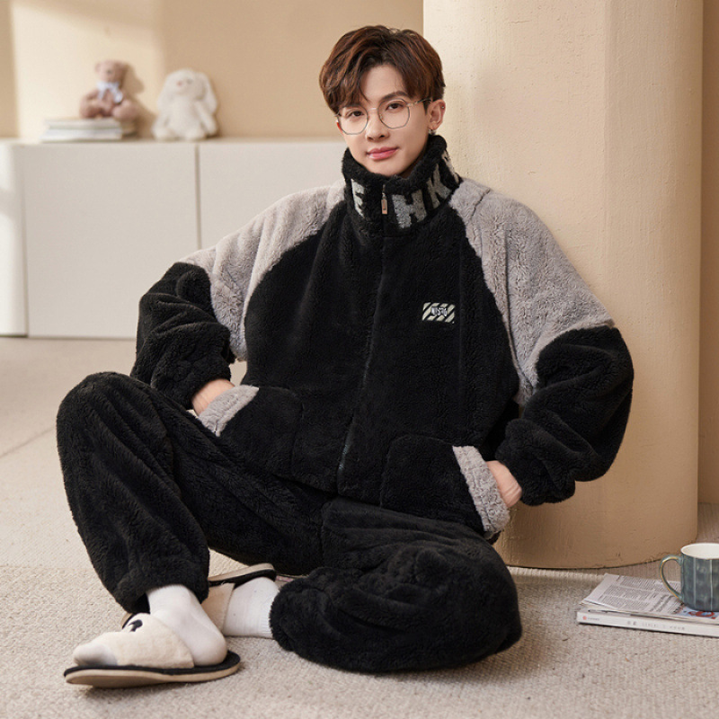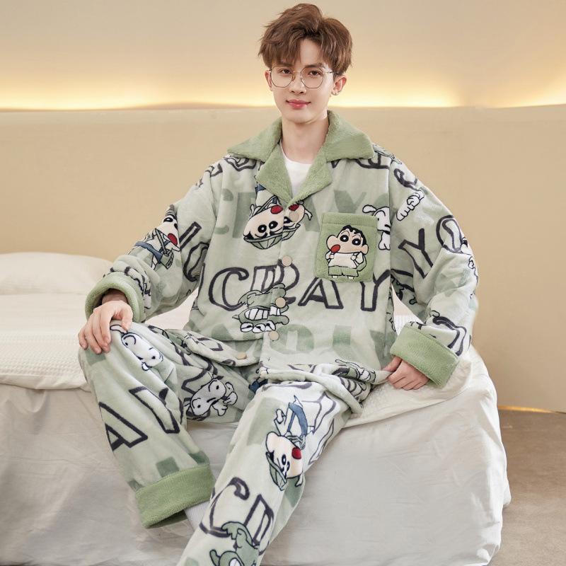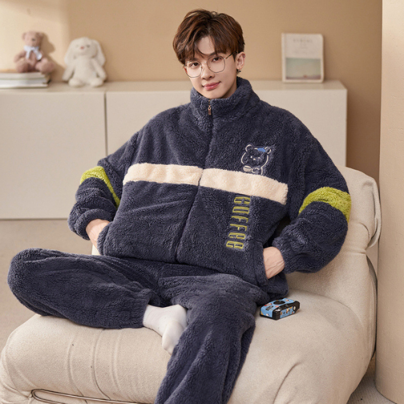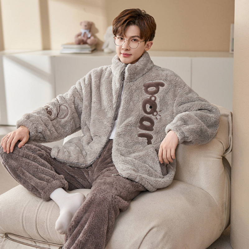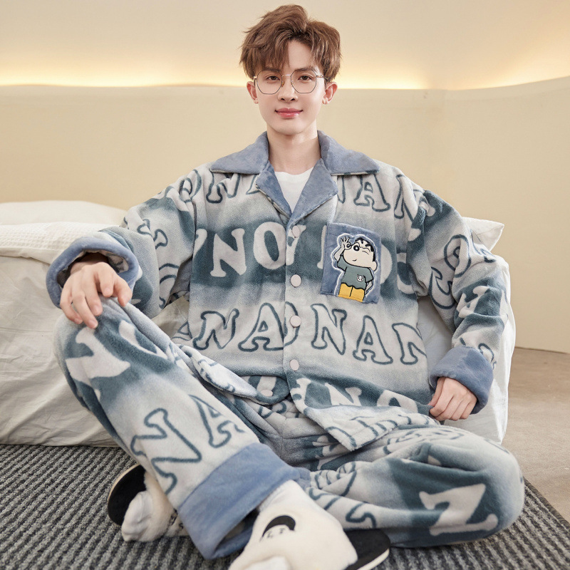 플러스 사이즈 280kg 지퍼 만화 잠옷 남자 겨울 패딩 플란넬 겨울 학생 홈 의류 세트
