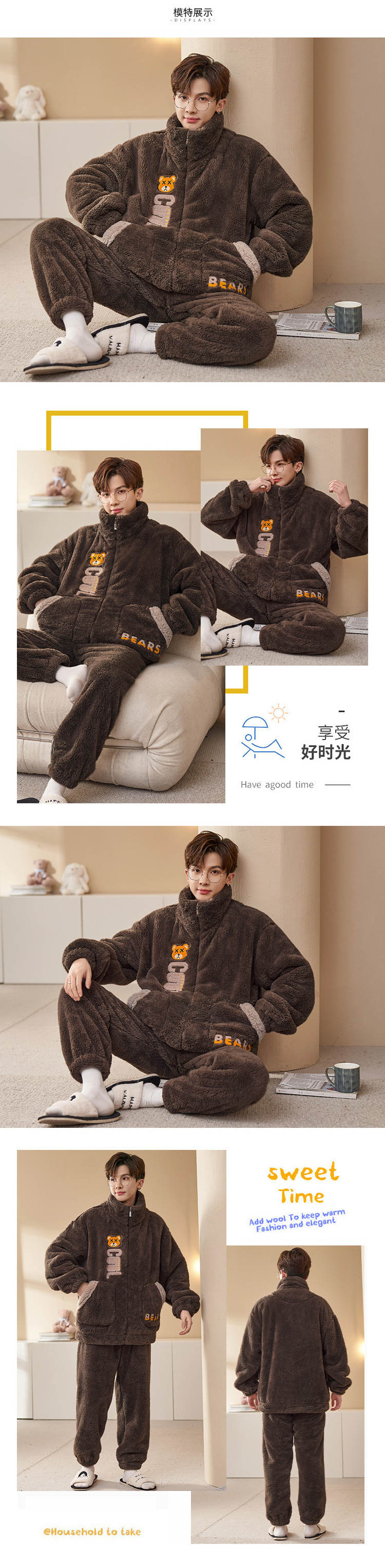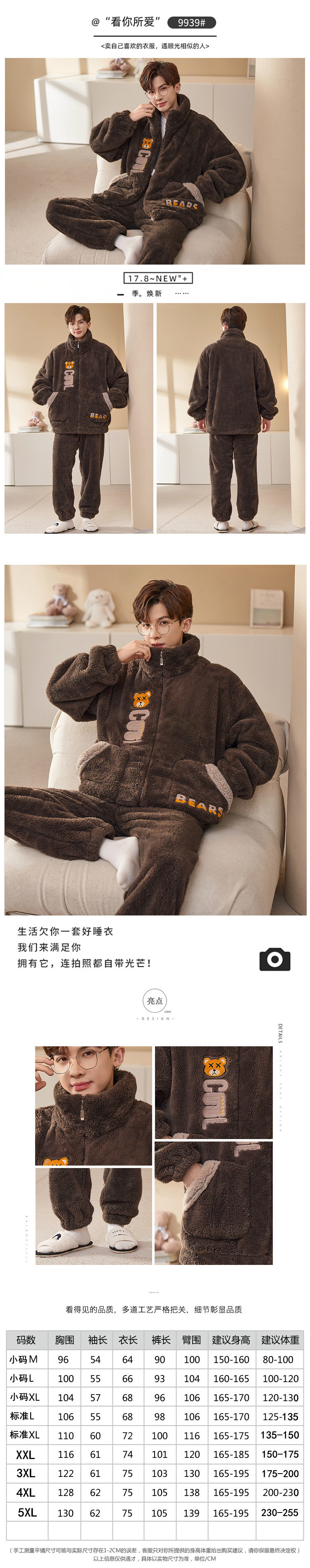 플러스 사이즈 280kg 지퍼 만화 잠옷 남자 겨울 패딩 플란넬 겨울 학생 홈 의류 세트스토어 가기