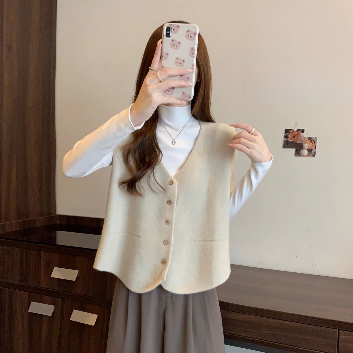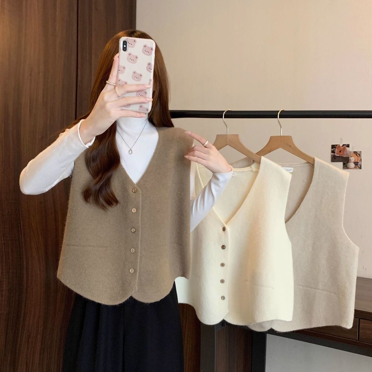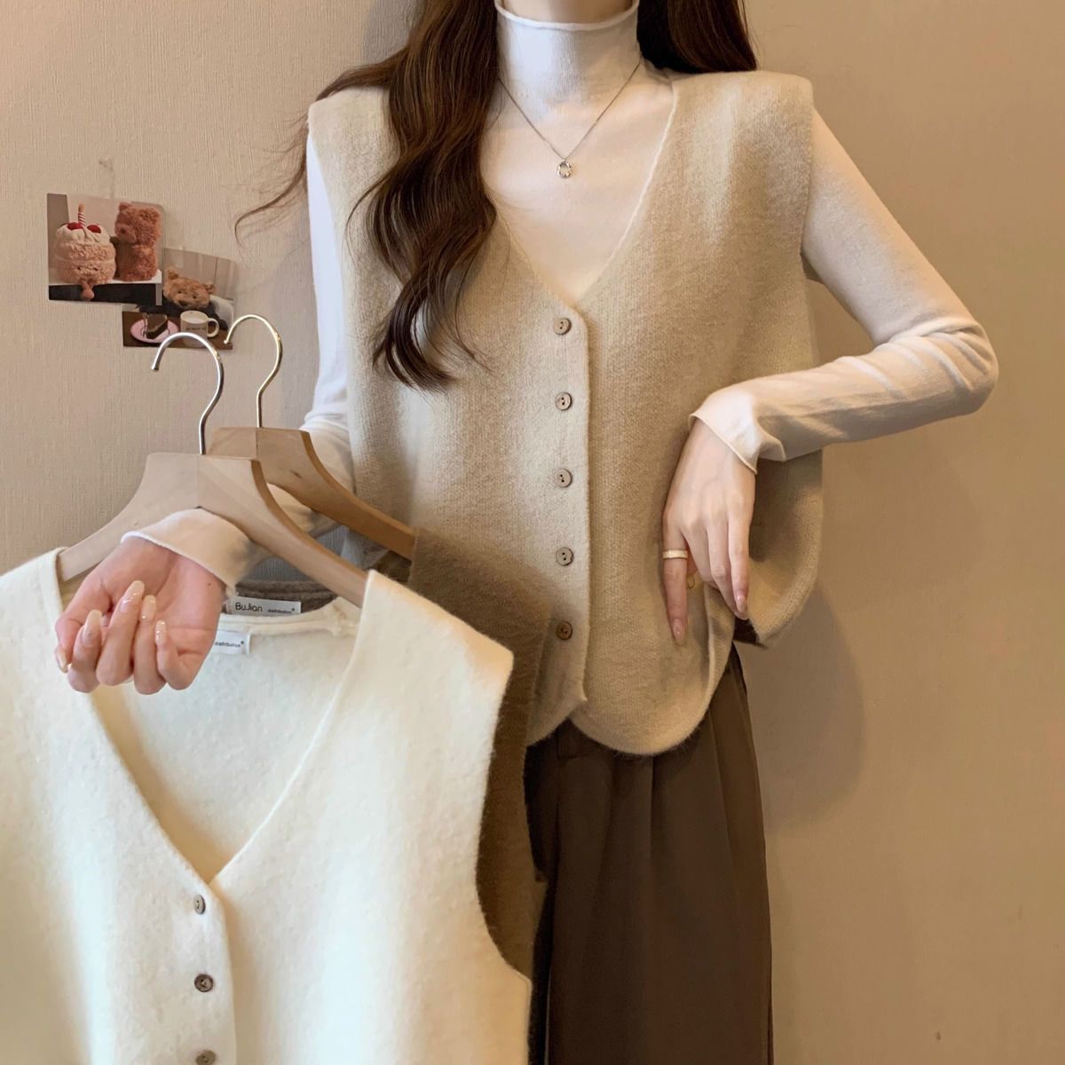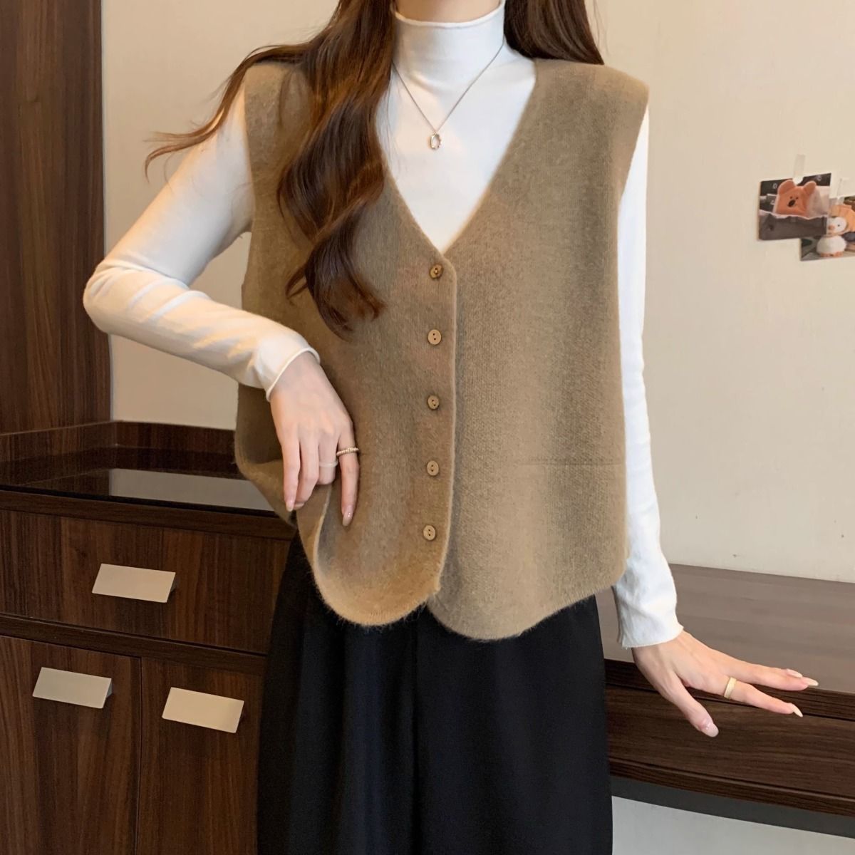 가을 및 겨울 재고 리얼 샷 플러스 사이즈 올 매치 V 넥 스웨터 조끼 소프트 싱글 브레스트 양복 조끼 여성용 탑스토어 가기