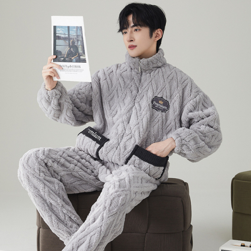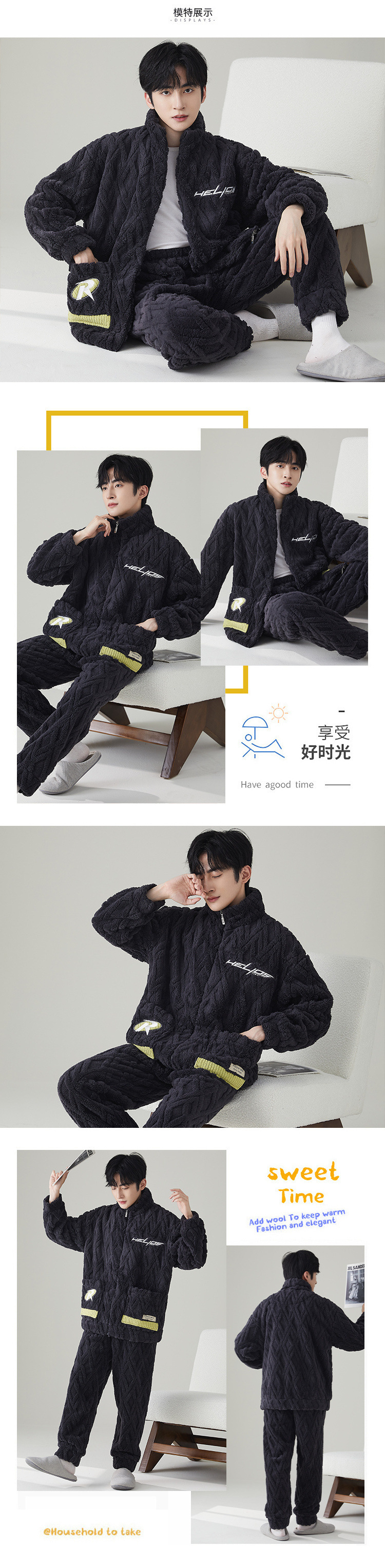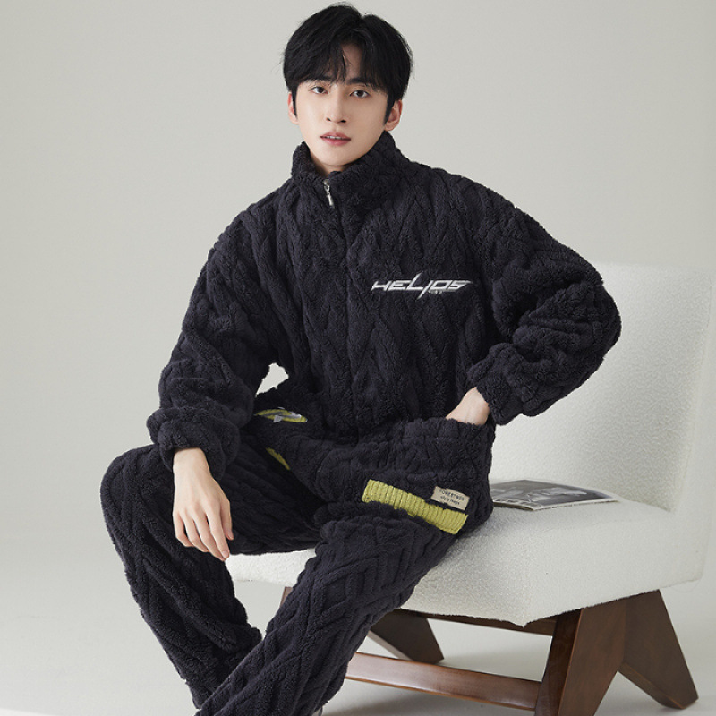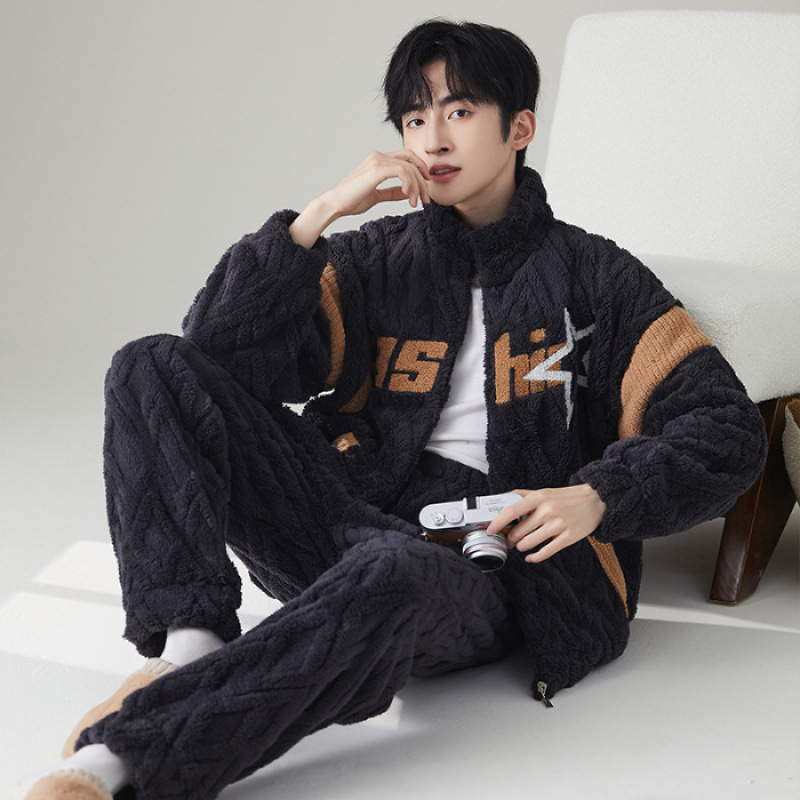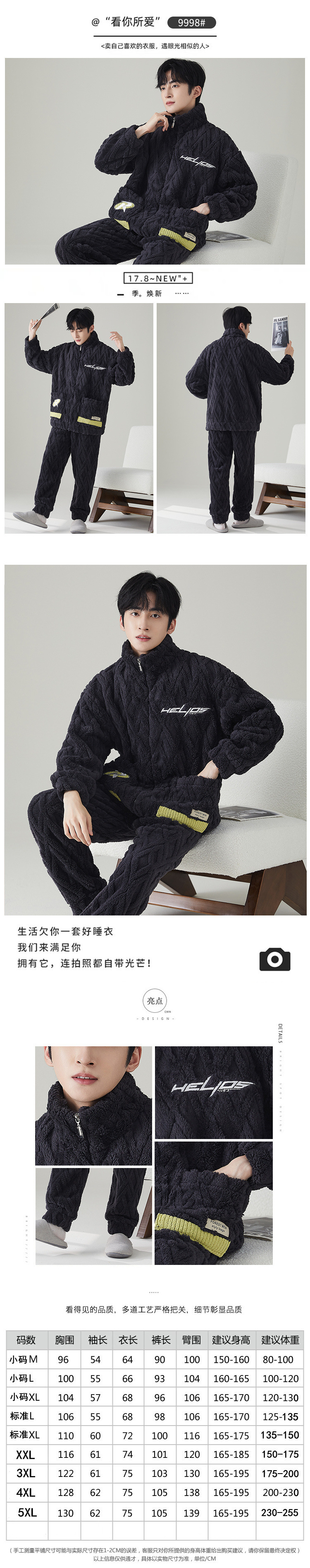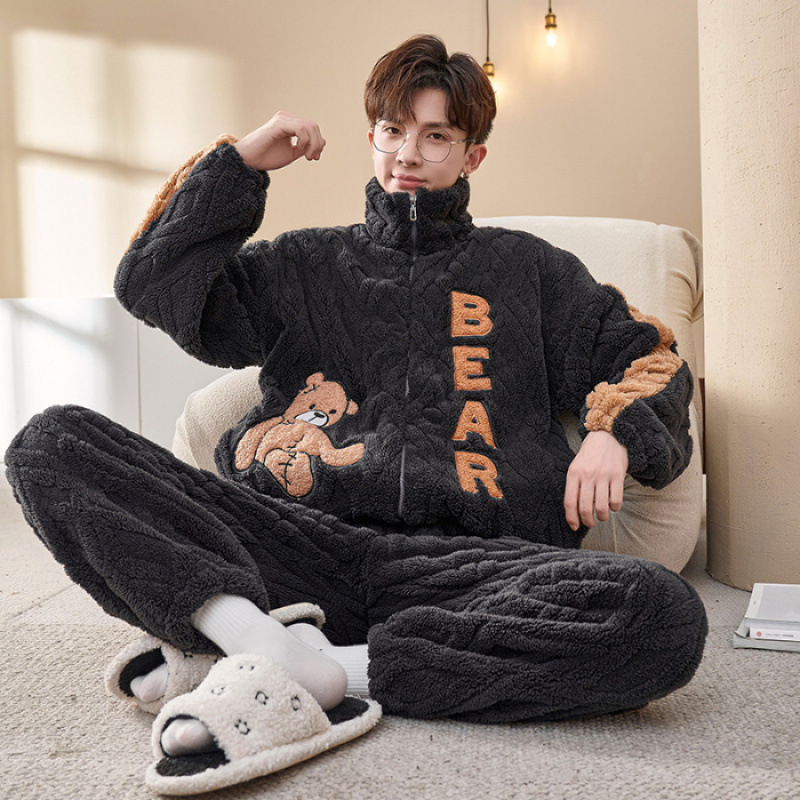 플러스 사이즈 280kg 지퍼 만화 잠옷 남자 겨울 패딩 플란넬 겨울 학생 홈 의류 세트