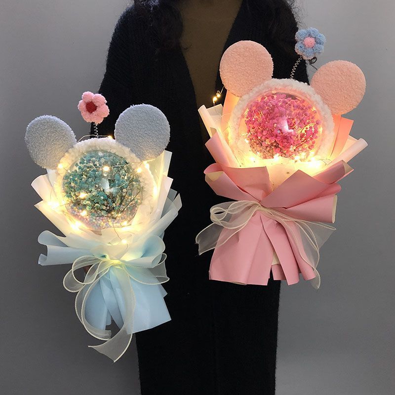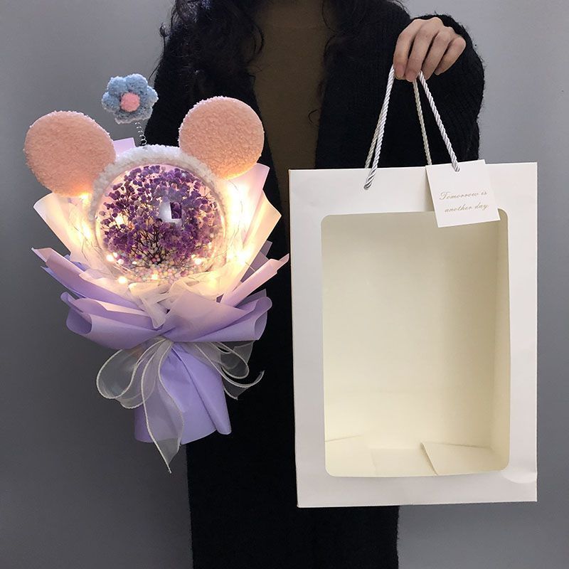 • 미키 머리띠 + 보라색 아기 호흡 + 선물 가방 - 드라이 플라워 가방✦