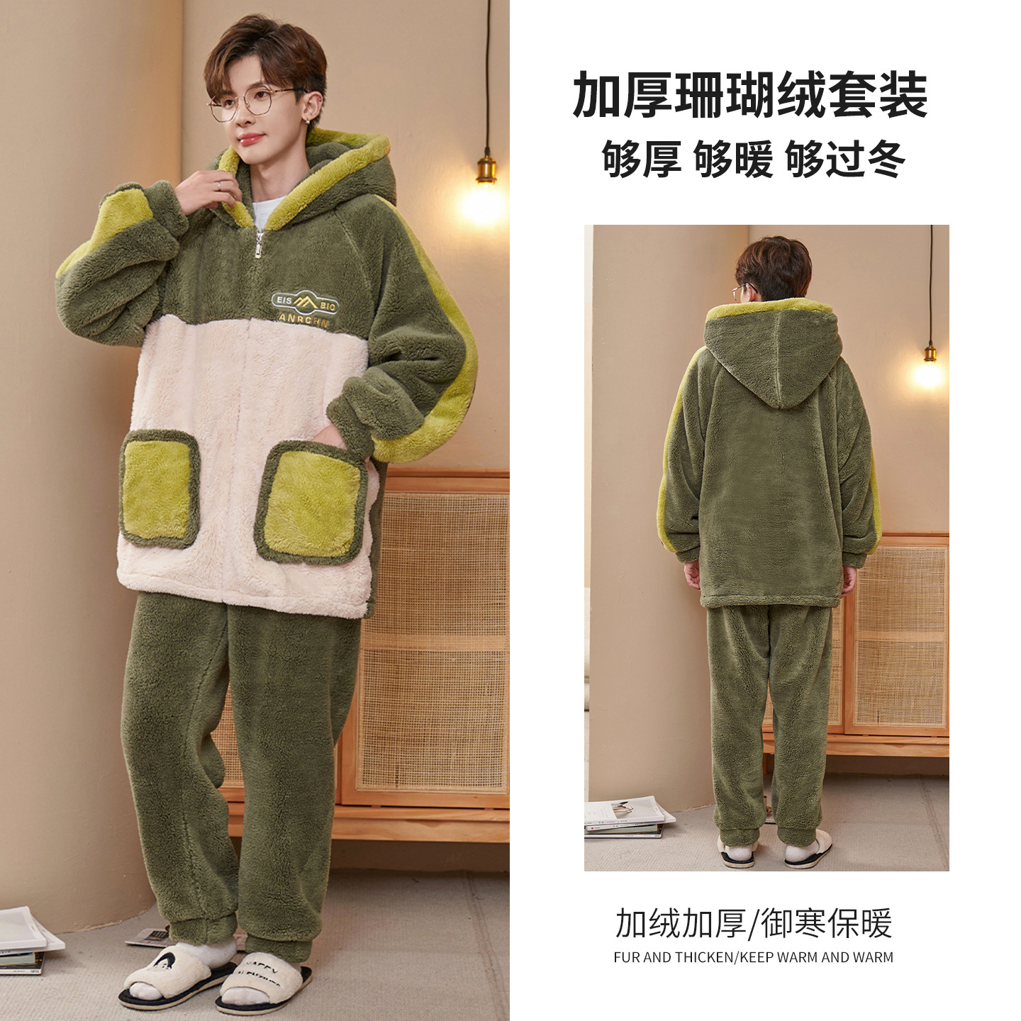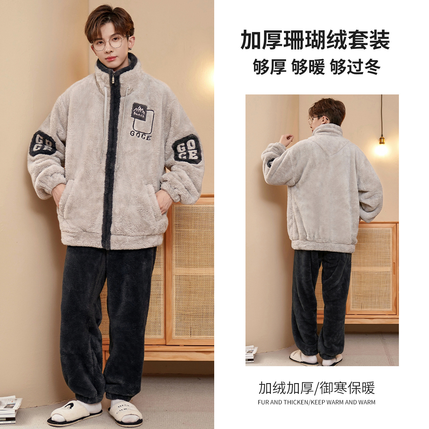남성용 산호 벨벳 잠옷 겨울용 두꺼운 플리스 2025년 신상 청소년용 대형 사이즈 가을 겨울 홈웨어 남성용스토어 가기