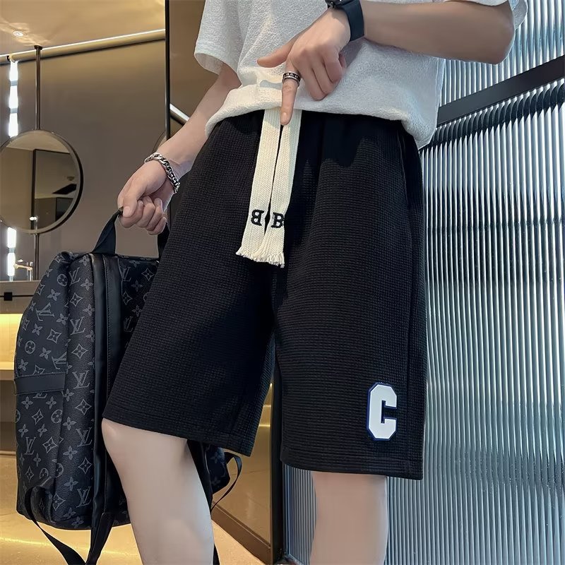 스트레이트 튜브 느슨한 스포츠 바지 소년 여름 새로운 청소년 인기있는 5 점 바지 패션 패션 브랜드 캐주얼 반바지 남성복