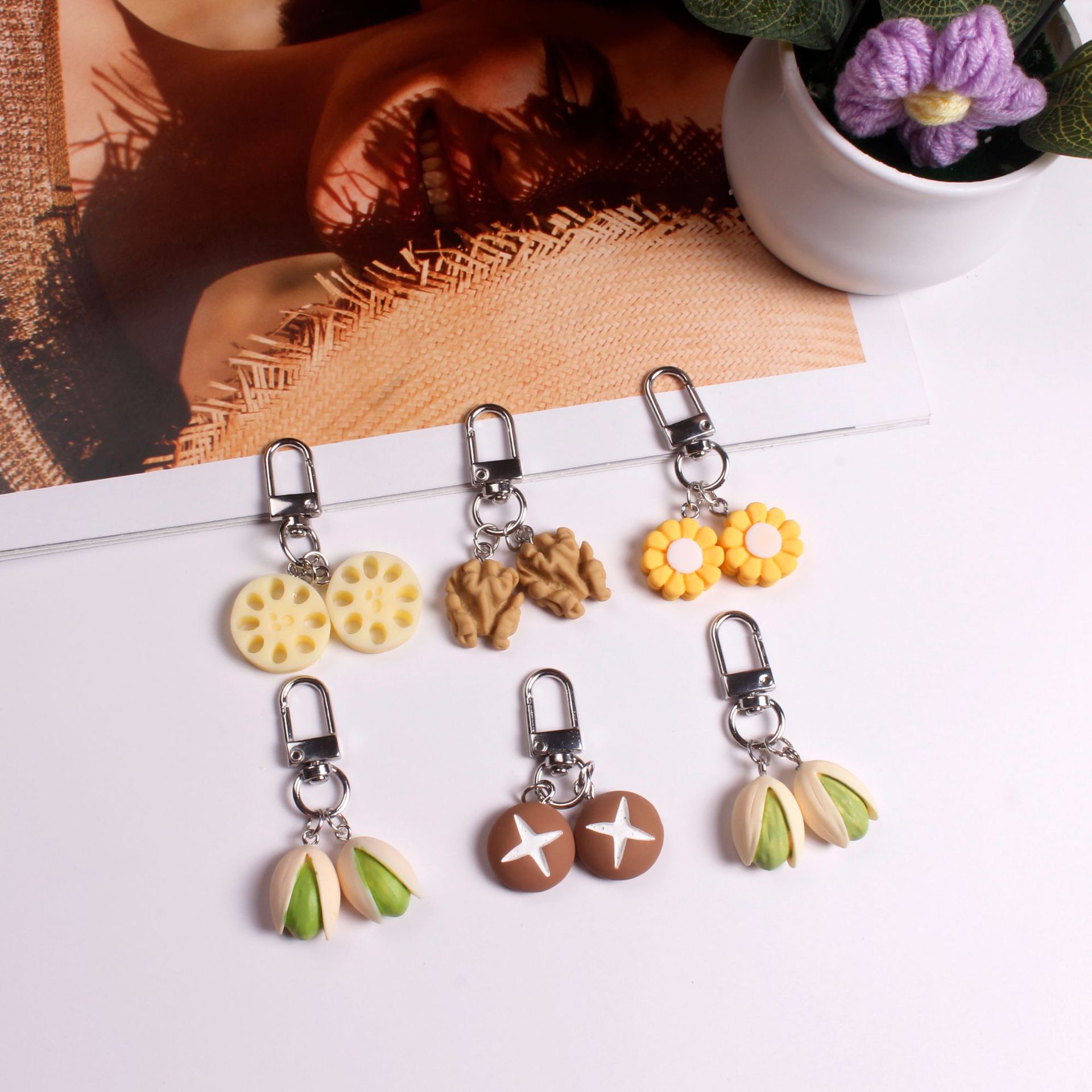 레진 모조 피스타치오 장난감 인스 키체인 가방 장식 선물 도매 자동차 키 인스 스타일