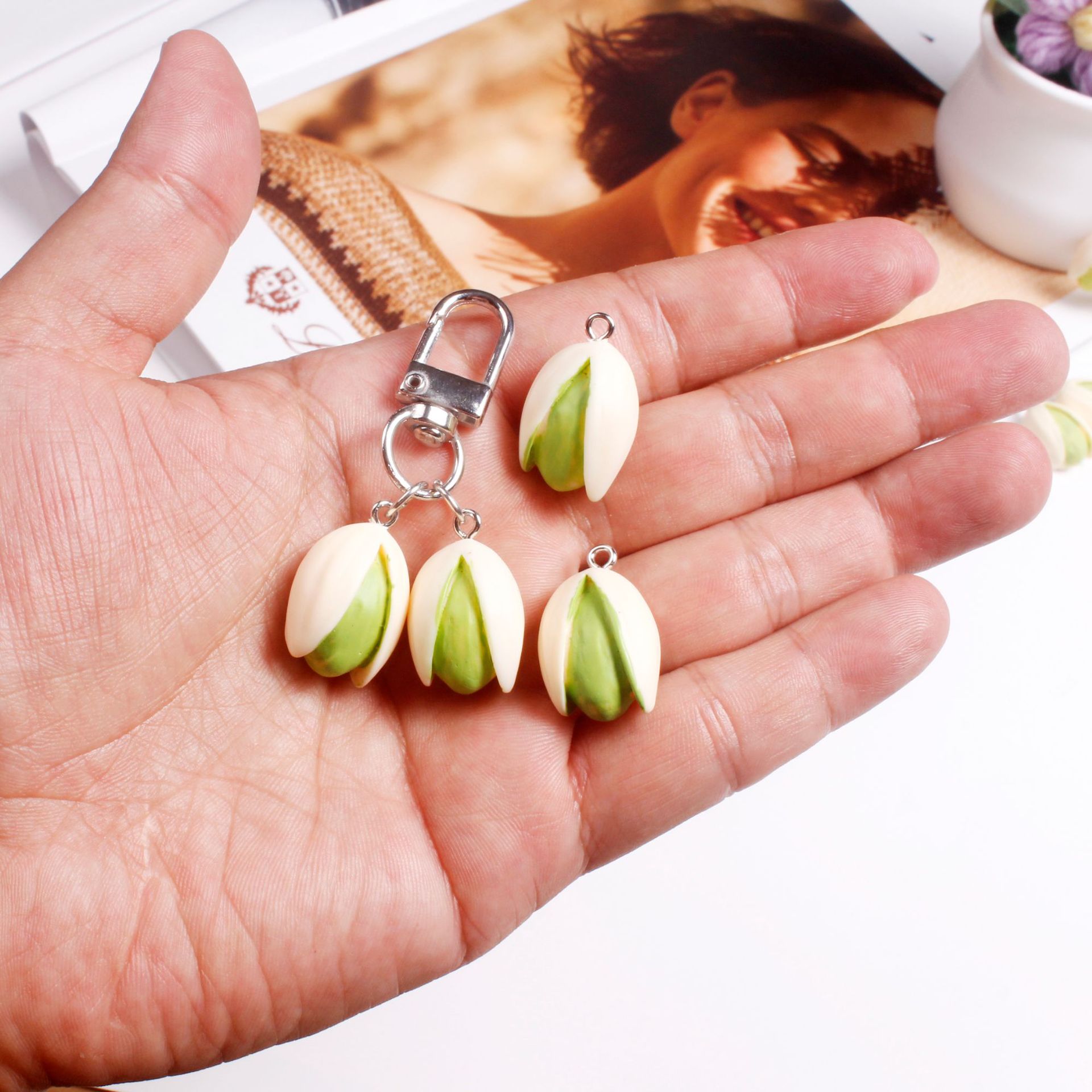 레진 모조 피스타치오 장난감 인스 키체인 가방 장식 선물 도매 자동차 키 인스 스타일스토어 가기