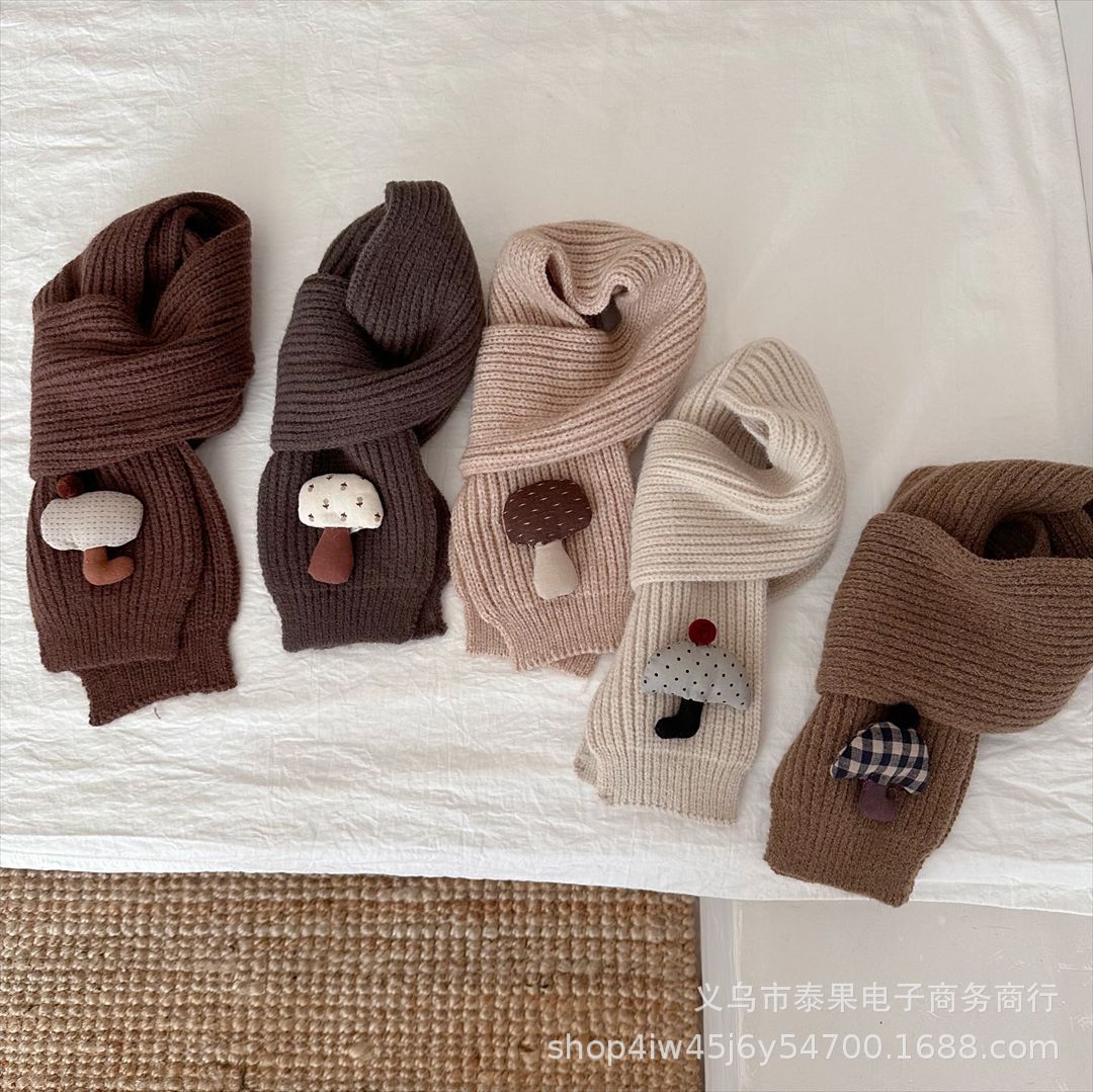 2024 겨울 아기의 만화 버섯 니트 따뜻한 목 어린이 한국 스타일 간단한 단색 컨캐브 긴 스카프스토어 가기