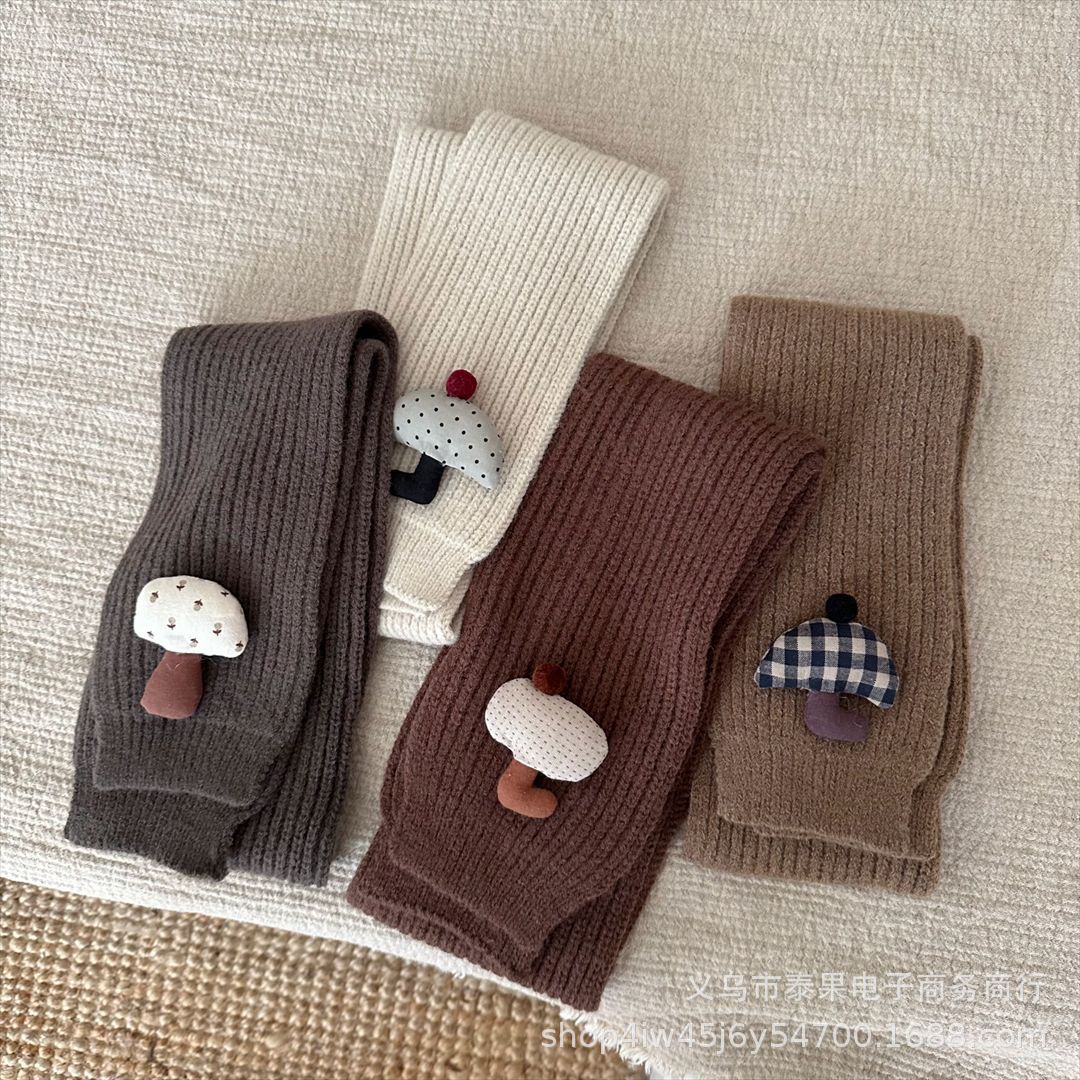 2024 겨울 아기의 만화 버섯 니트 따뜻한 목 어린이 한국 스타일 간단한 단색 컨캐브 긴 스카프
