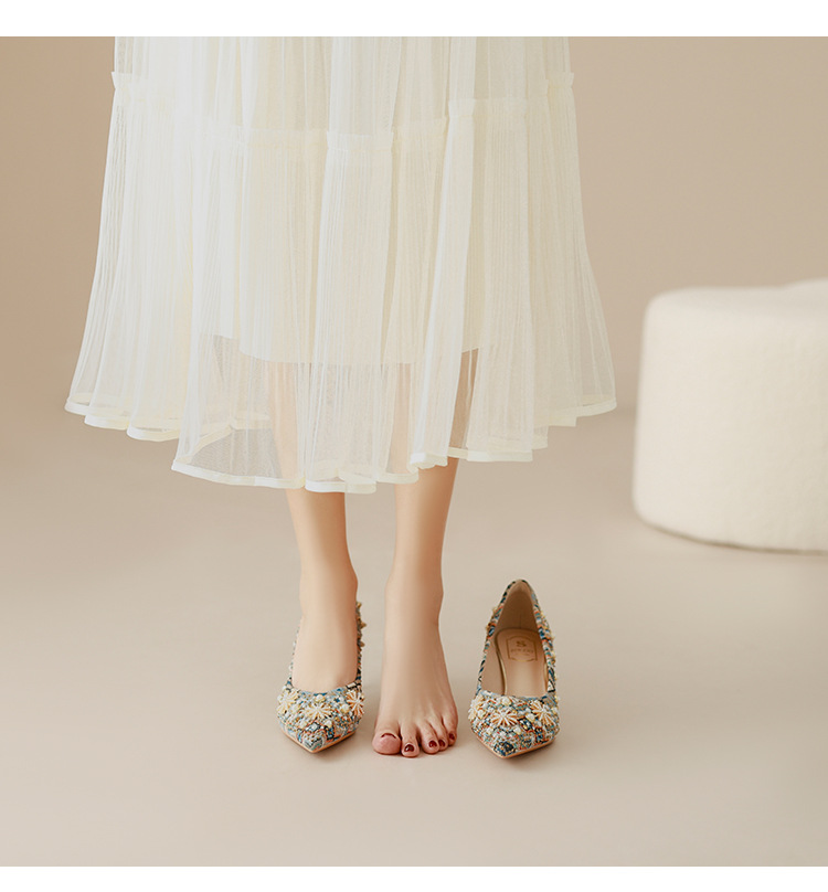 688-3 가을 2024 새로운 수제 싱글 신발 여성용 틈새 뾰족한 라인스톤 프랑스 하이힐 파인 힐 라이트 럭셔리 여성 신발스토어 가기
