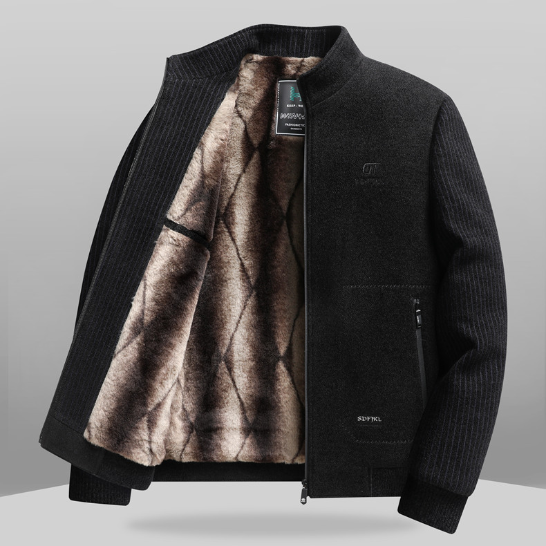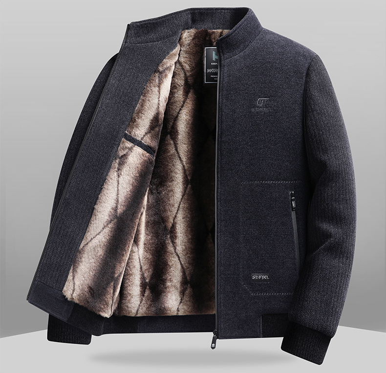 2024 새로운 가을/겨울 중년 남성 기모 두꺼운 Chenille 재킷 아빠 느슨한 칼라 재킷