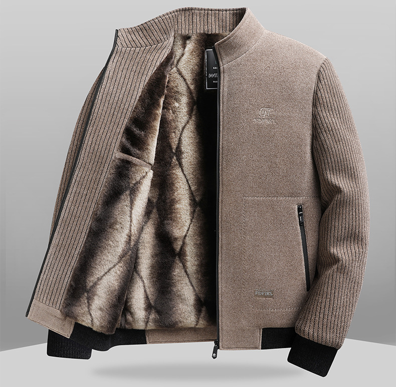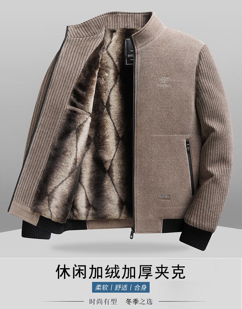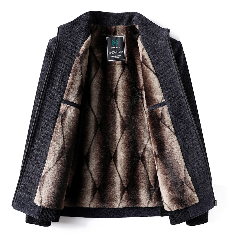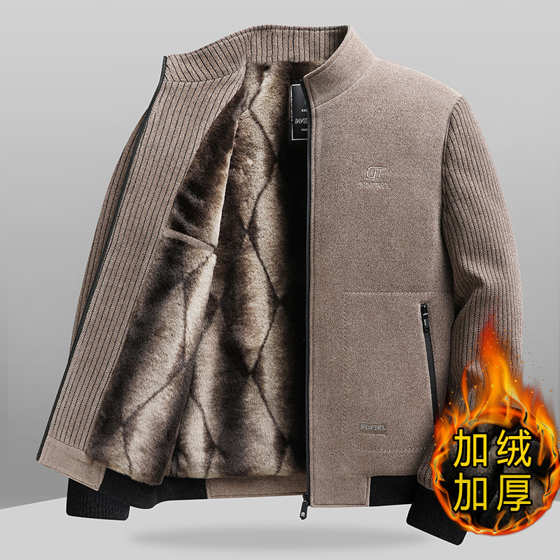 2024 새로운 가을/겨울 중년 남성 기모 두꺼운 Chenille 재킷 아빠 느슨한 칼라 재킷스토어 가기