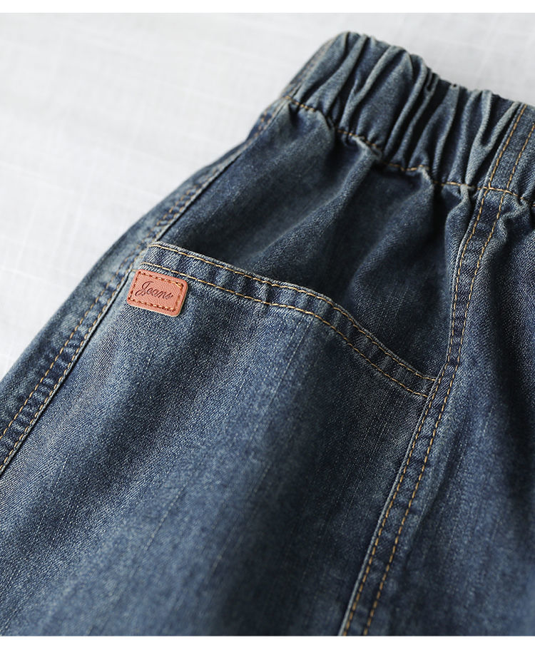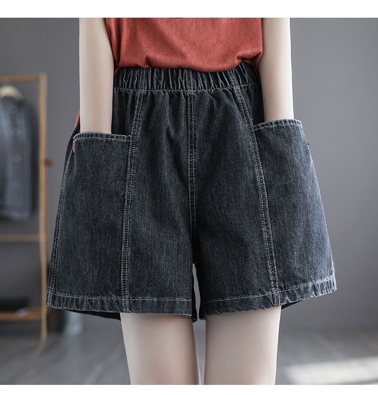 여름 한국 스타일 데님 반바지 여성 대형 포켓 느슨한 슬리밍 연령 감소 통통녀 짧은 스트레치 허리 Jiatai