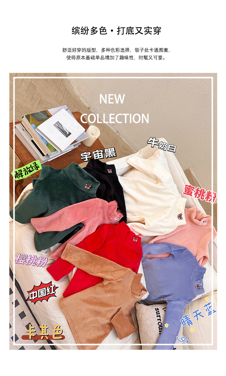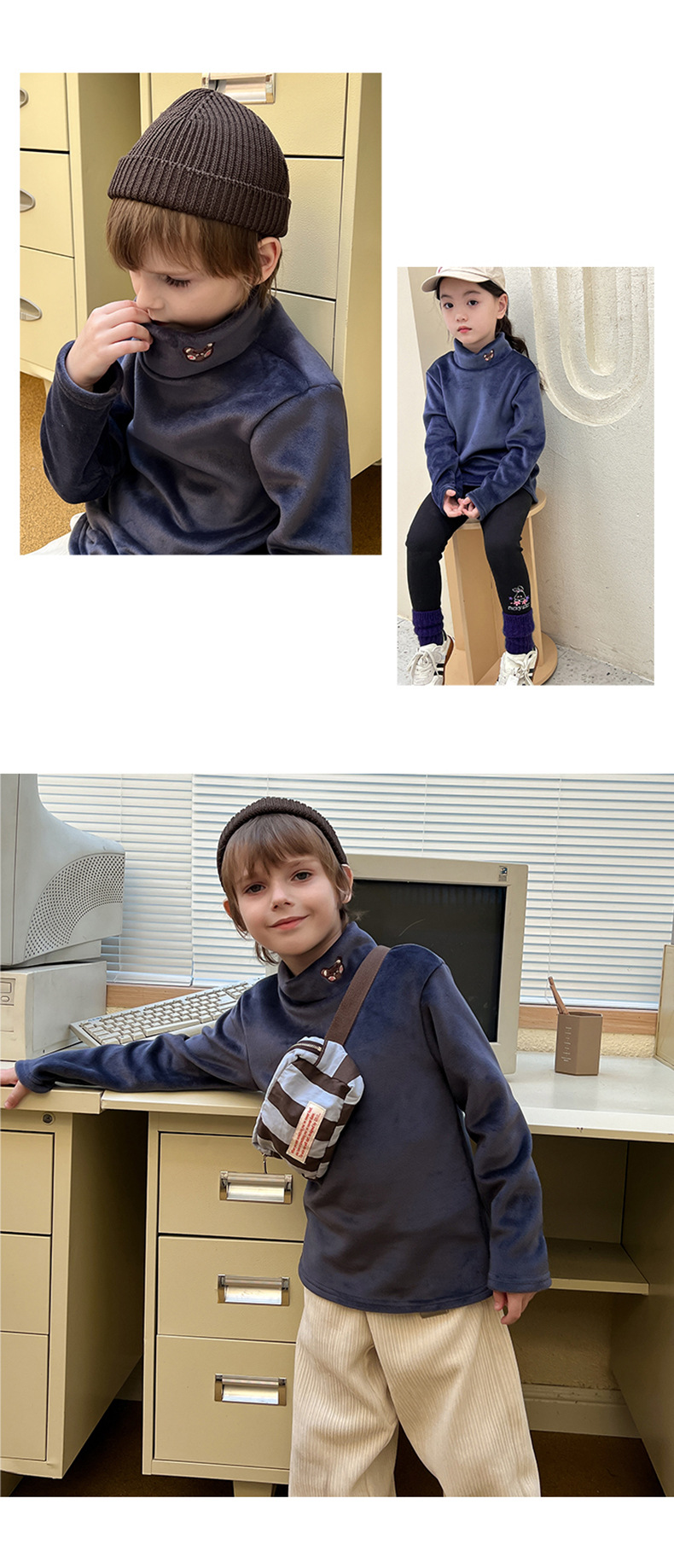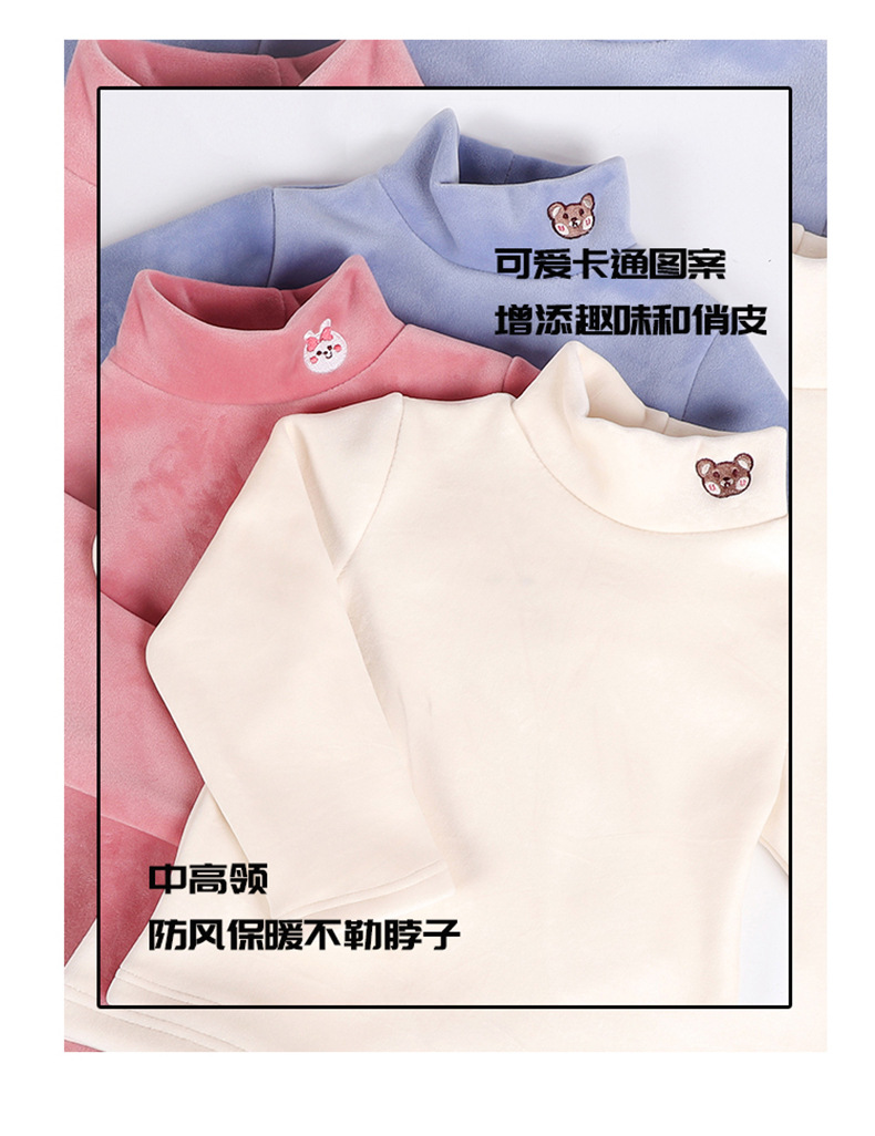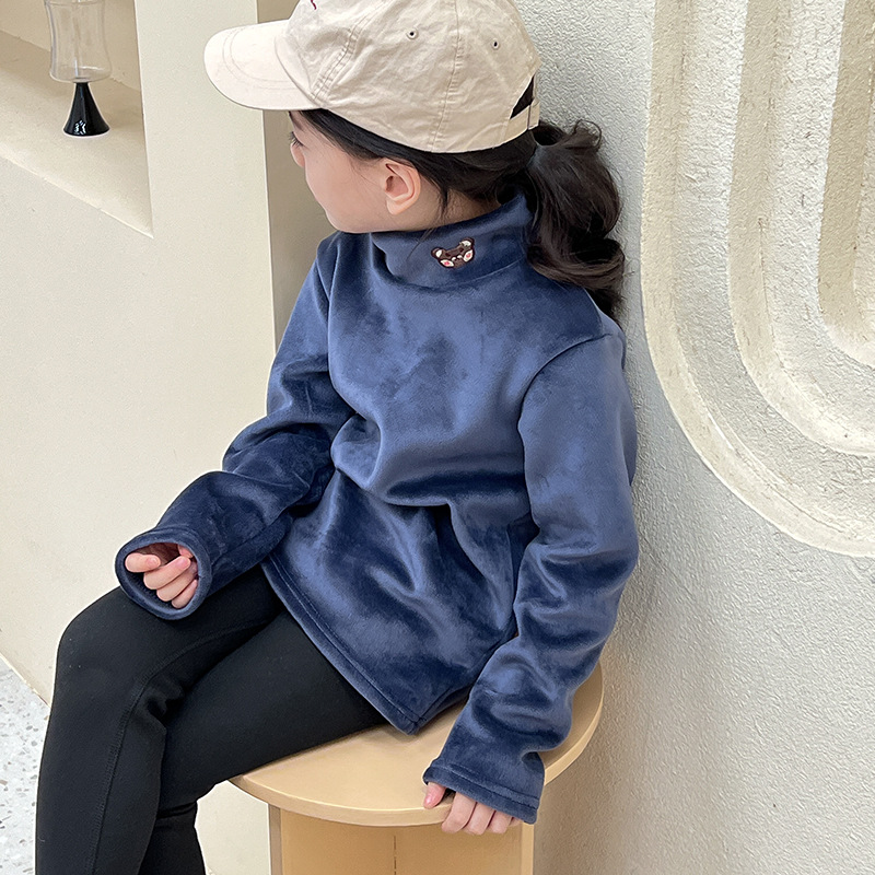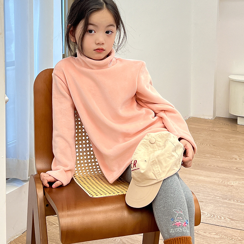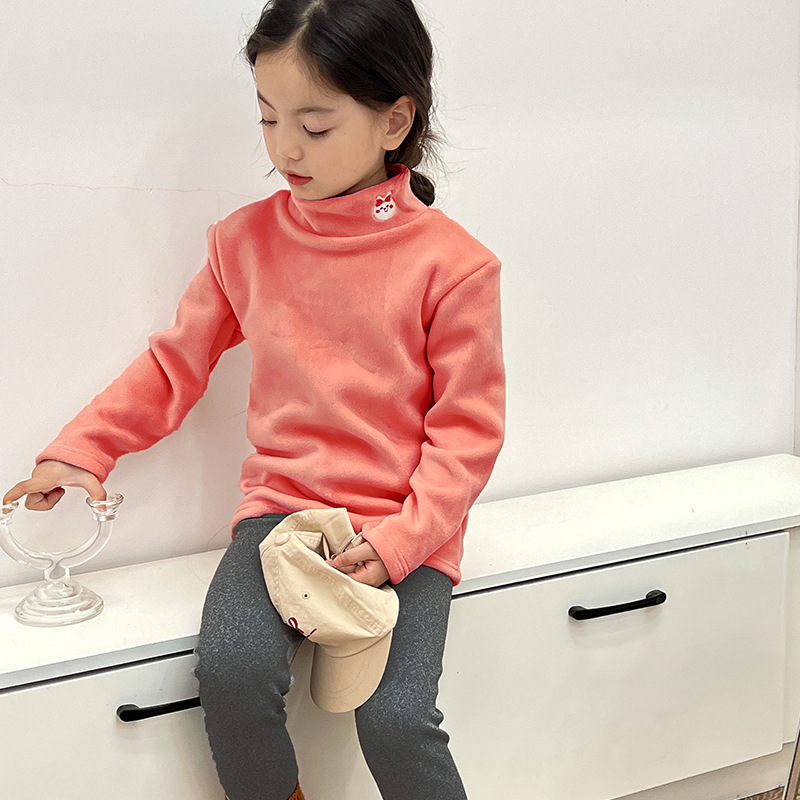 가을과 겨울 어린이 양면 벨벳 중간 칼라 따뜻한 베이스 셔츠 소년 소녀를위한 두꺼운 긴 소매 탑 T 하이 칼라 간단한 인테리어스토어 가기