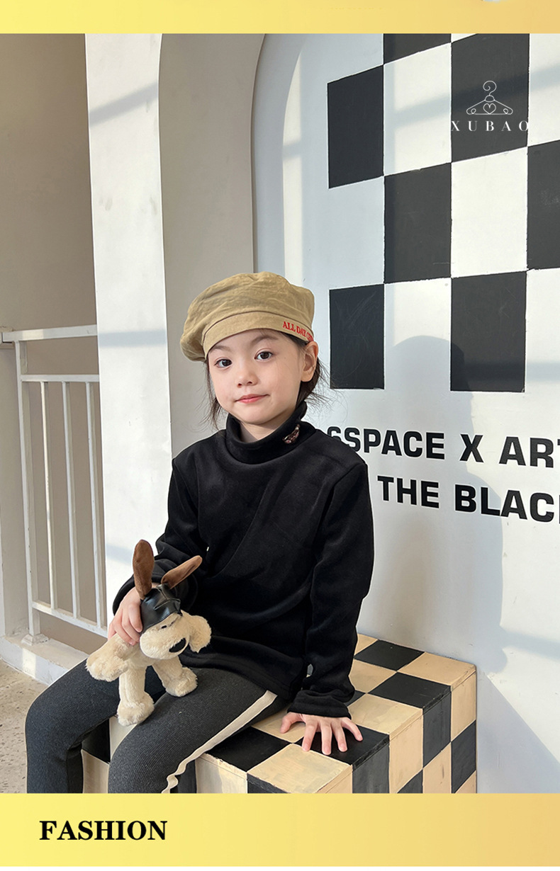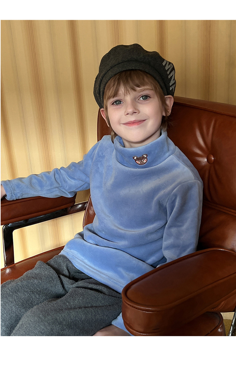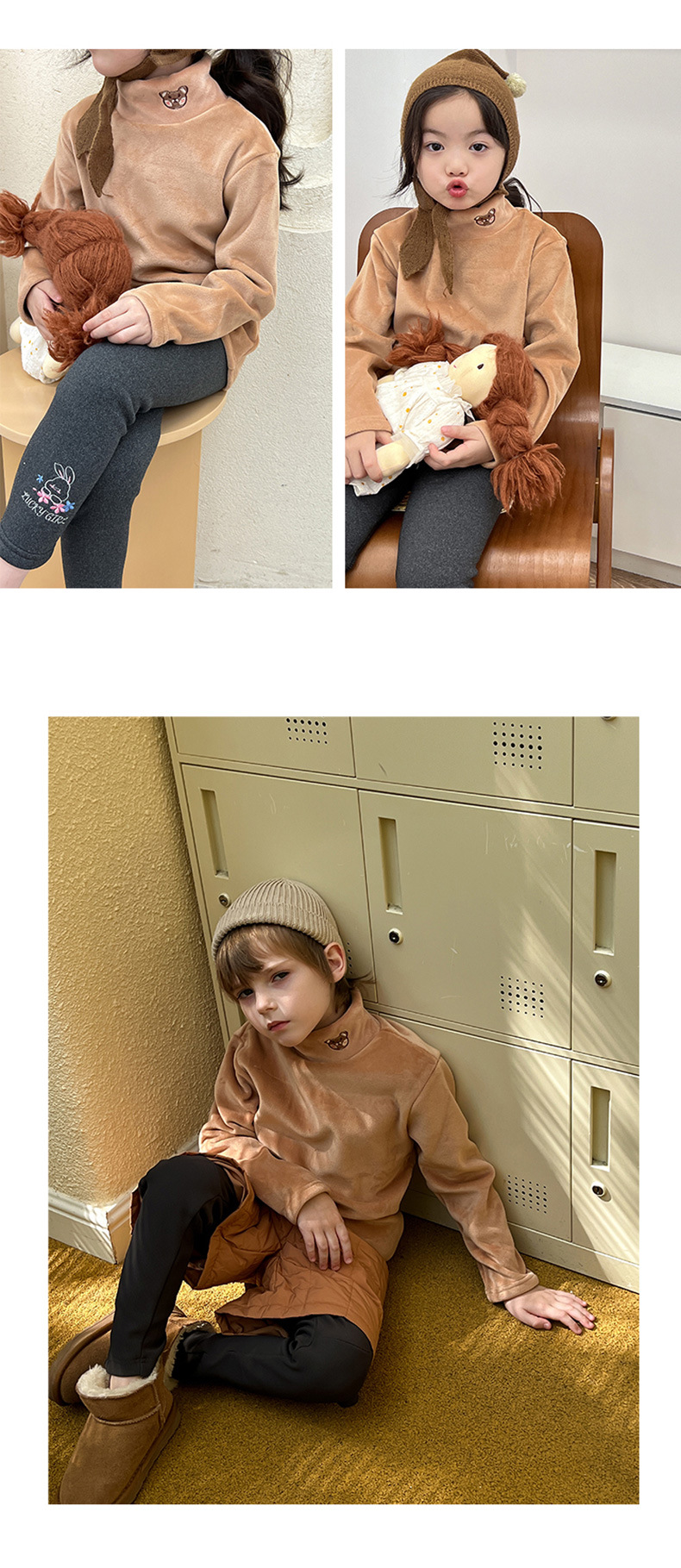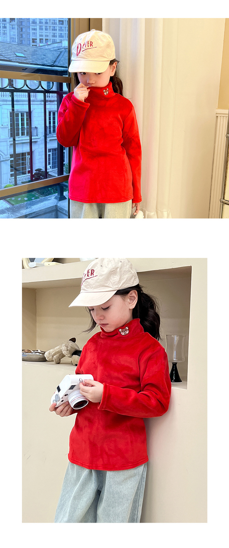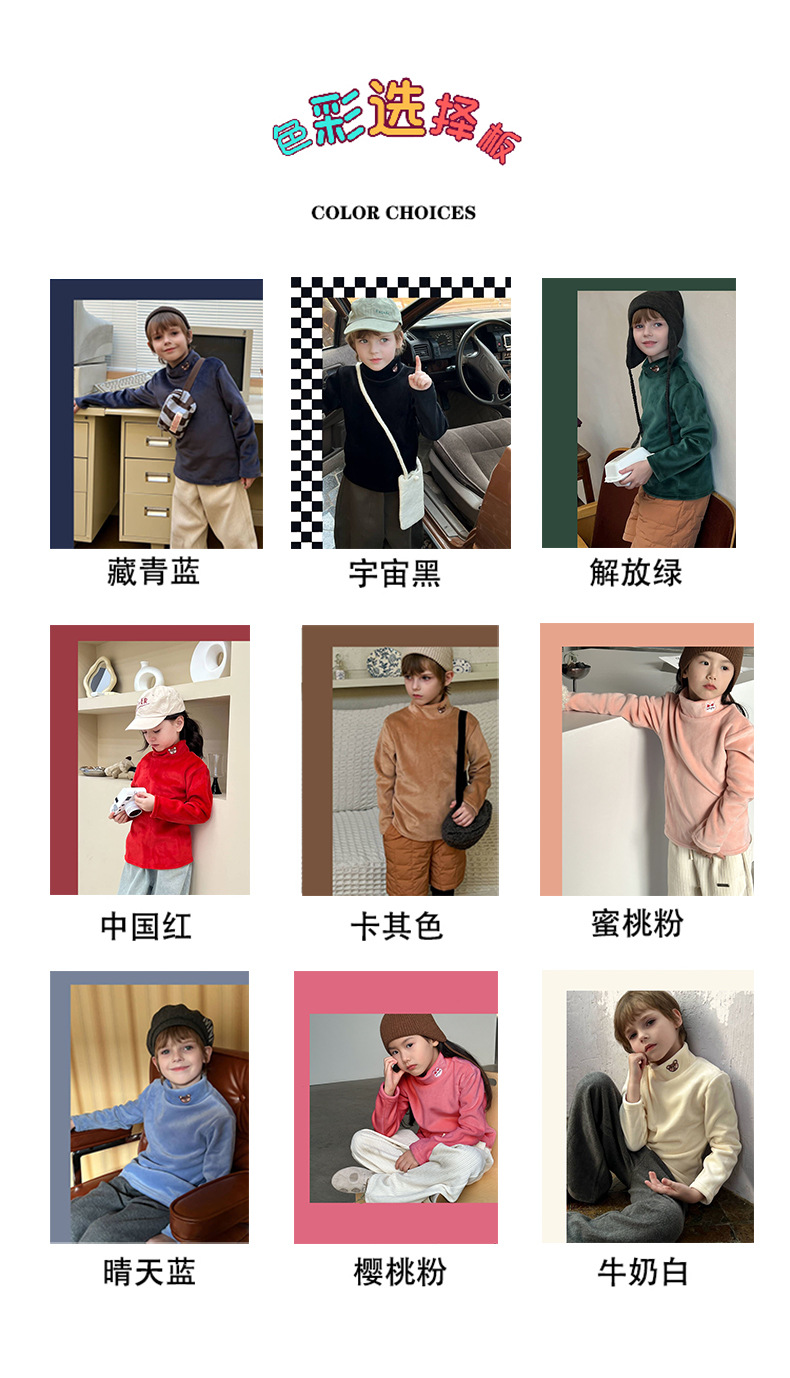 가을과 겨울 어린이 양면 벨벳 중간 칼라 따뜻한 베이스 셔츠 소년 소녀를위한 두꺼운 긴 소매 탑 T 하이 칼라 간단한 인테리어스토어 가기