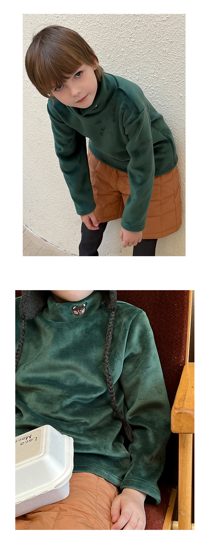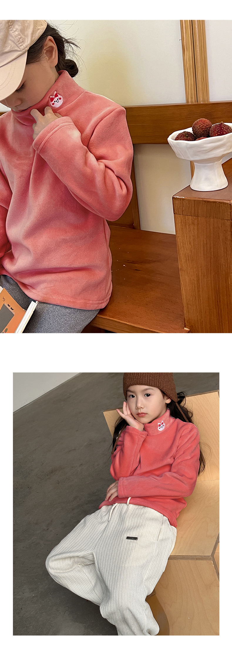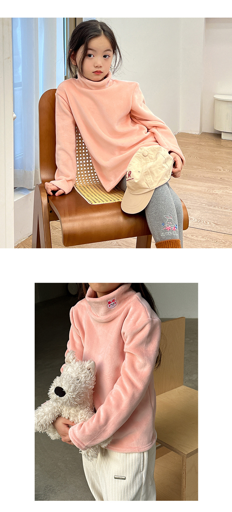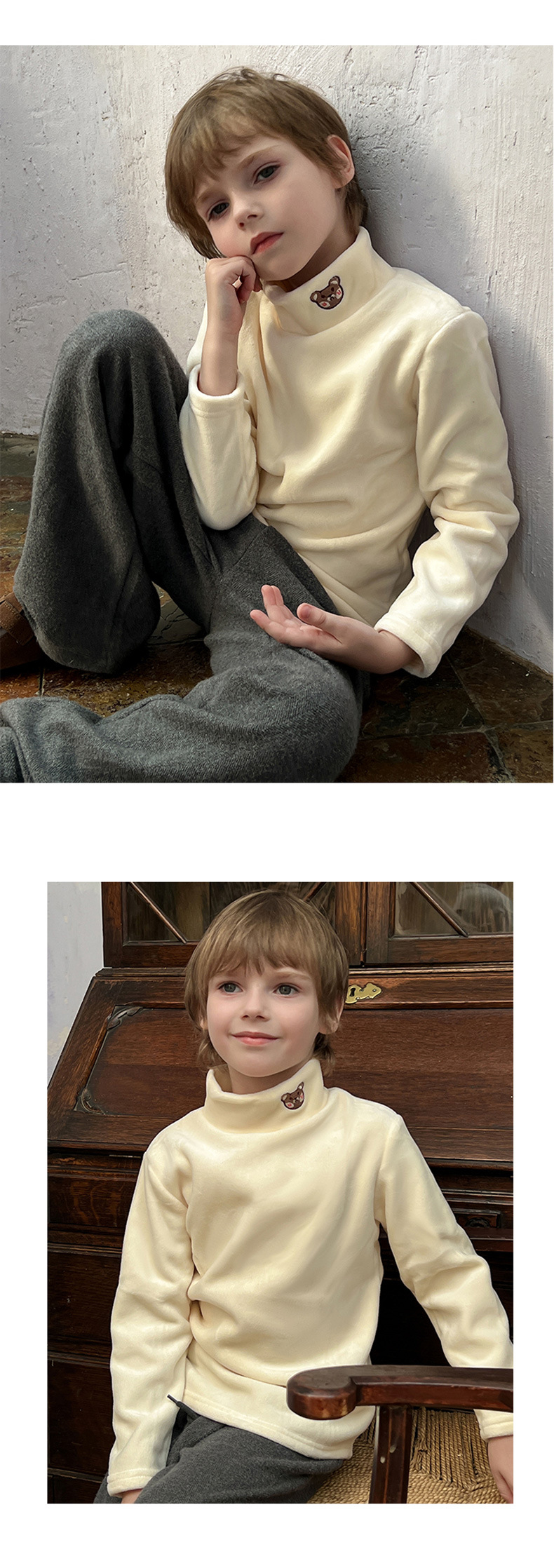 가을과 겨울 어린이 양면 벨벳 중간 칼라 따뜻한 베이스 셔츠 소년 소녀를위한 두꺼운 긴 소매 탑 T 하이 칼라 간단한 인테리어스토어 가기