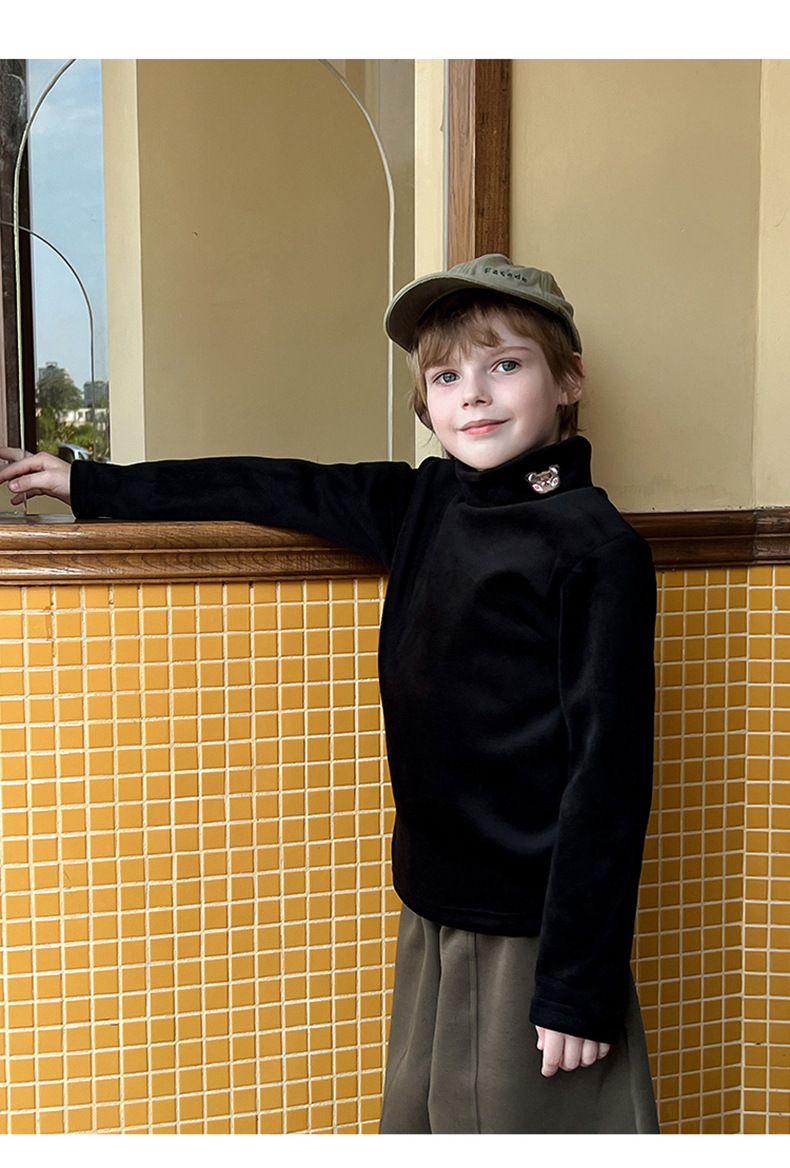 가을과 겨울 어린이 양면 벨벳 중간 칼라 따뜻한 베이스 셔츠 소년 소녀를위한 두꺼운 긴 소매 탑 T 하이 칼라 간단한 인테리어