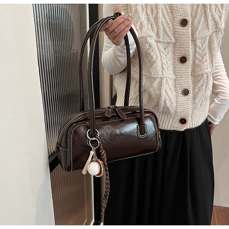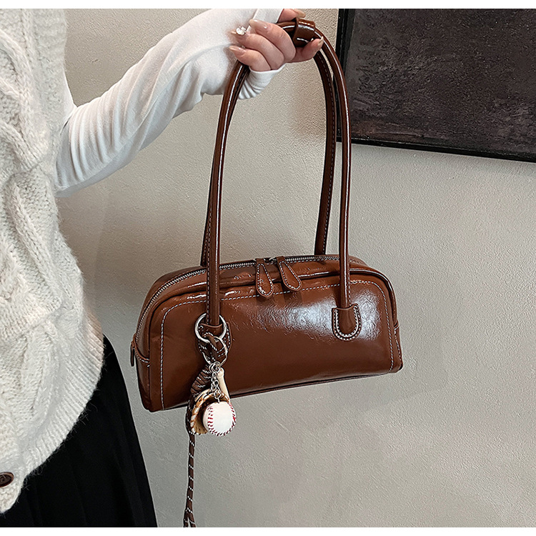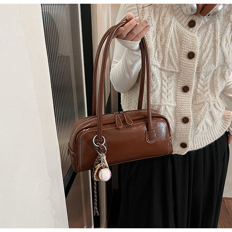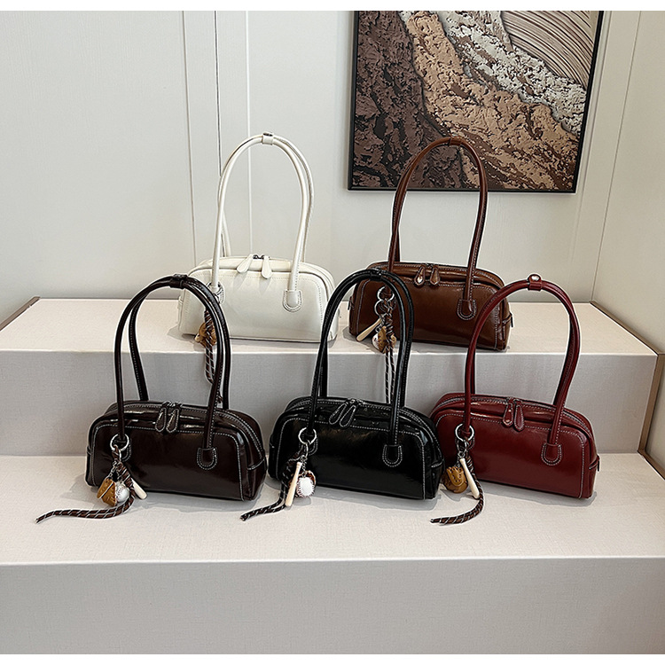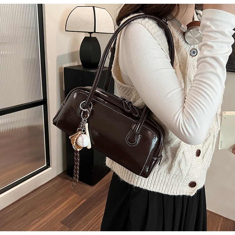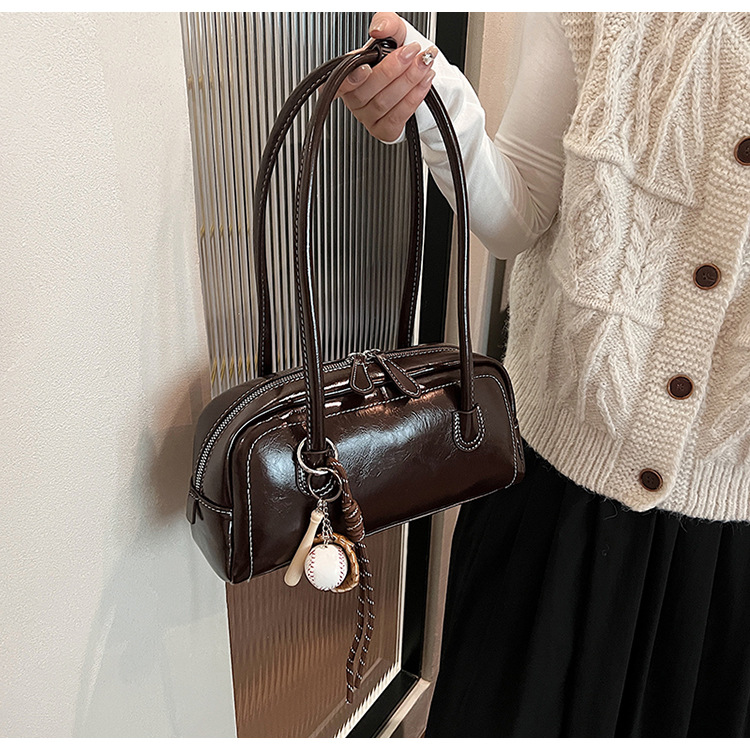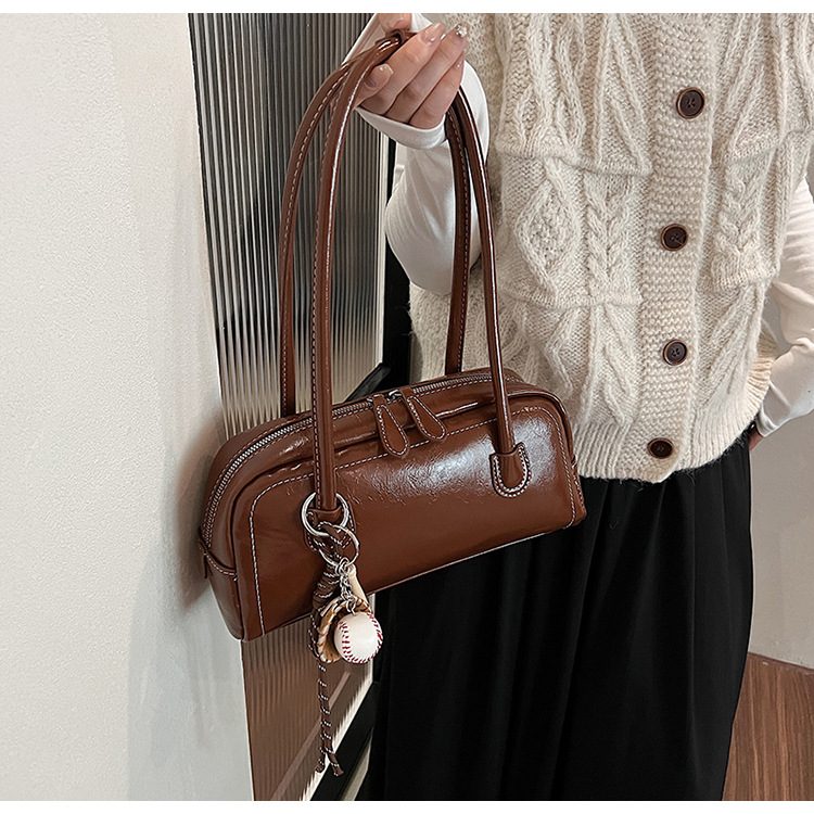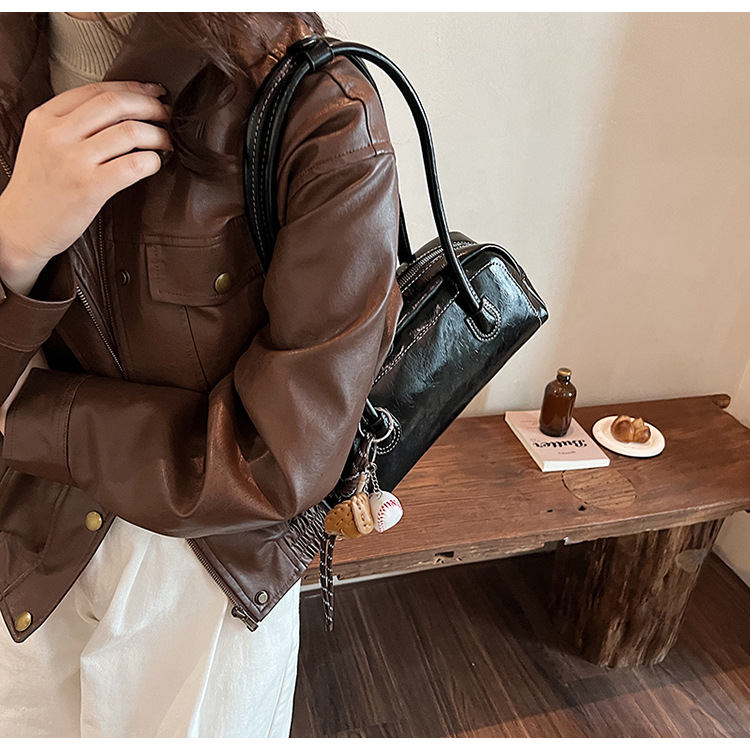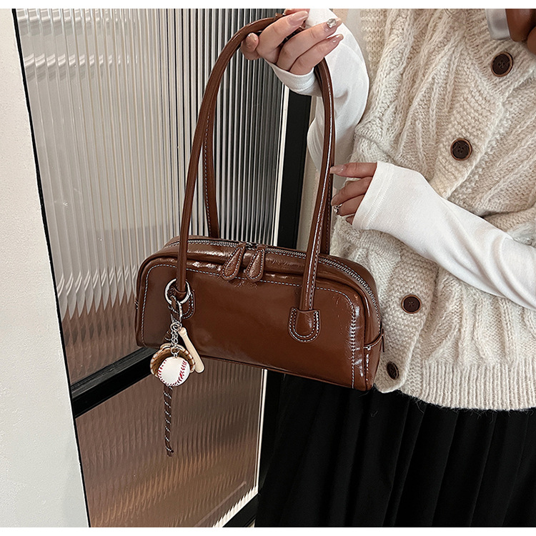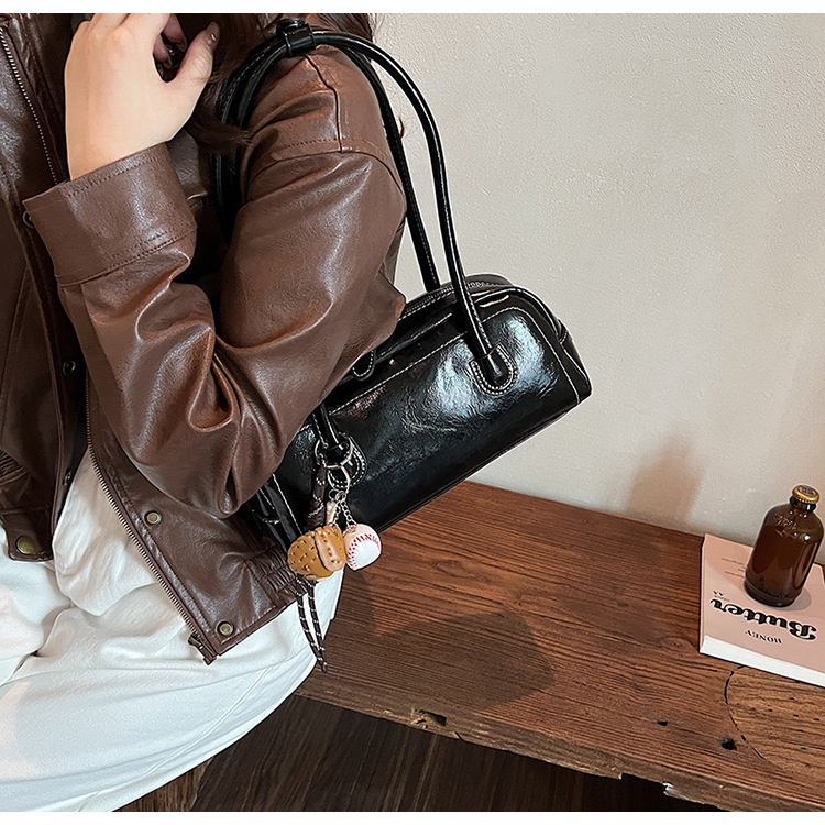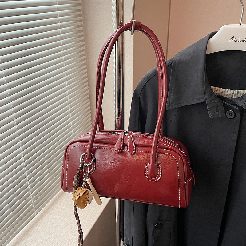 국경 간 틈새 레트로 부드러운 가죽 빨간 가방 2024 새로운 오토바이 뜨거운 소녀 어깨 가방 휴대용 볼링 가방스토어 가기