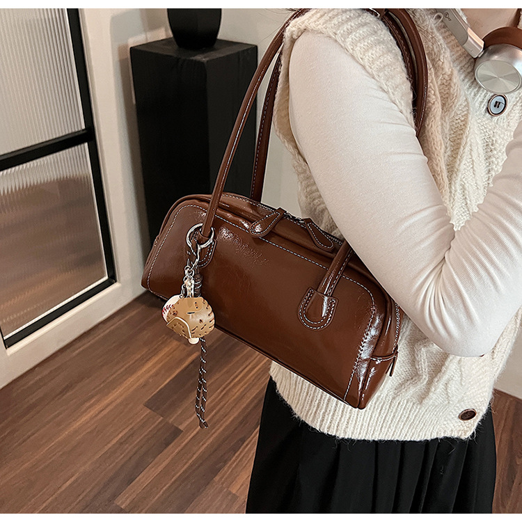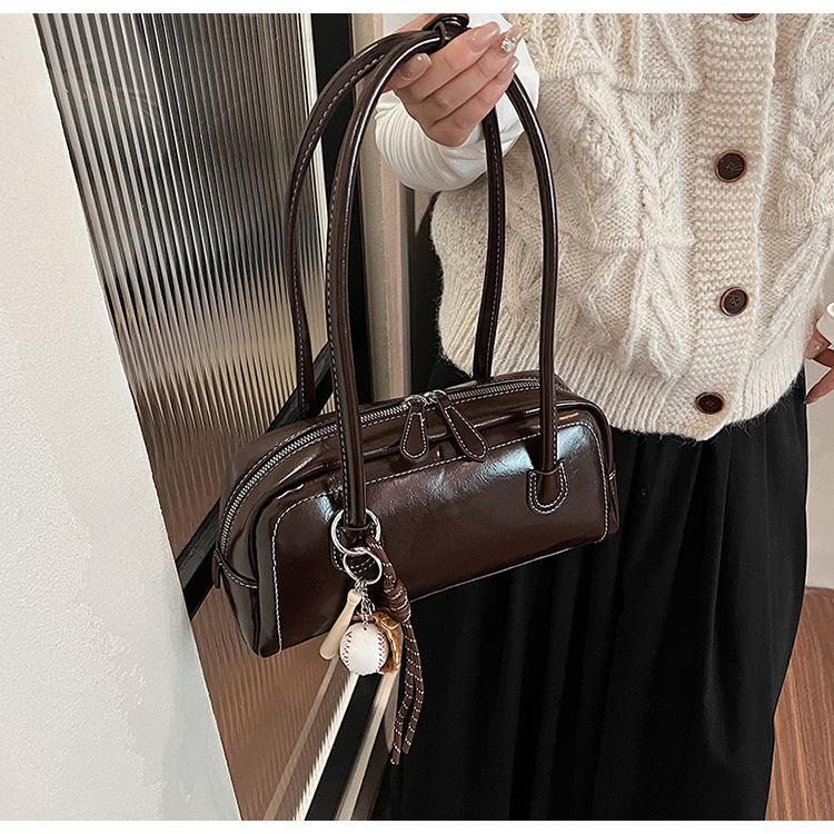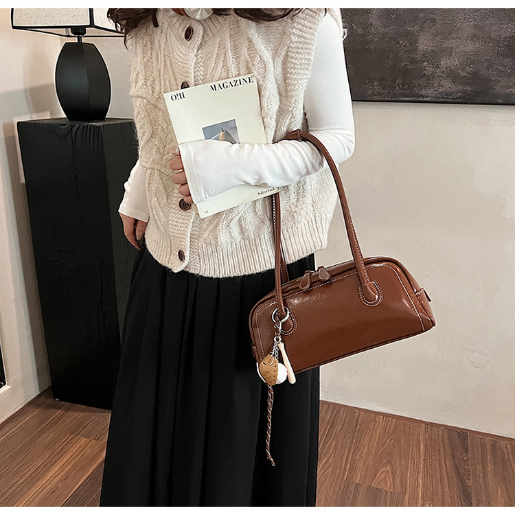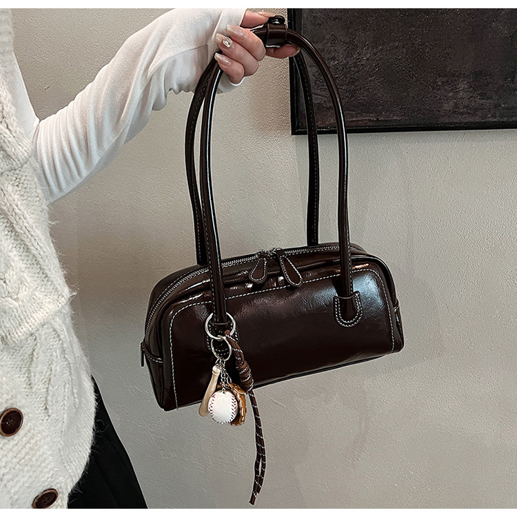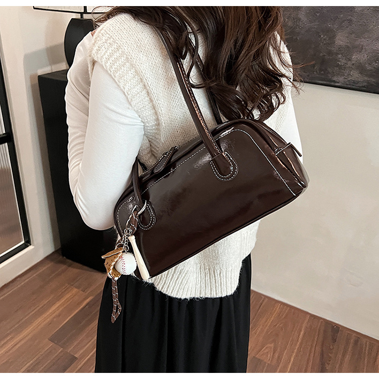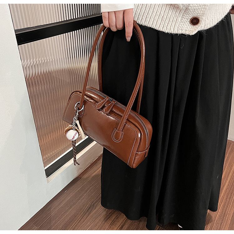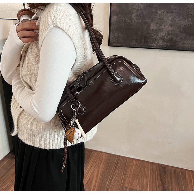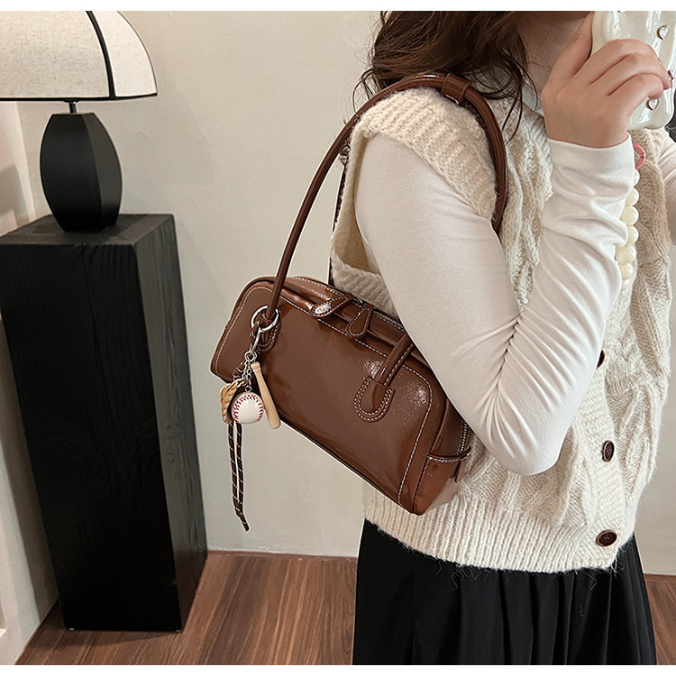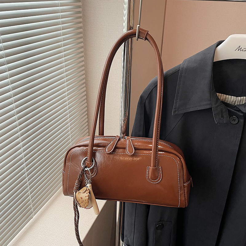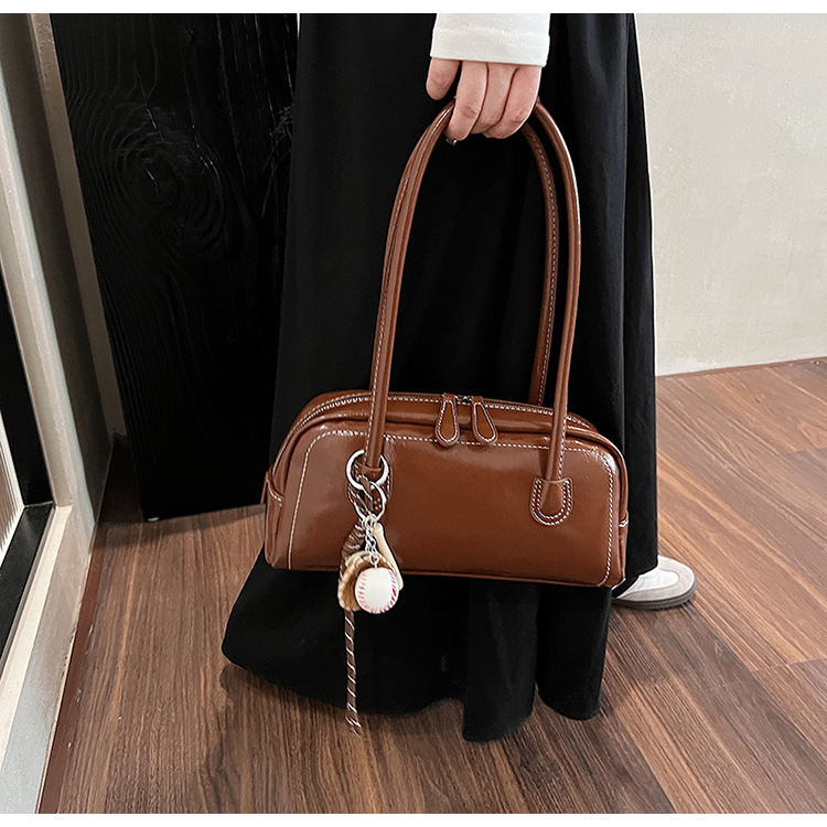국경 간 틈새 레트로 부드러운 가죽 빨간 가방 2024 새로운 오토바이 뜨거운 소녀 어깨 가방 휴대용 볼링 가방스토어 가기