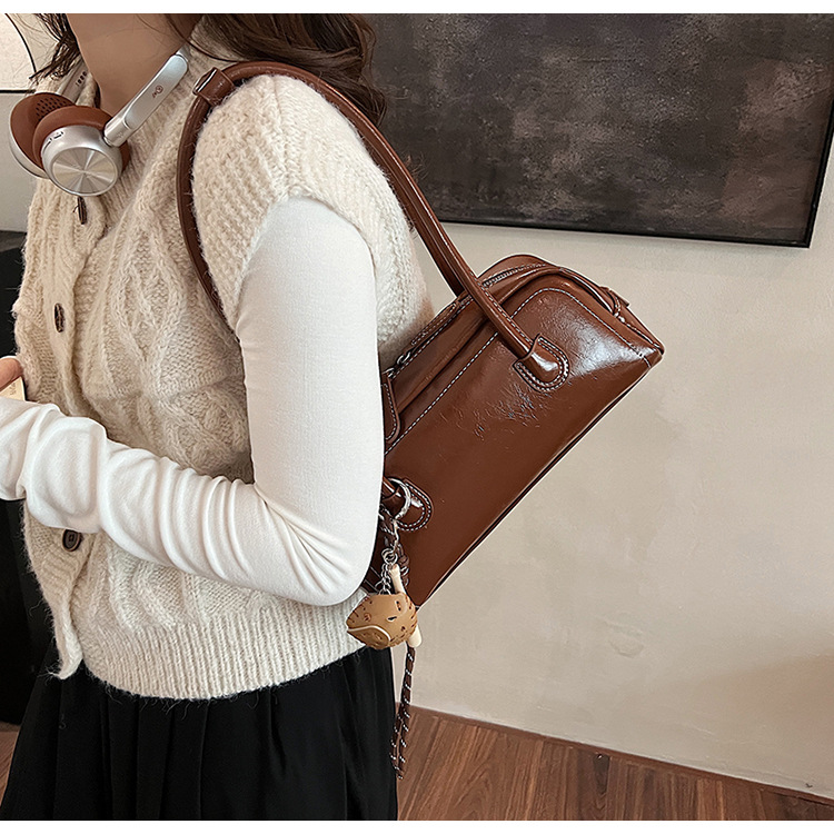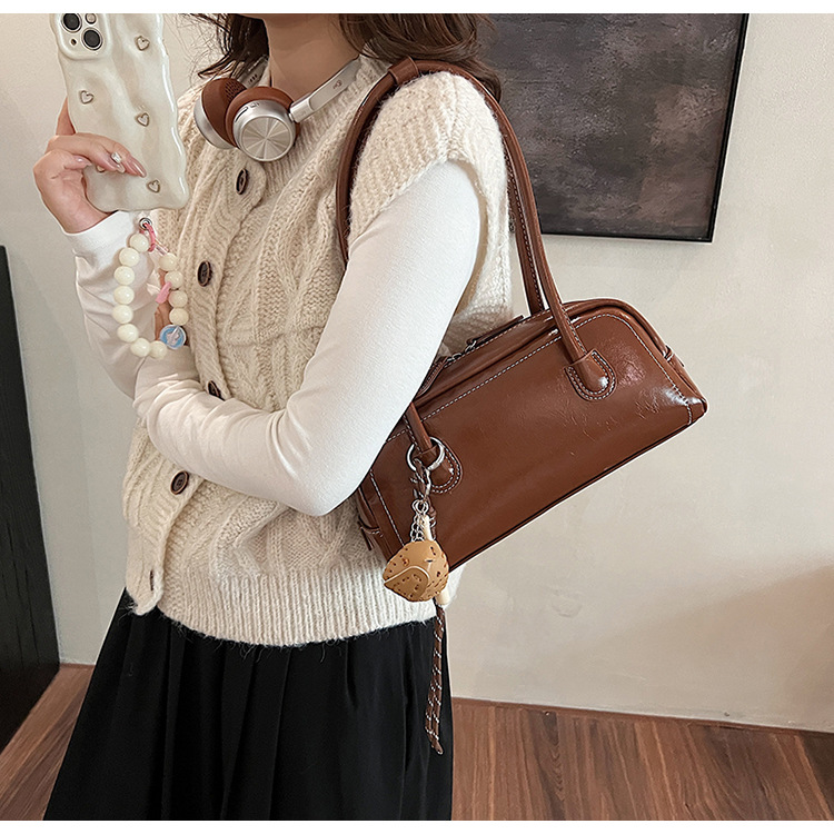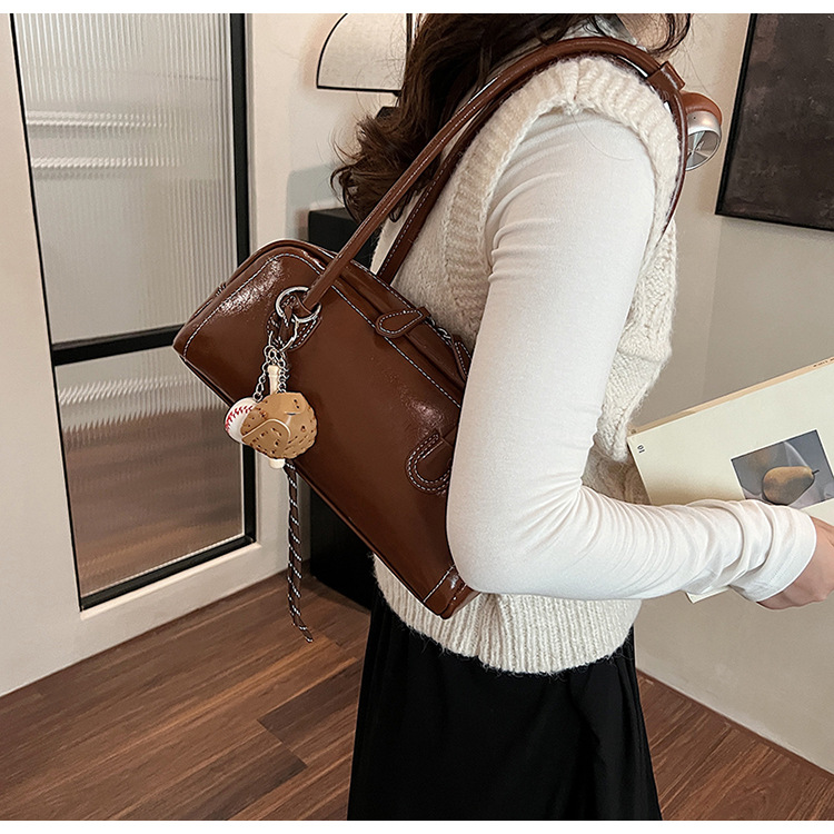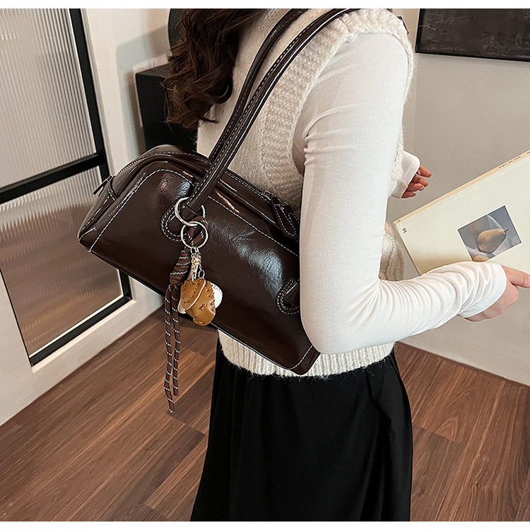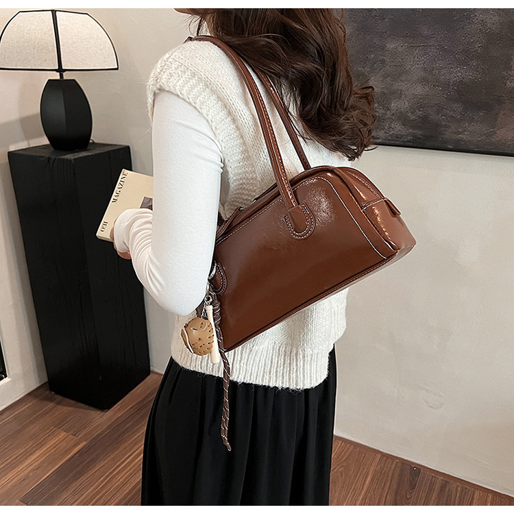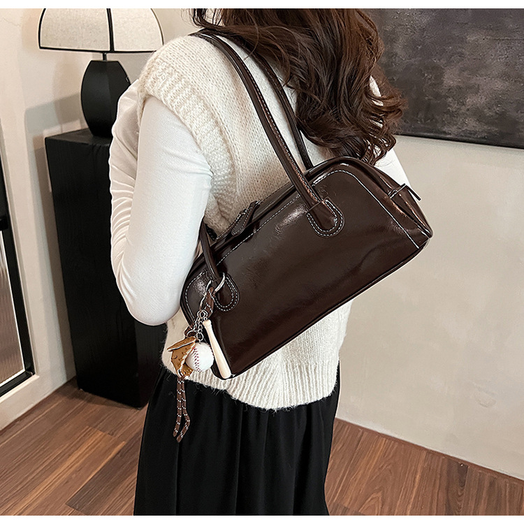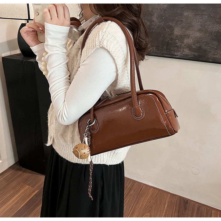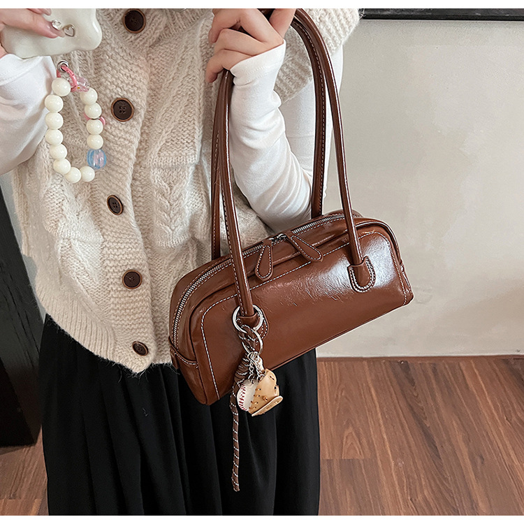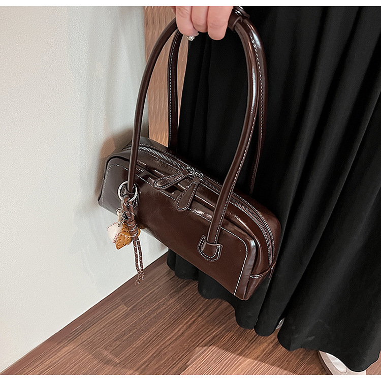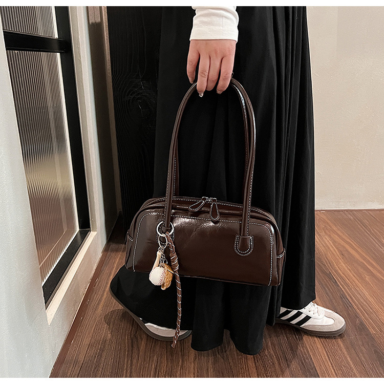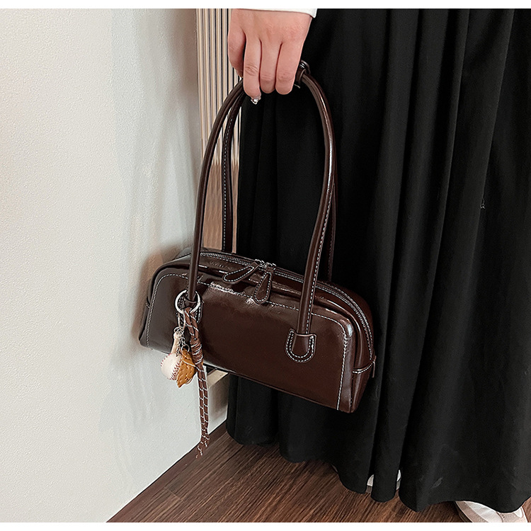 국경 간 틈새 레트로 부드러운 가죽 빨간 가방 2024 새로운 오토바이 뜨거운 소녀 어깨 가방 휴대용 볼링 가방스토어 가기