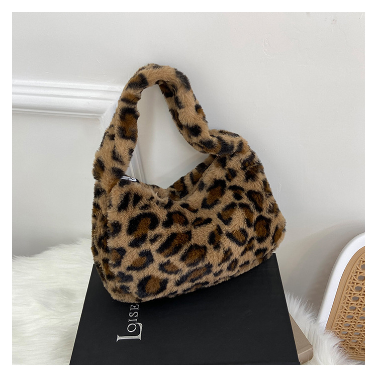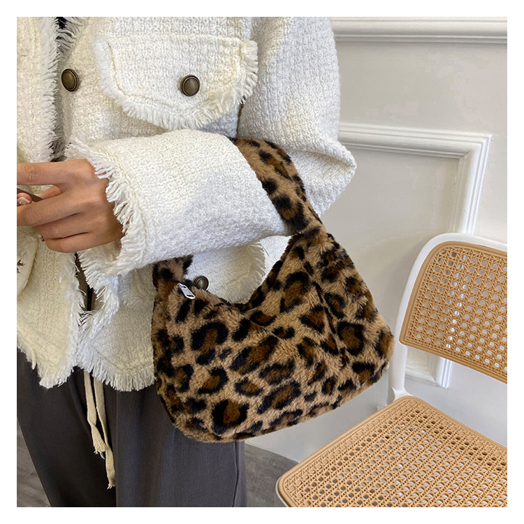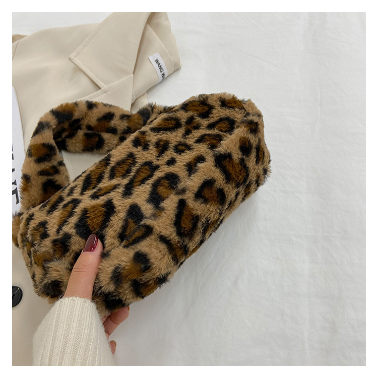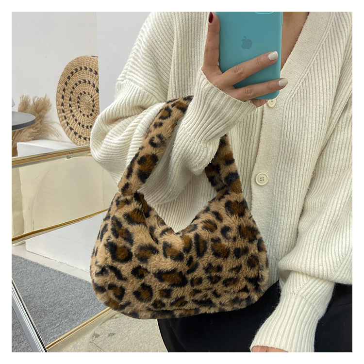 레오파드 봉제 여성 가방 가을과 겨울 새로운 패션 원 숄더 언더암 가방 휴대용 마오 마오 가방 핸드백 핸드백스토어 가기