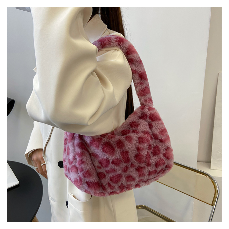 레오파드 봉제 여성 가방 가을과 겨울 새로운 패션 원 숄더 언더암 가방 휴대용 마오 마오 가방 핸드백 핸드백