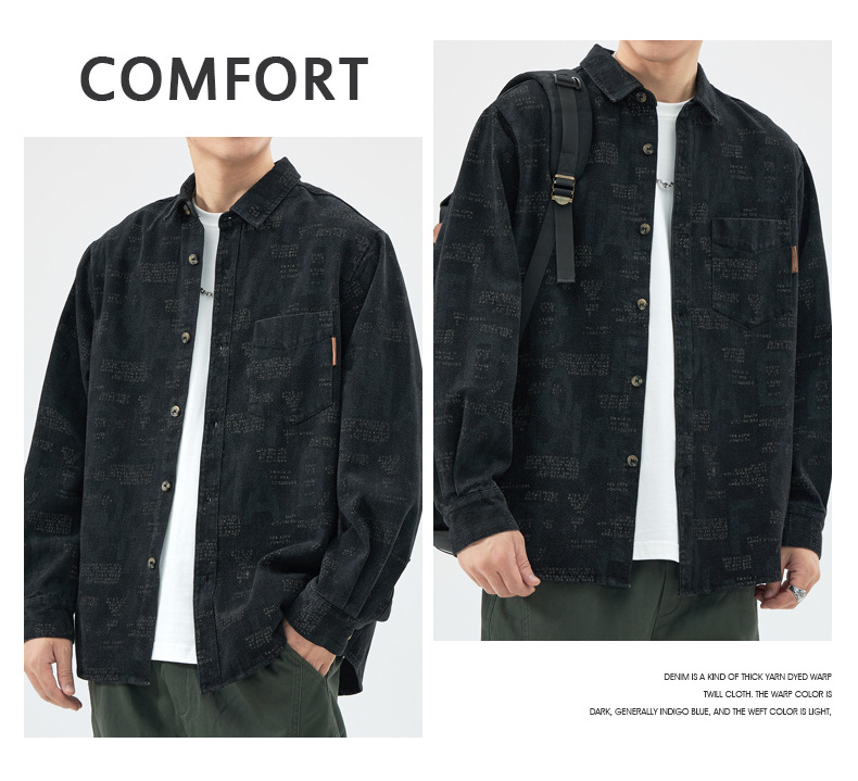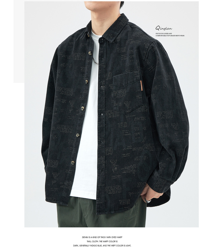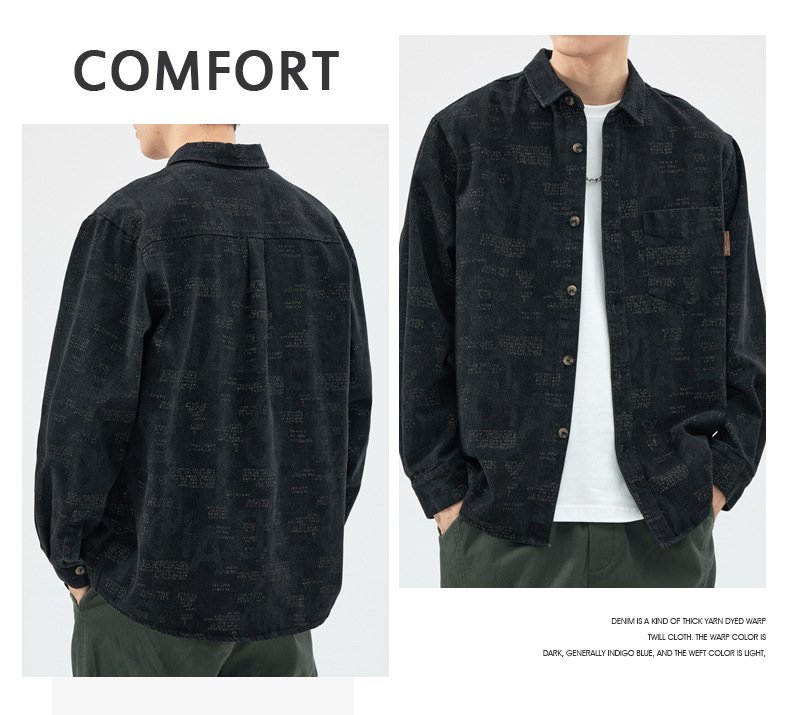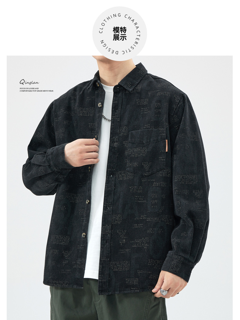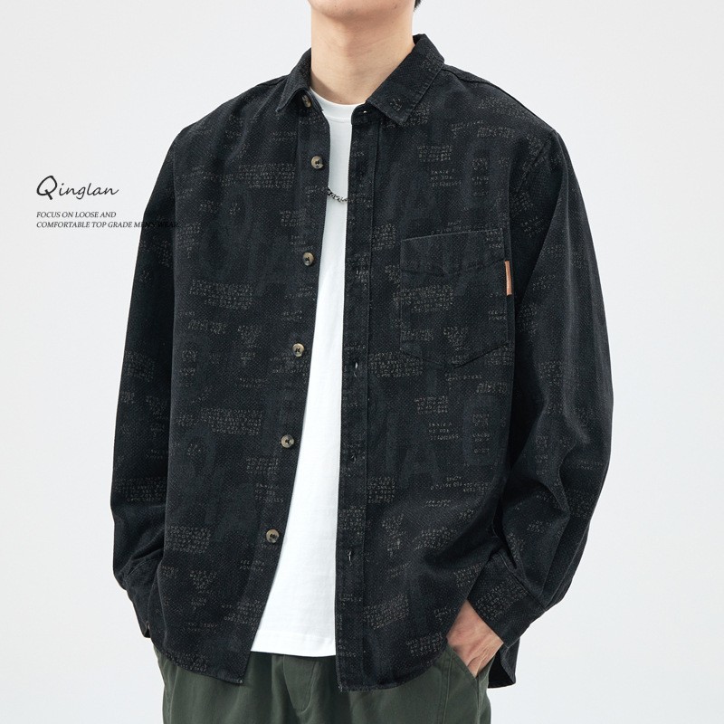 아메리칸 스타일 레트로 긴팔 셔츠 남자의 봄과 가을 패션 브랜드 느슨한 플러스 사이즈 셔츠 씻기 올매치 인쇄 캐주얼 자켓스토어 가기
