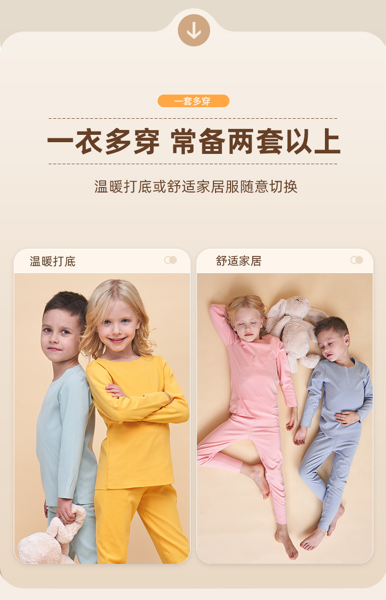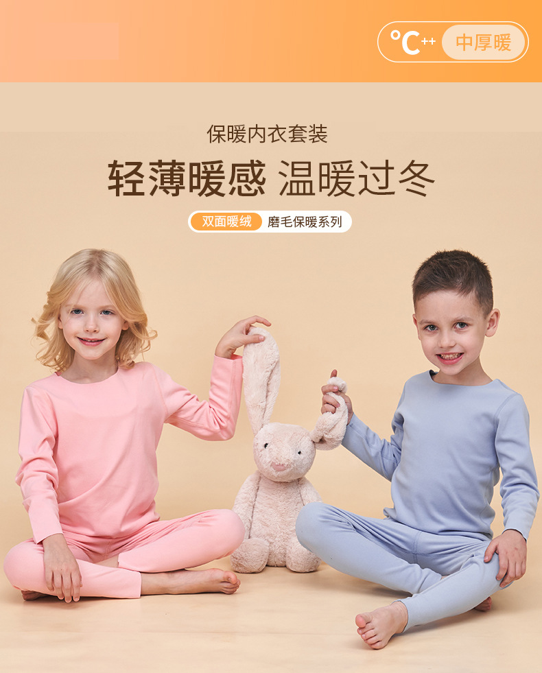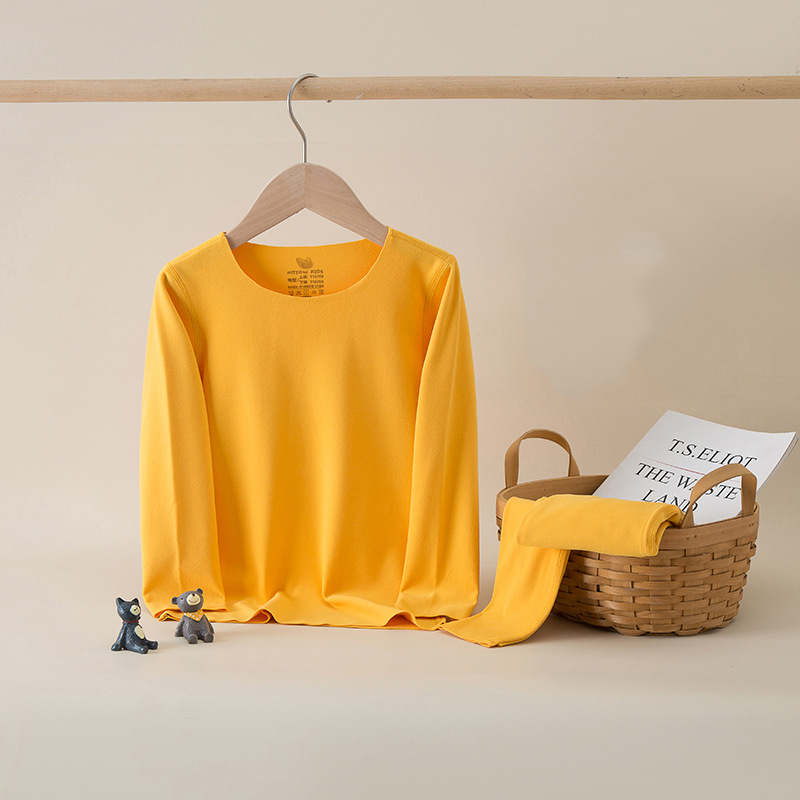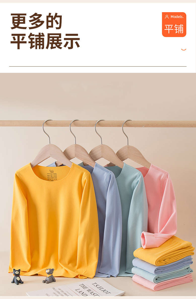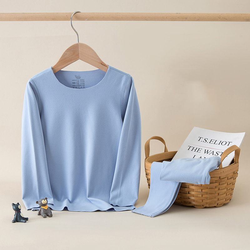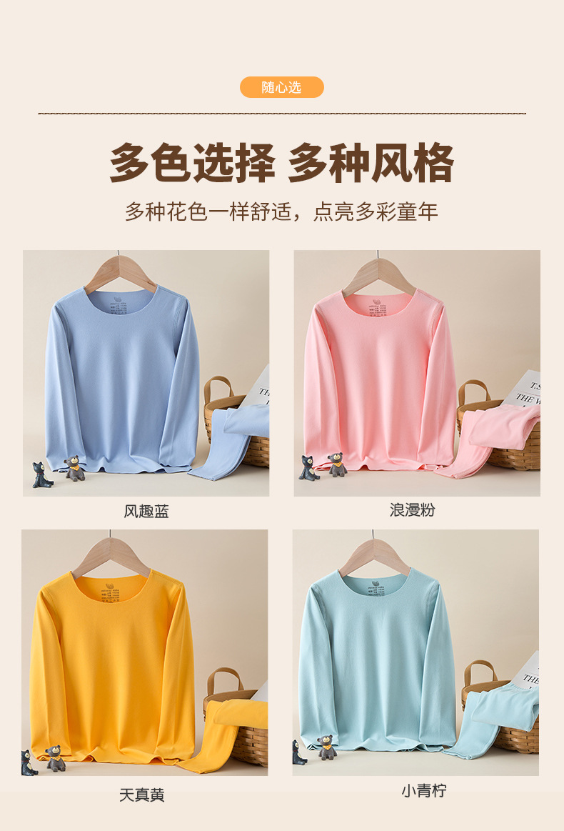 2024 가을, 겨울 어린이 원활한 기모 따뜻한 기본 속옷 세트 소년과 소녀 솔리드 컬러 라운드 넥 홈웨어 잠옷스토어 가기