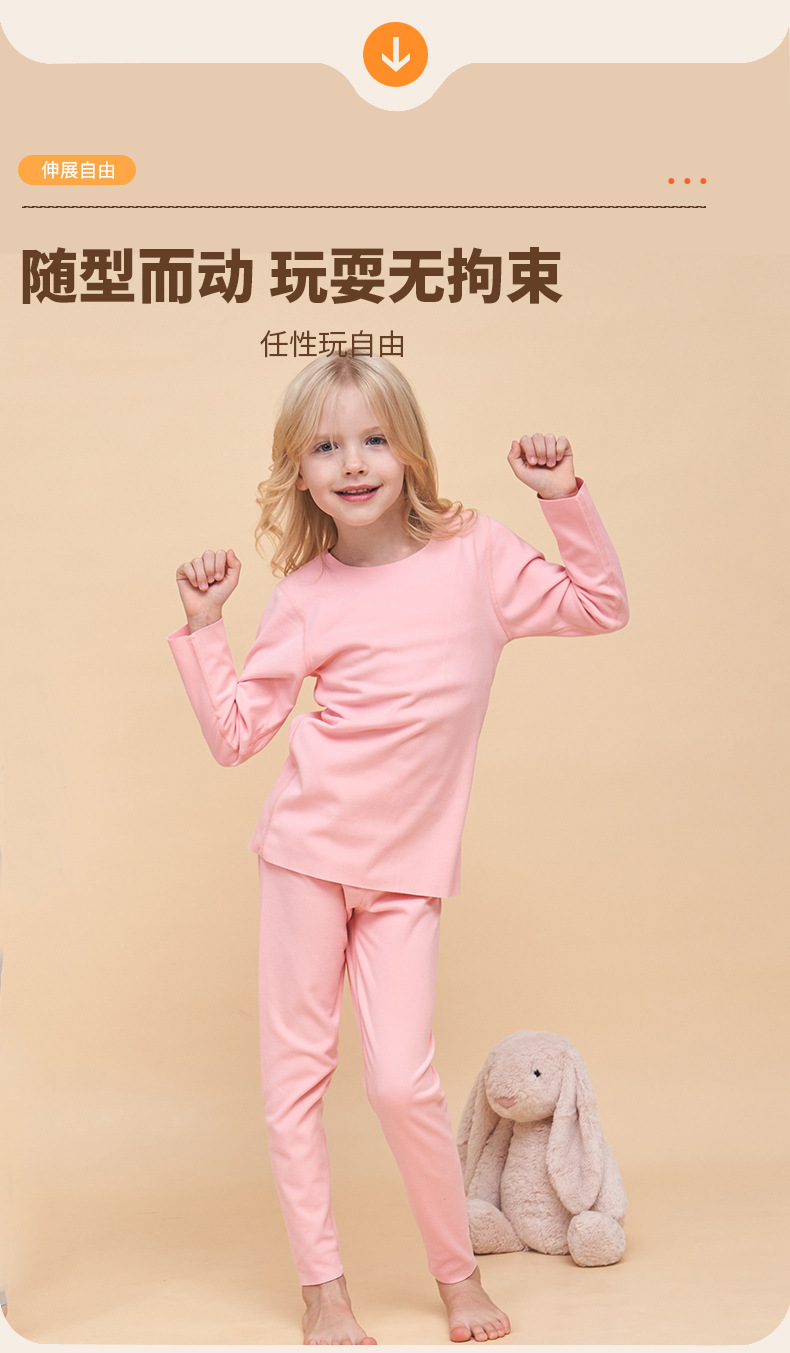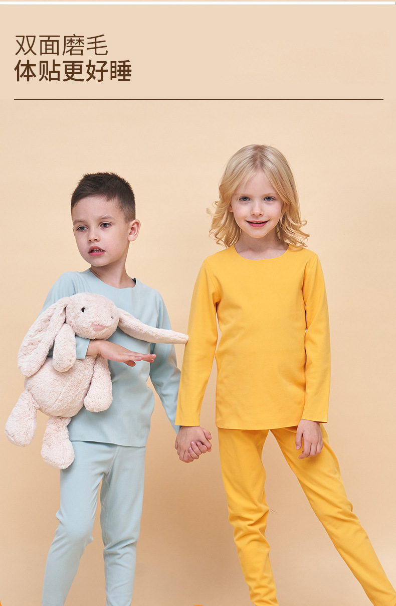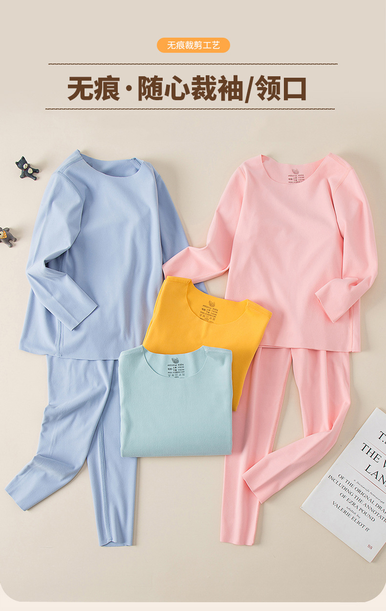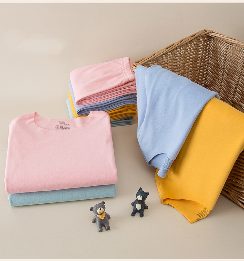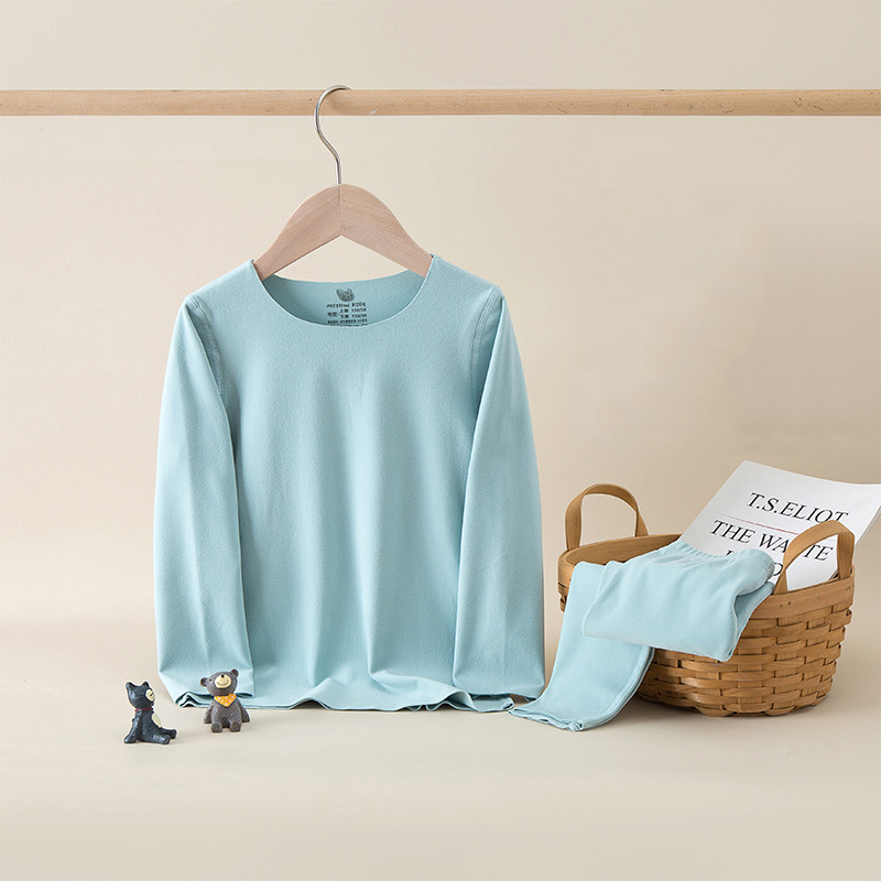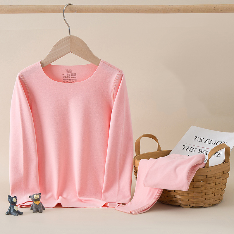 2024 가을, 겨울 어린이 원활한 기모 따뜻한 기본 속옷 세트 소년과 소녀 솔리드 컬러 라운드 넥 홈웨어 잠옷