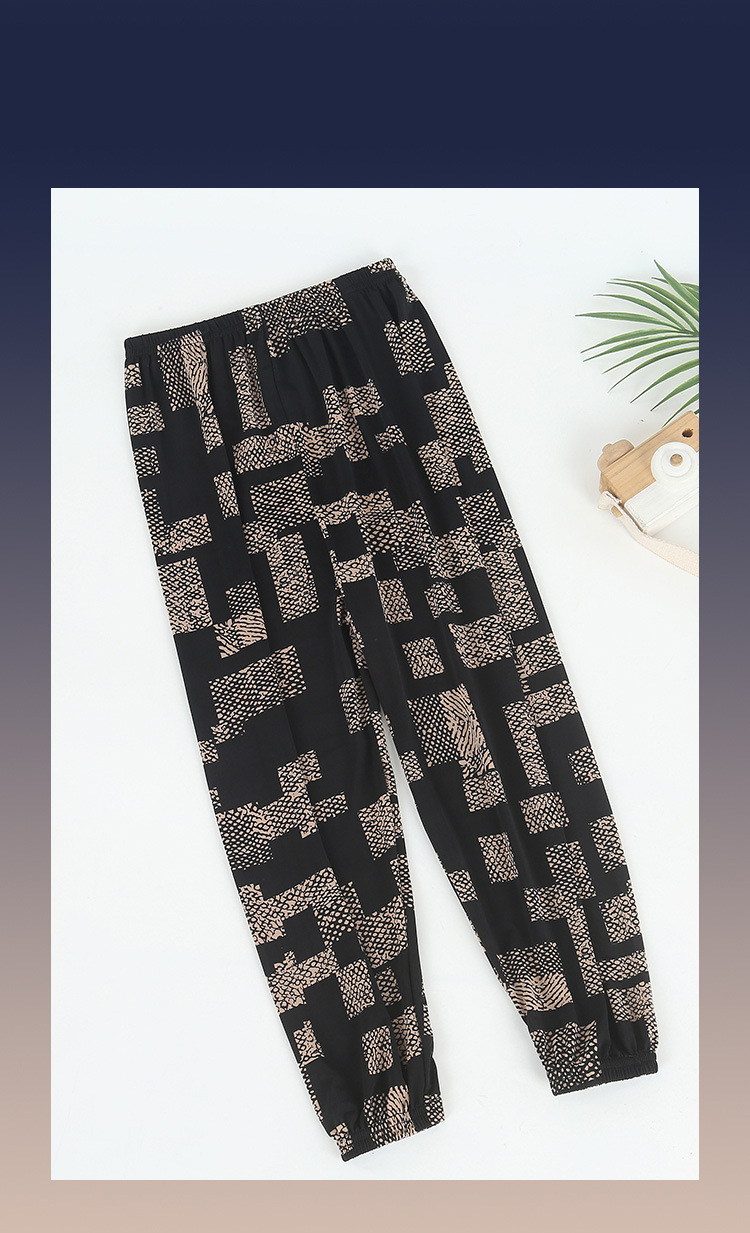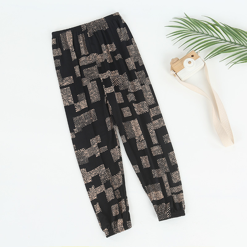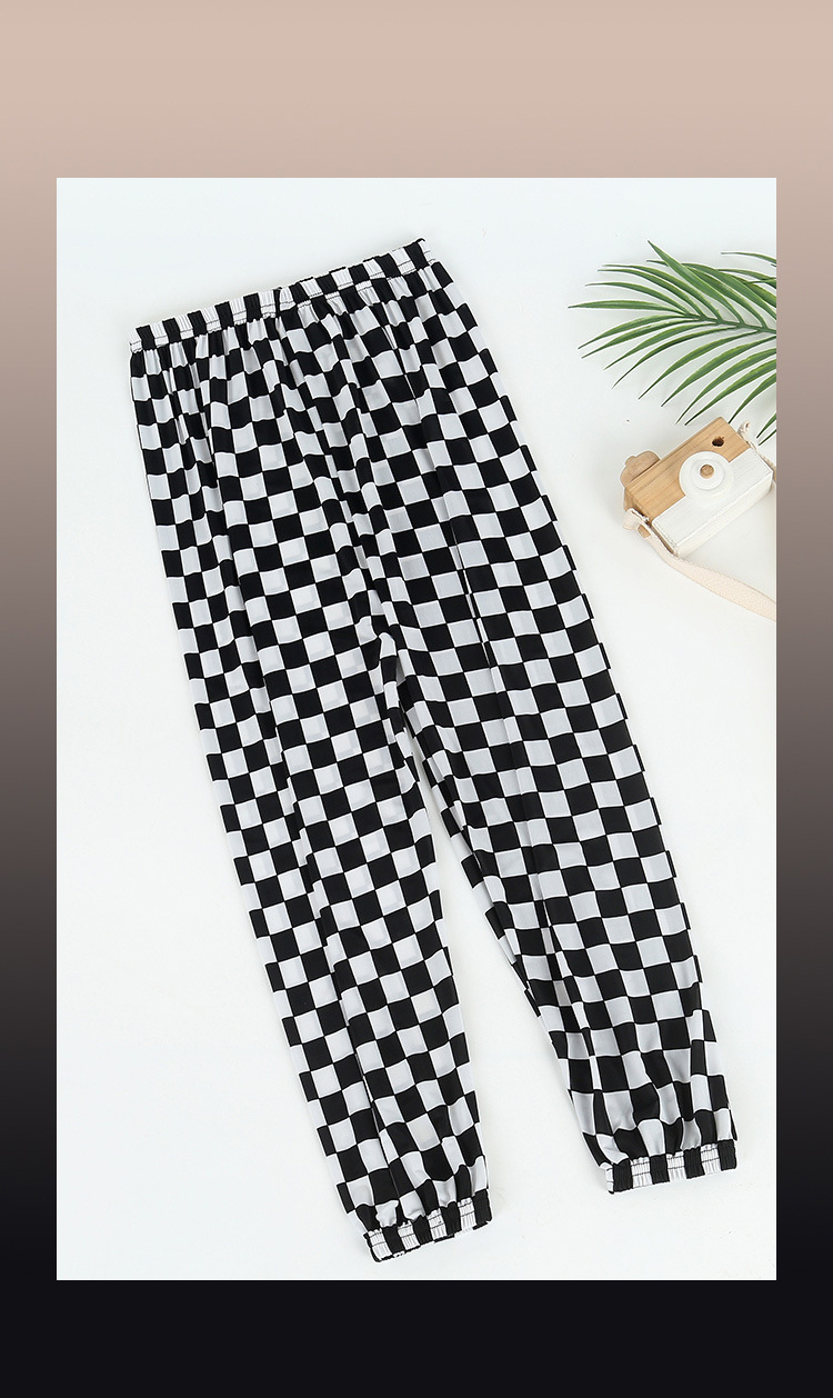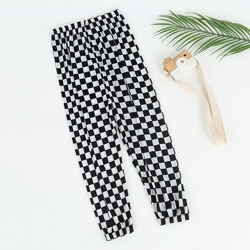 2024儿童时尚潮范格子宽松休闲裤中小男女童透气束脚防蚊家居长裤