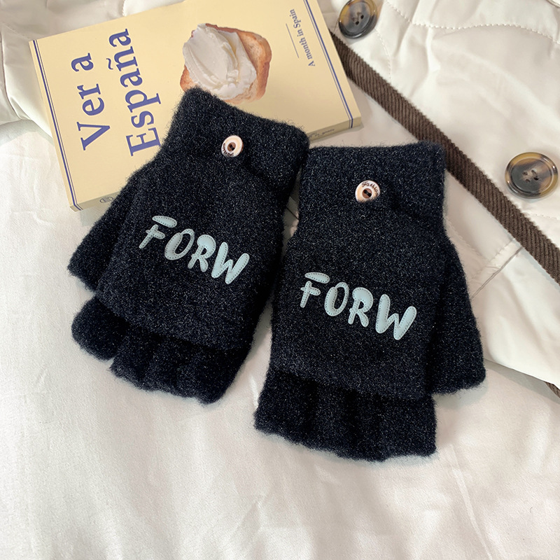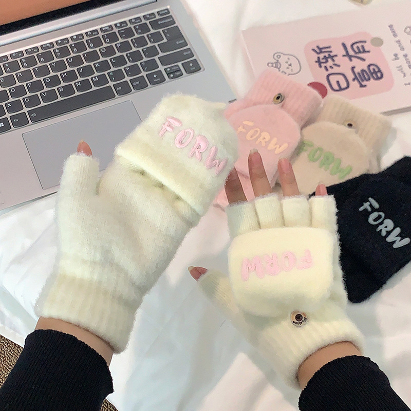 반 손가락 장갑 여성의 가을과 겨울 한국 스타일 따뜻한 귀여운 플립 손가락 노출 양모 장갑 학생 겨울 짧은 장갑
