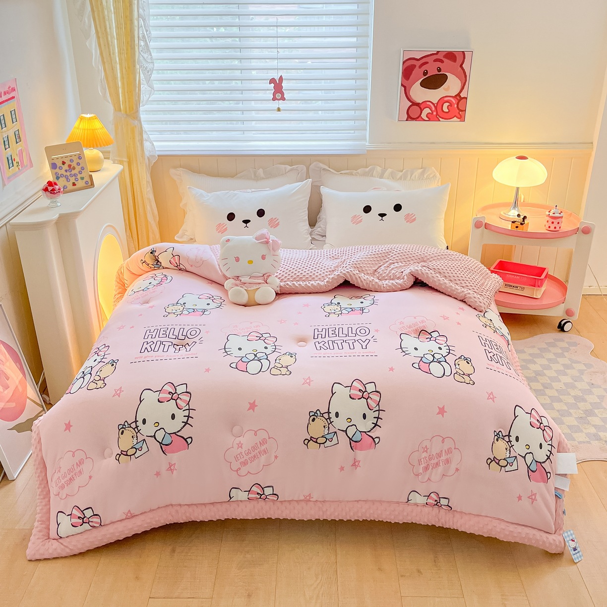 어린이 산리오 가을과 겨울 니트 콩 이불 싱글 두꺼운 겨울 이불 따뜻한 봄과 가을 이불 컴포트 이불스토어 가기