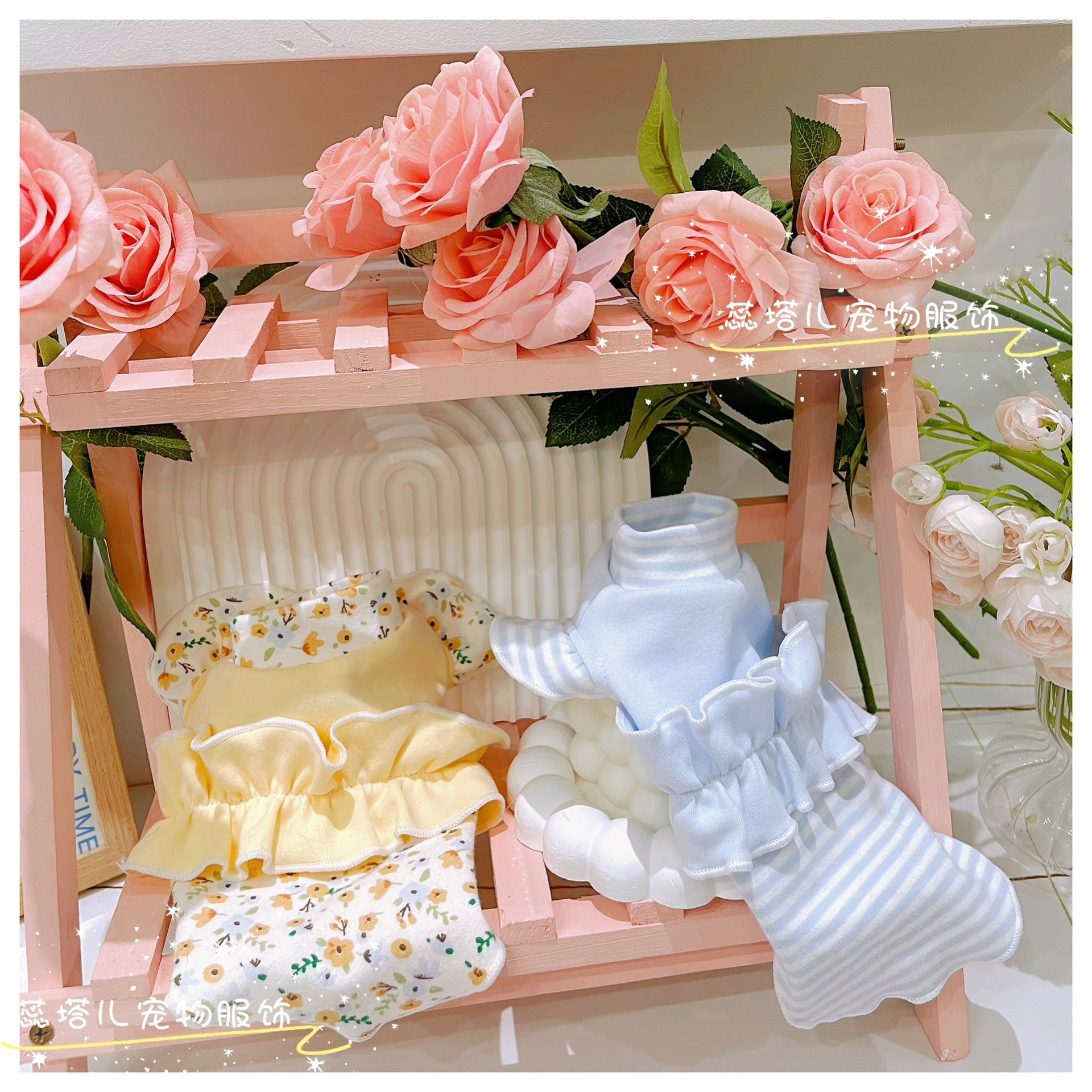 리타의 애완 동물 옷 요크셔 Marzis Shuli 아기 면 고양이 개 슬리브 베이스 셔츠 홈 비행스토어 가기