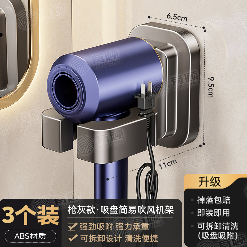 • 건그레이 흡착컵 심플 헤어드라이어 홀더 3팩