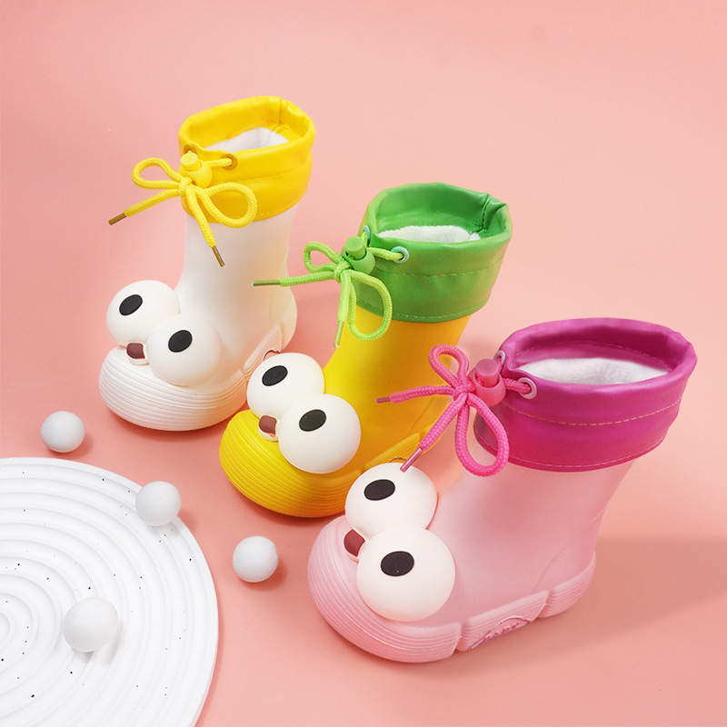 큰 눈 기모 장화 여성 만화 이동식 코튼 커버 야외 착용 어린이 물 신발 미끄럼 방지 방수 추악한 귀여운 고무 신발