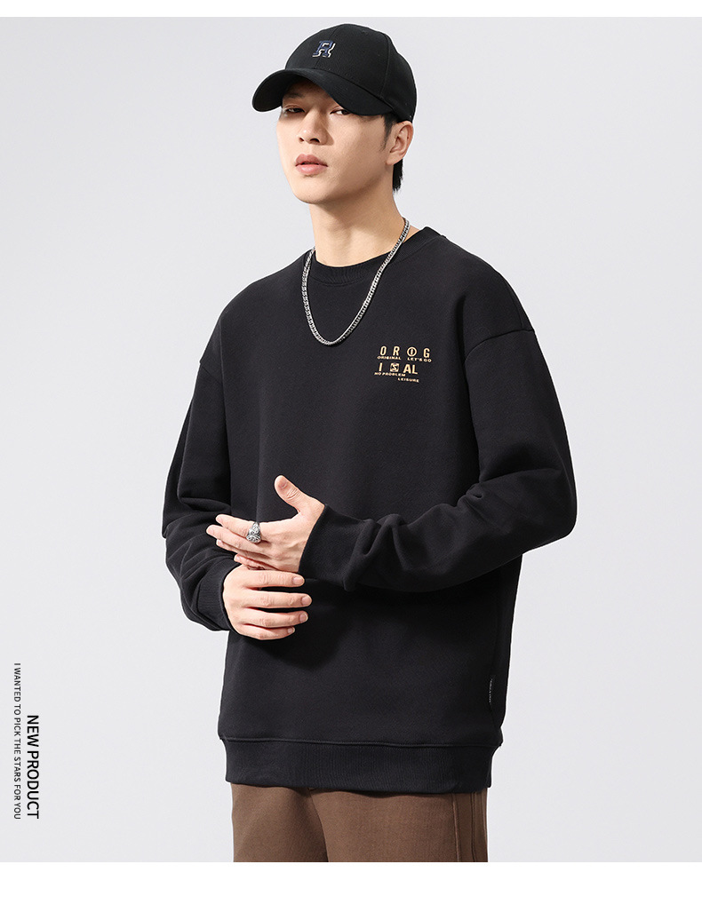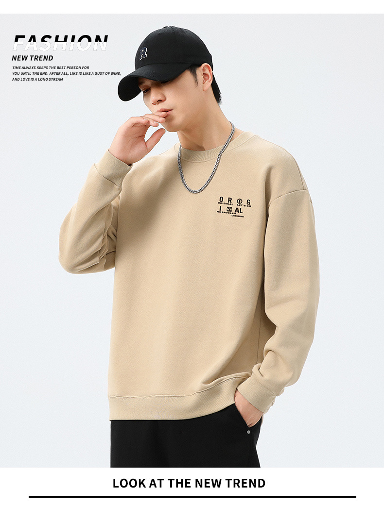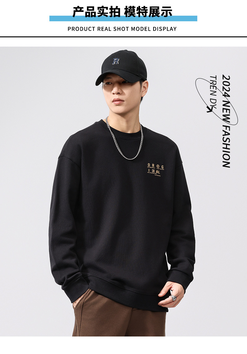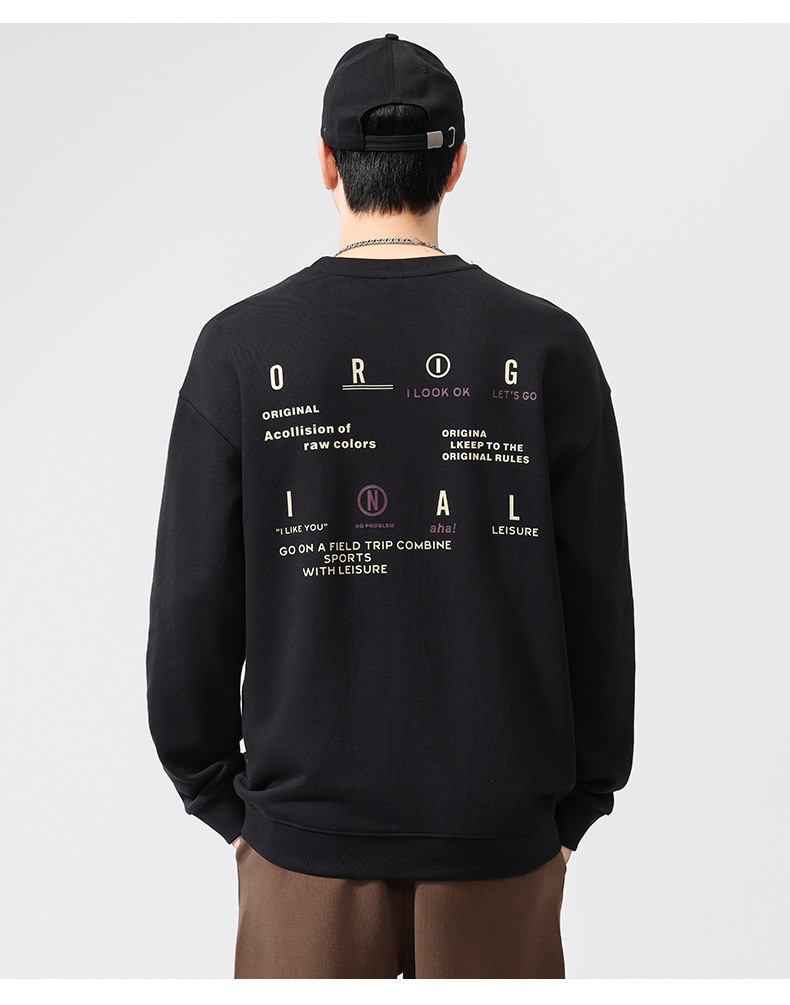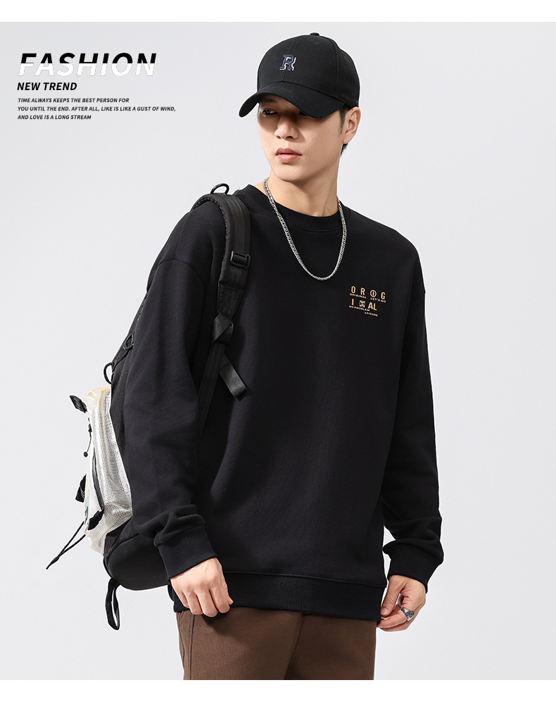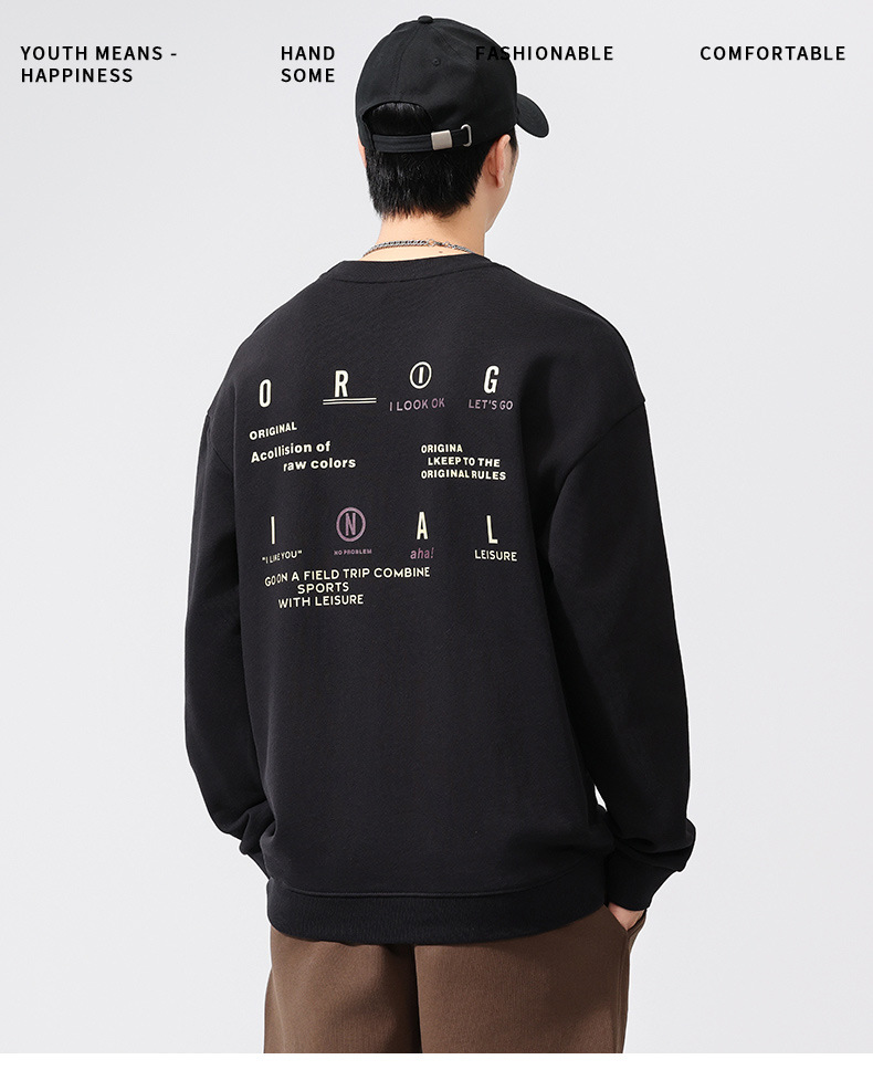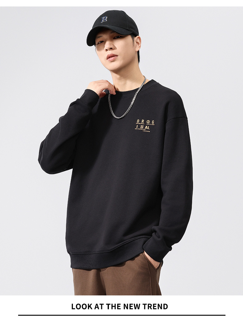 F5245 # 플러스 사이즈 남자의 가을 새로운 360G 무거운 코튼 크루 넥 착용 간단한 느슨한 인쇄 재킷 남성용스토어 가기