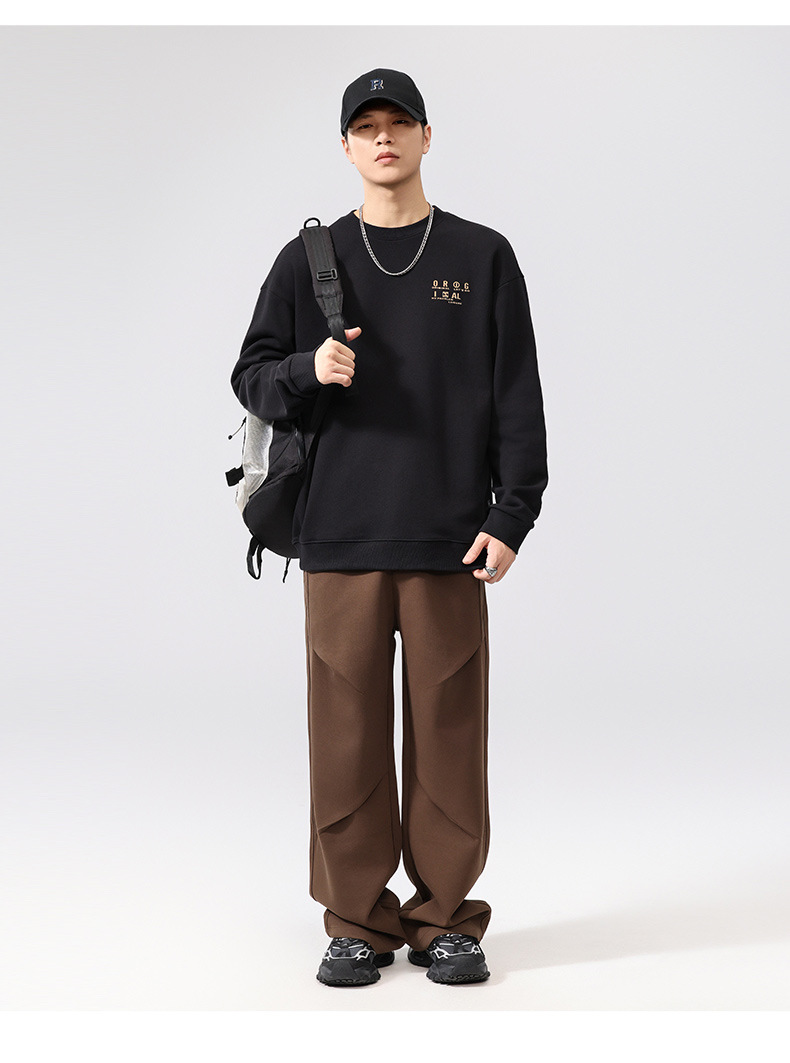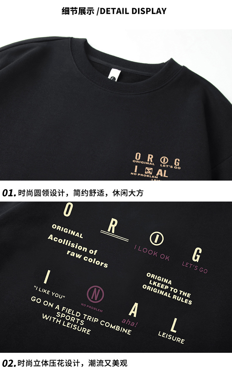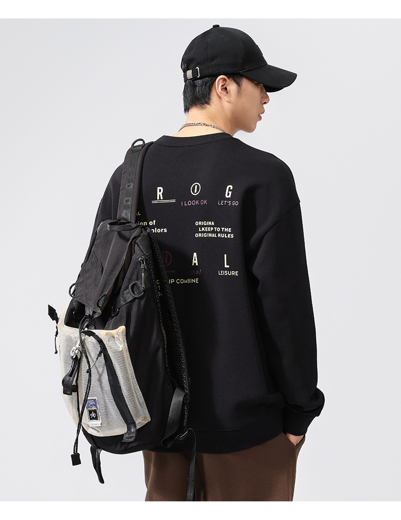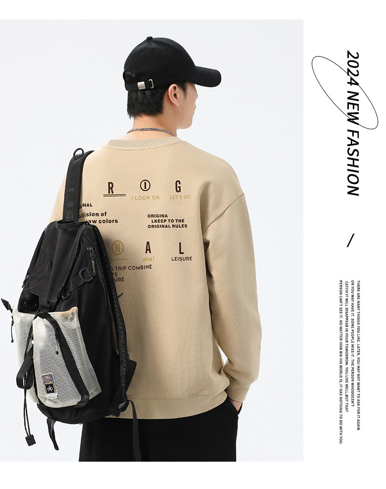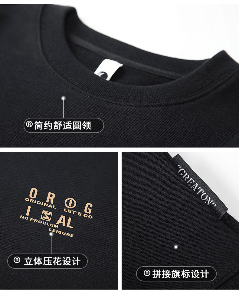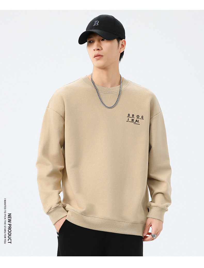 F5245 # 플러스 사이즈 남자의 가을 새로운 360G 무거운 코튼 크루 넥 착용 간단한 느슨한 인쇄 재킷 남성용스토어 가기