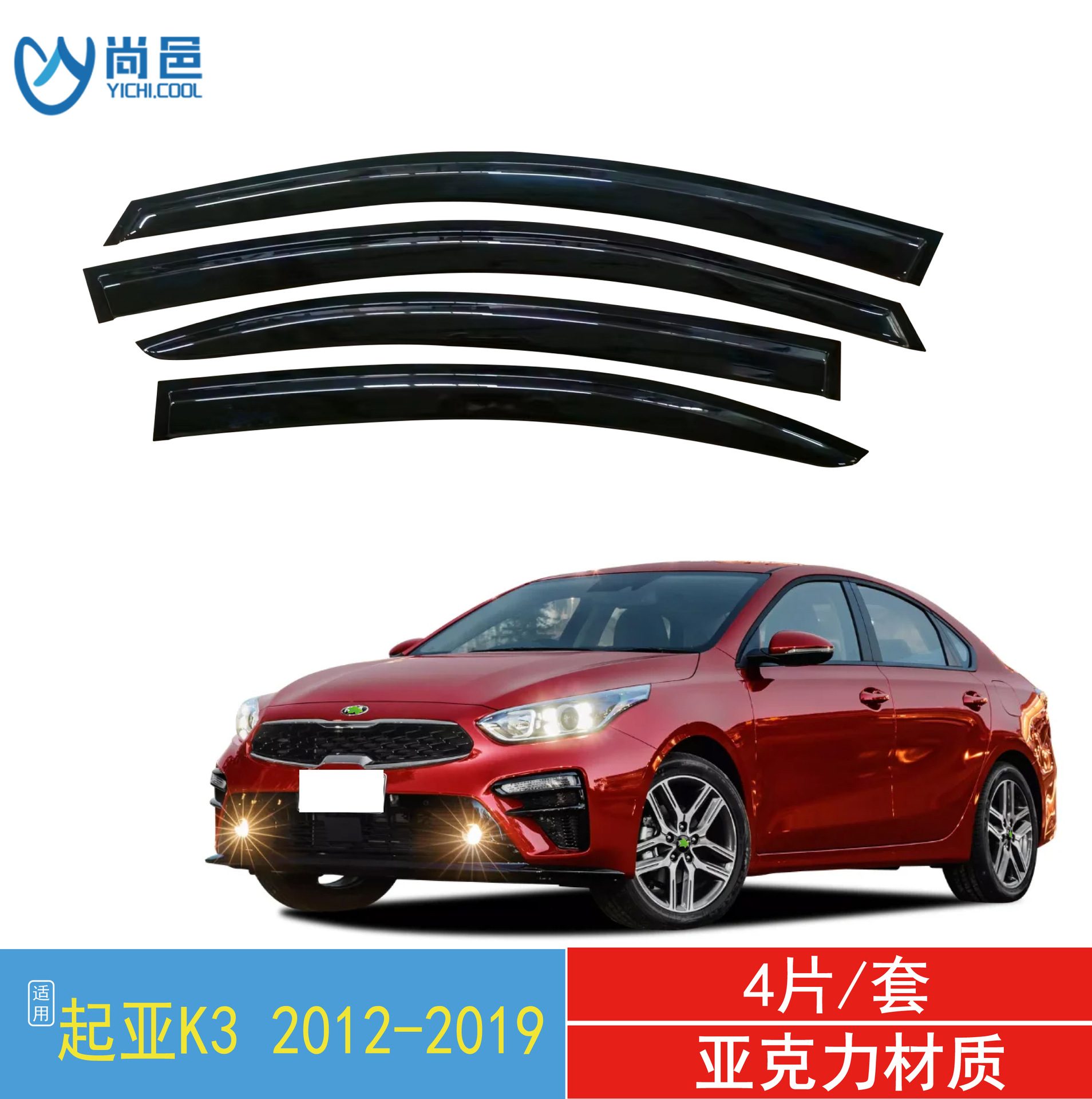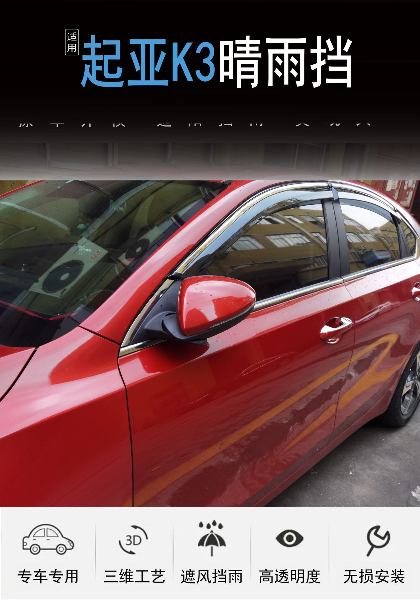 2012-2019 KIA 기아 K3 창 커버 비 검은 아크릴 자동차 비 방패의 국경 응용