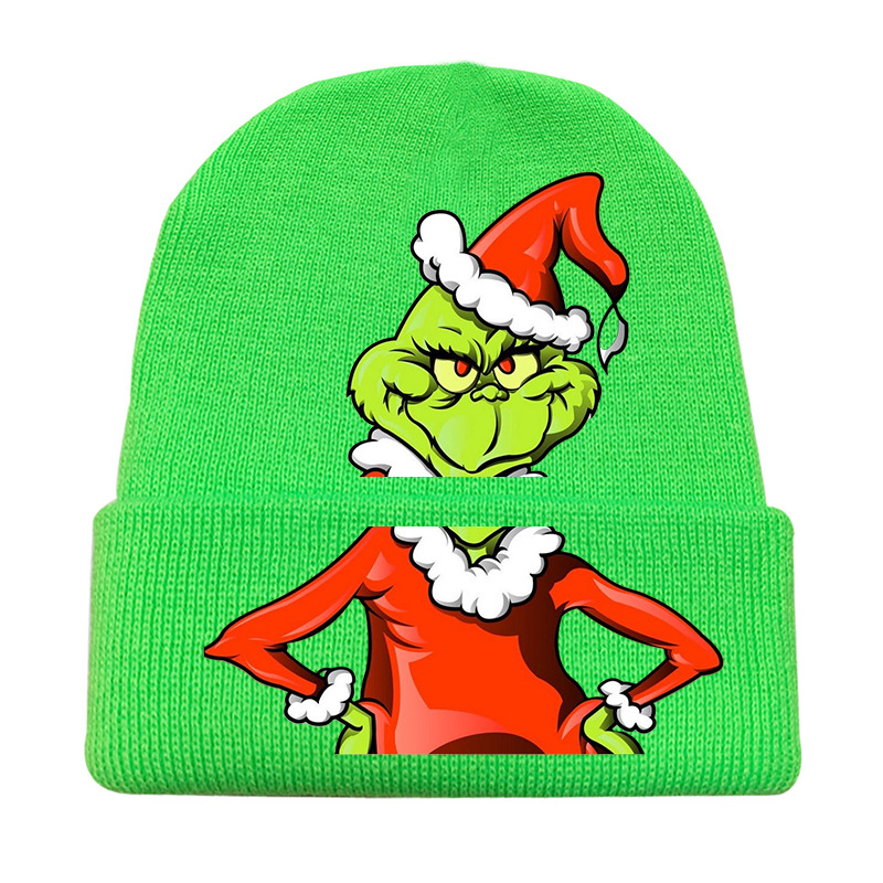 2024 새로운 크리스마스 그린 헤어 이상한 그린 치 모자 코스프레 남성과 여성의 따뜻한 니트 모자 크로스 테두리스토어 가기