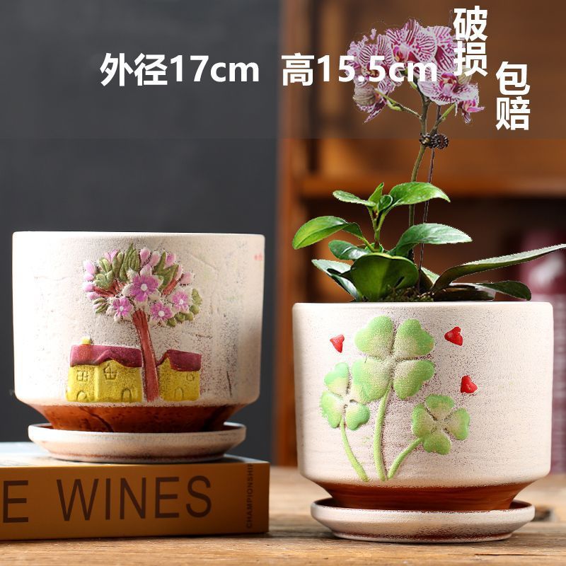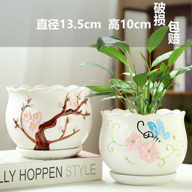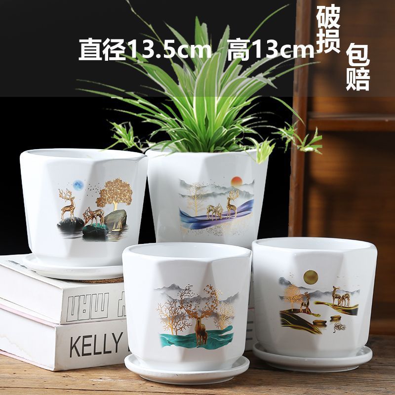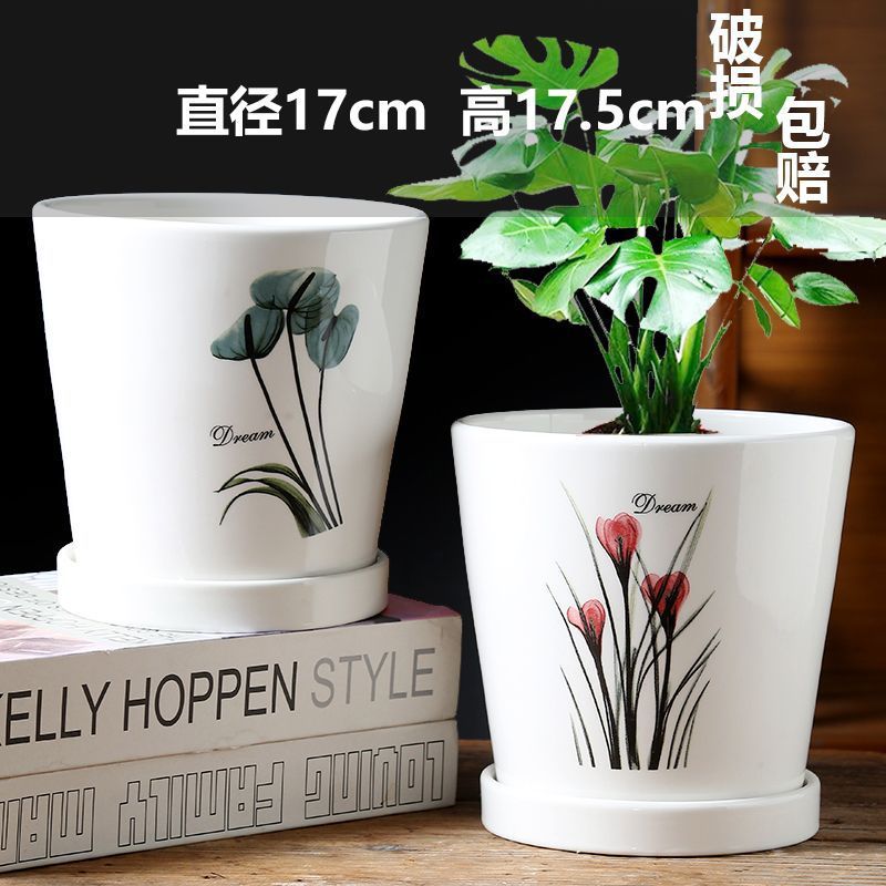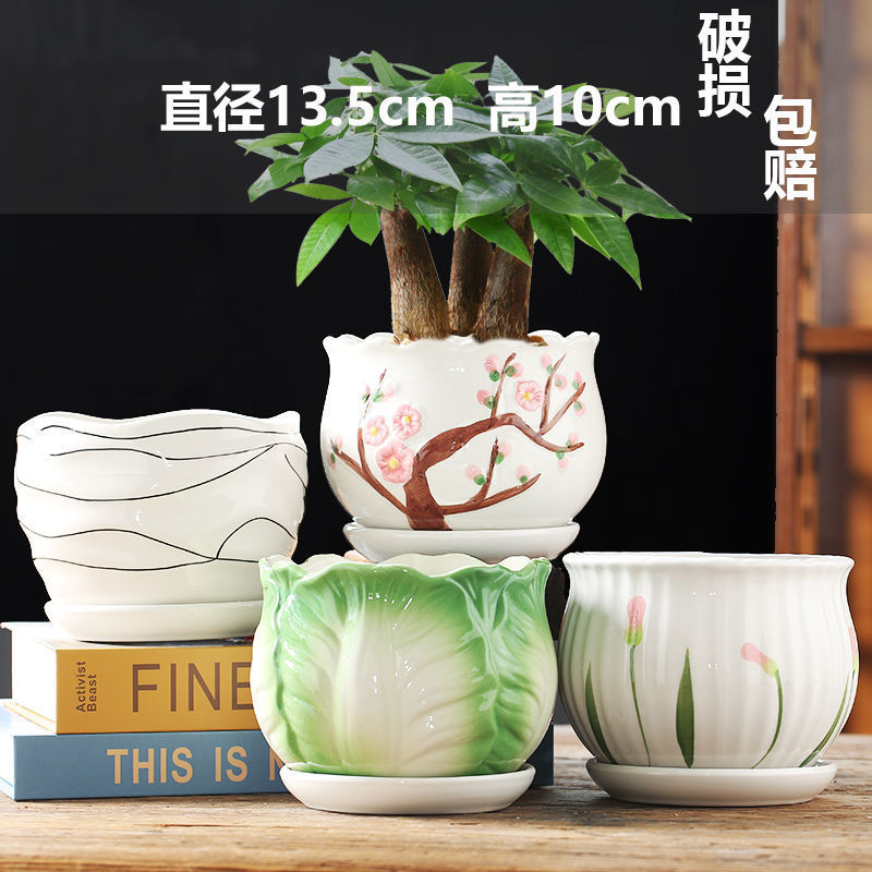 화분 도자기 재고정리 트레이 포함 대형 특대형 다육식물 개성 창의적 녹색 덩굴 식물 심플 도매 통기성 도자기