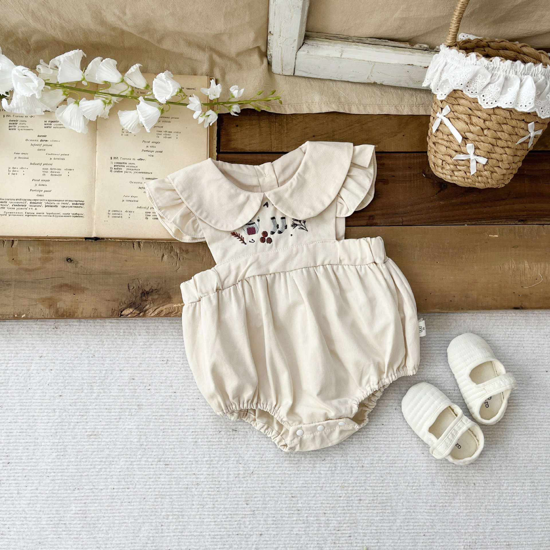 한국 스타일 소녀의 봄과 가을 세트 서양식 아기 면 비행 슬리브 모자 셔츠 등반 착용 반 높이 칼라베이스 셔츠 투피스 세트